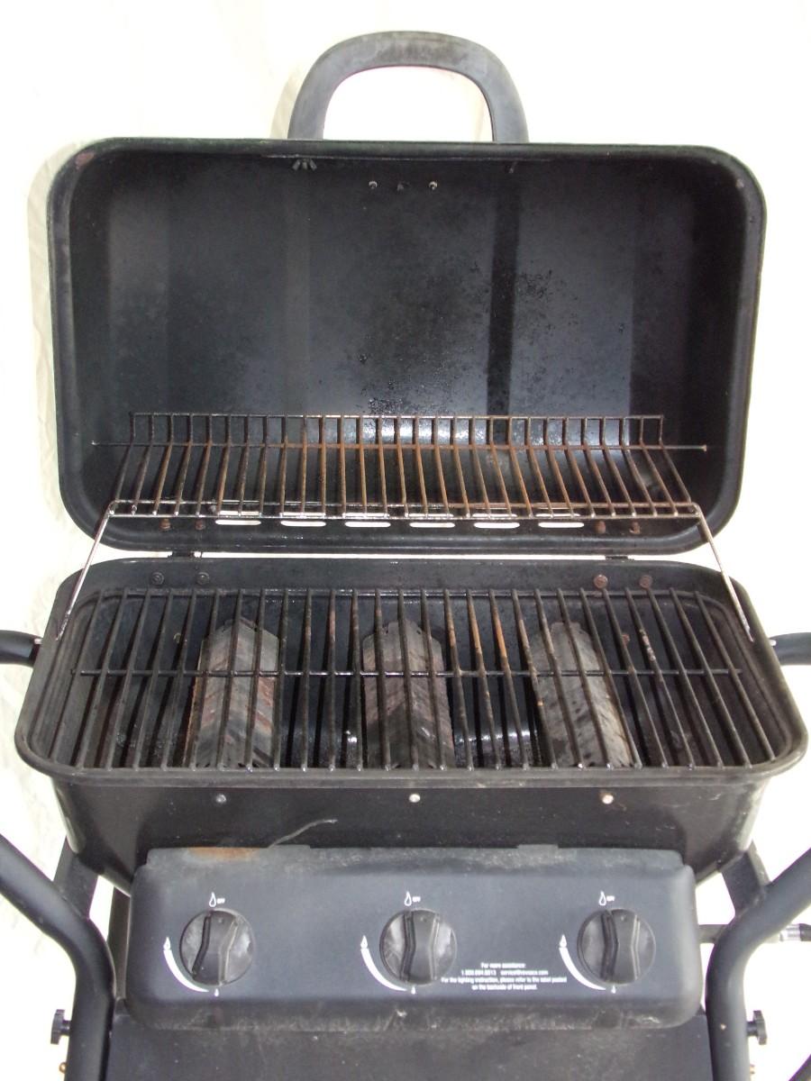 Small grill, ALL burners work good, two burners auto-light, one needs a match to light. NO gas bottle. (WYSIWYG)