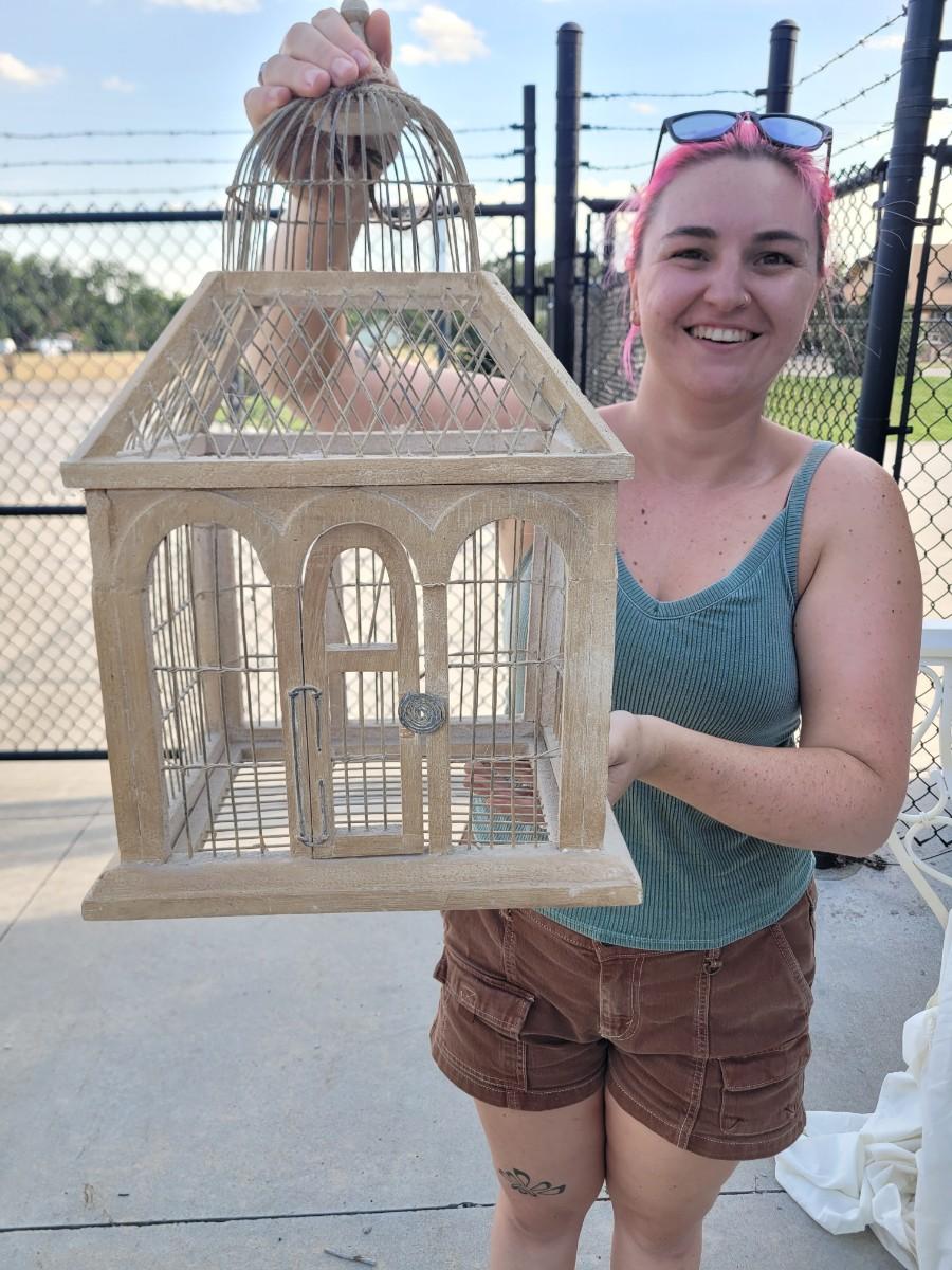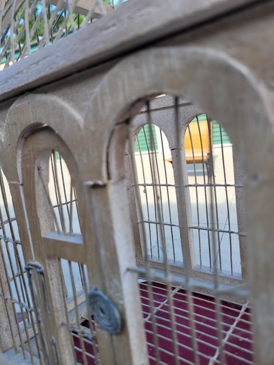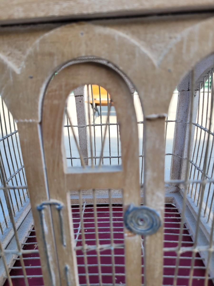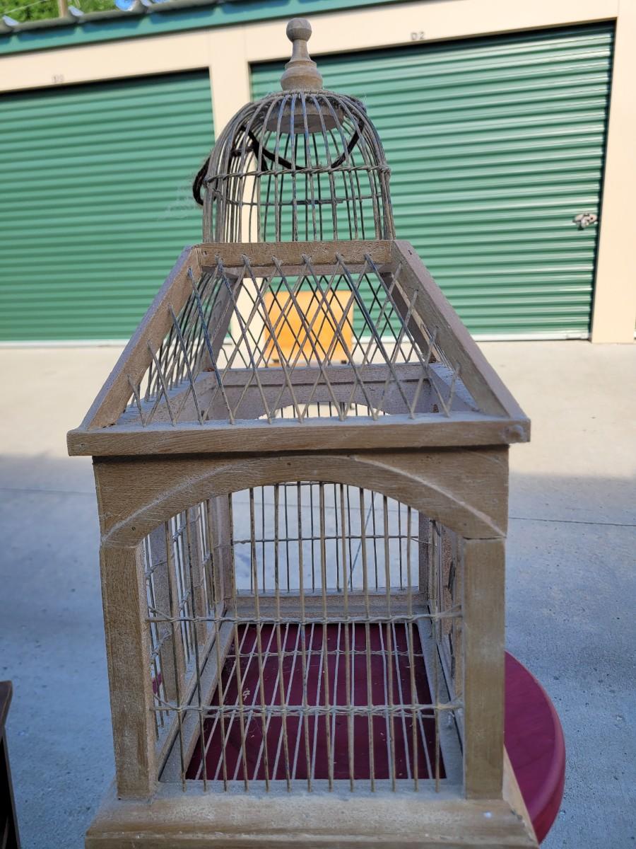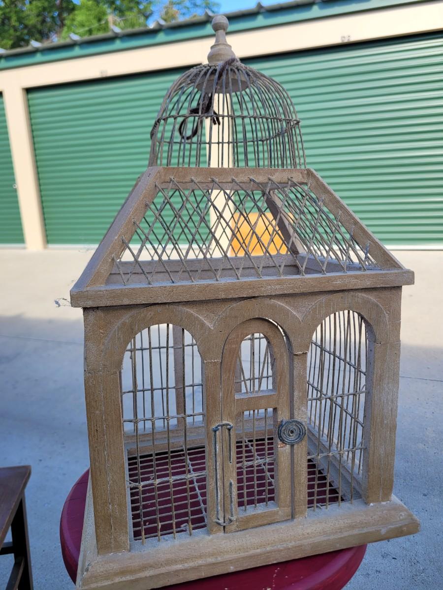Measures 12" w x 10" deep and 13" tall, super cool has small repairable crack beside door see photos. Probably more for decoration than for birds, but some birds are small.