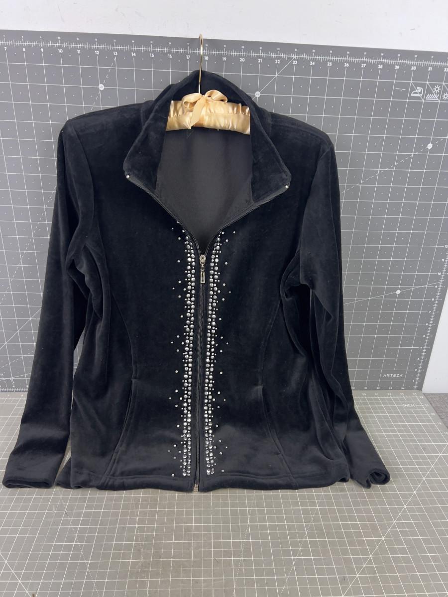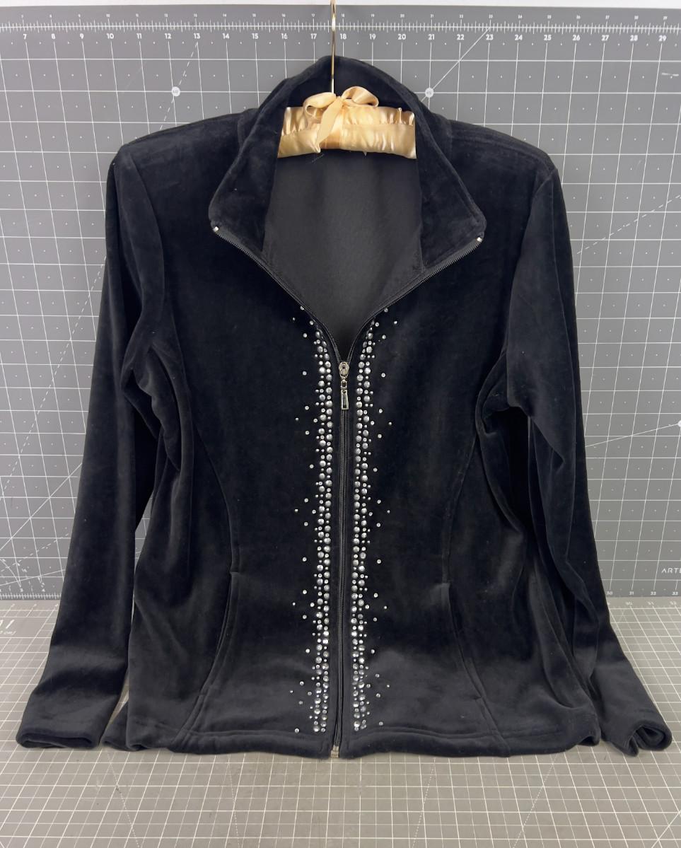 Small Black Bedazzled Cotton Women's Jacket Zipper Front