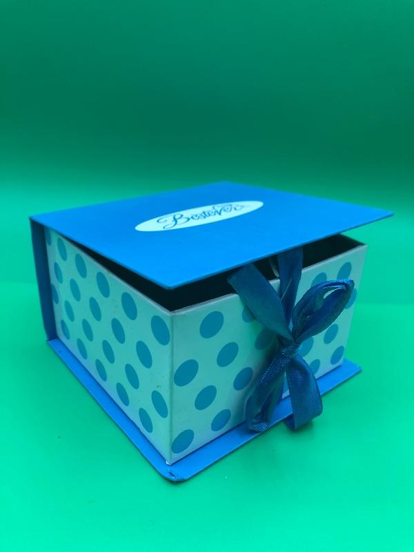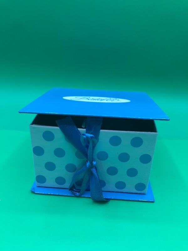 Small Black Puppy Plush from Bestever. Comes in a blue polka dot gift box. Was originally used as an advertisement promo for an Art Consultant.