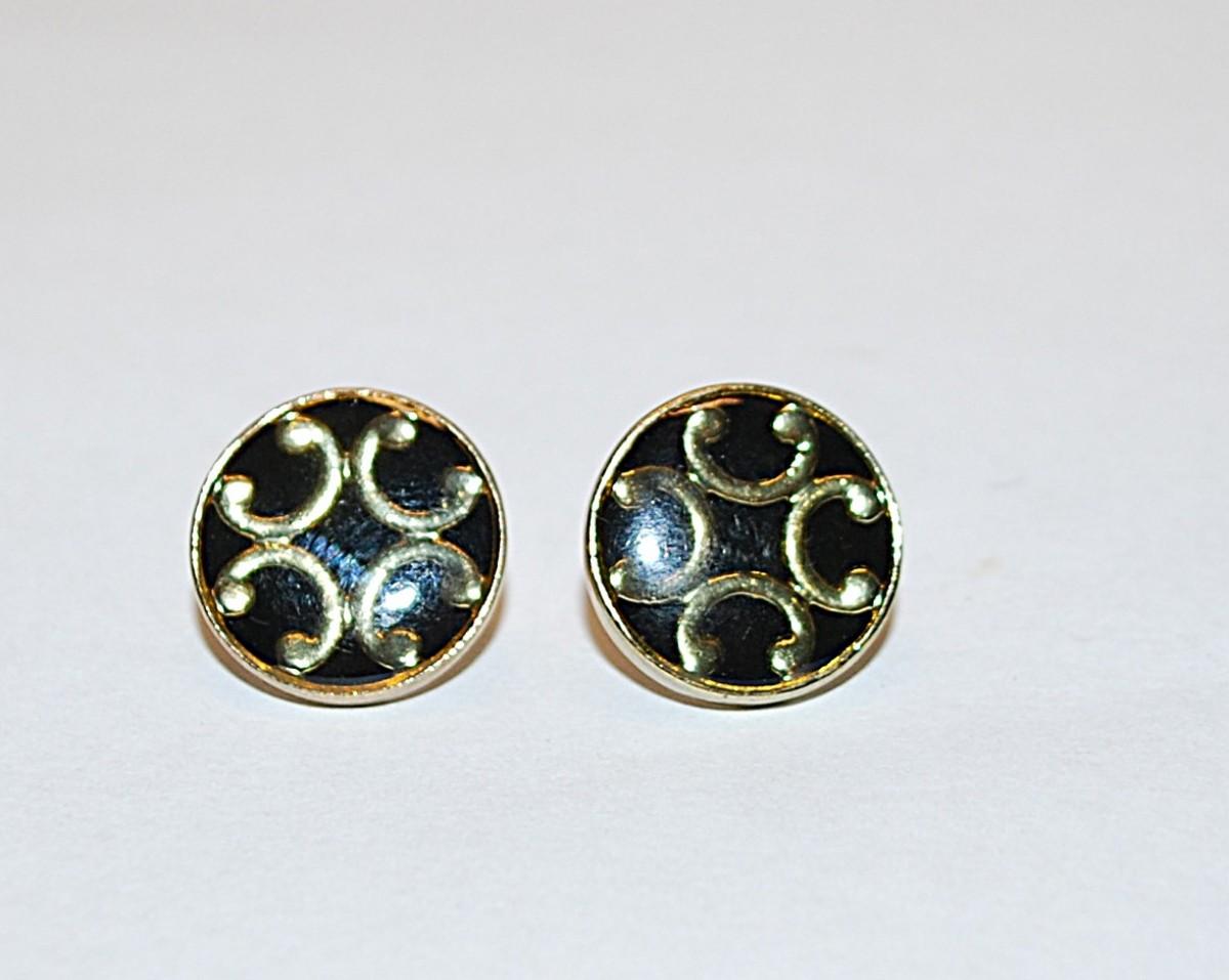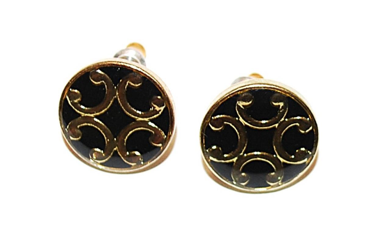 Small Black & Gold Colored Circle EARRING Set with Stud Post Clasp