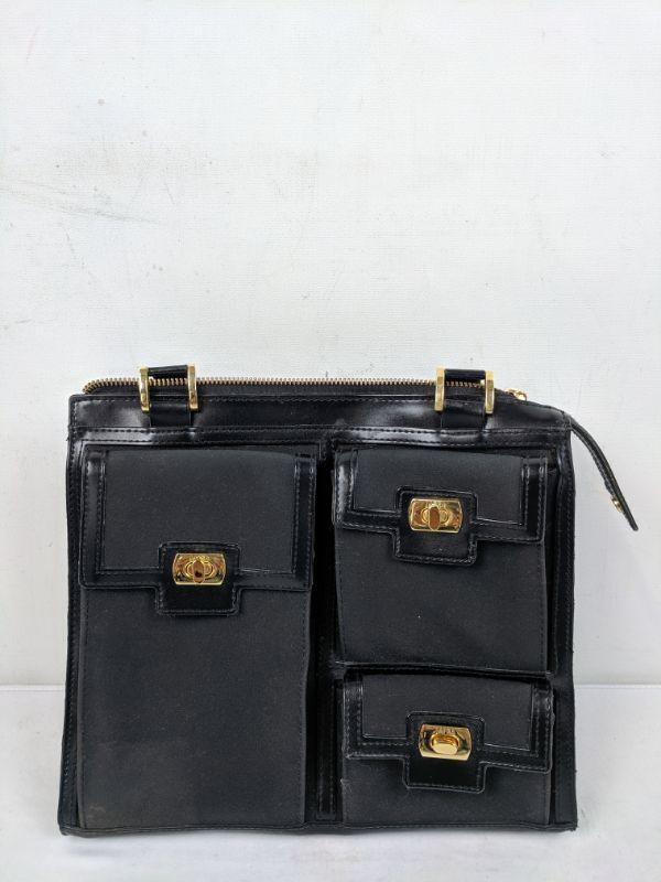 Small Black Nylon/Leather/Gold Tone Purse