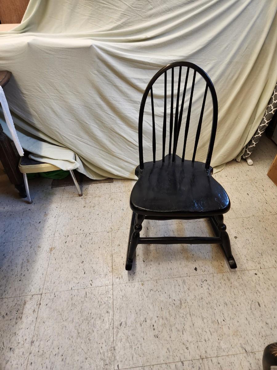 Small...child sized or sewing rocker...bow back rocking chair. Sweet little piece!