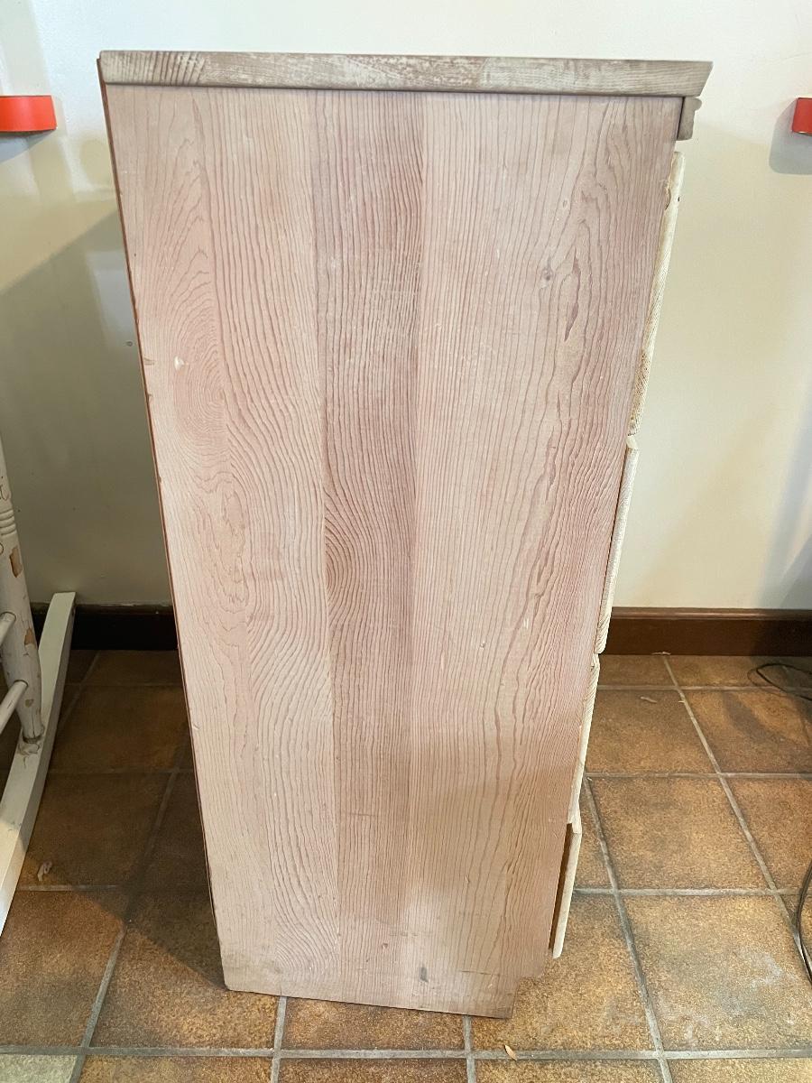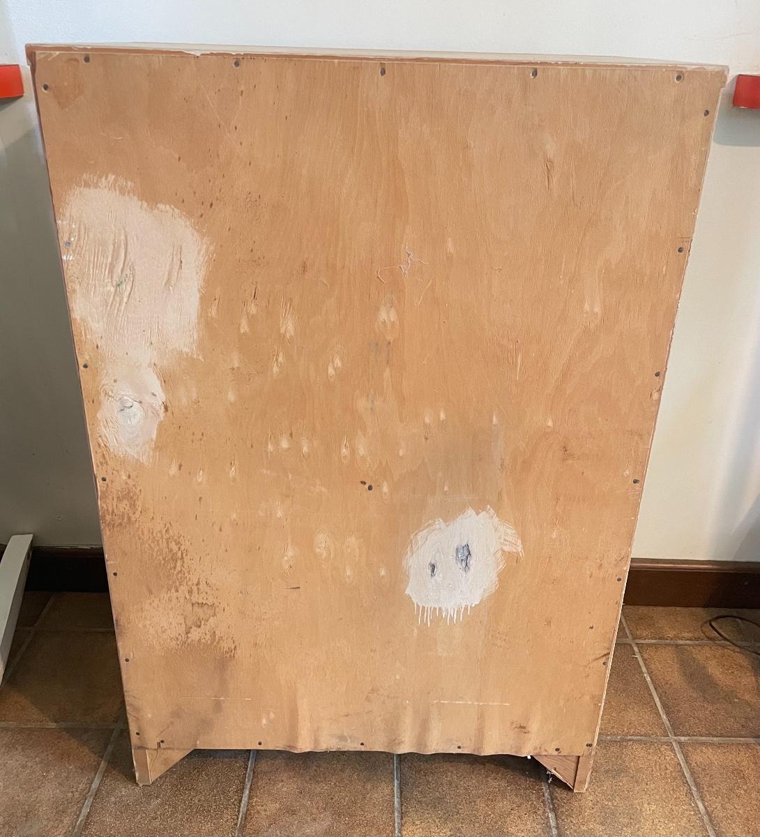 In good sturdy condition, back has some damage (please pictures). Measures approx 24.5” wide x 14.5” deep x 3’ tall.