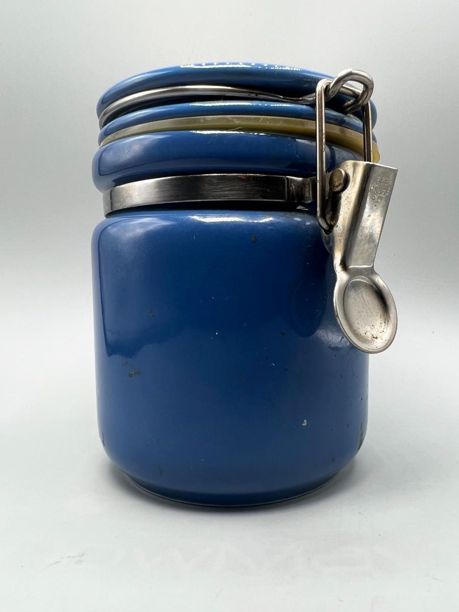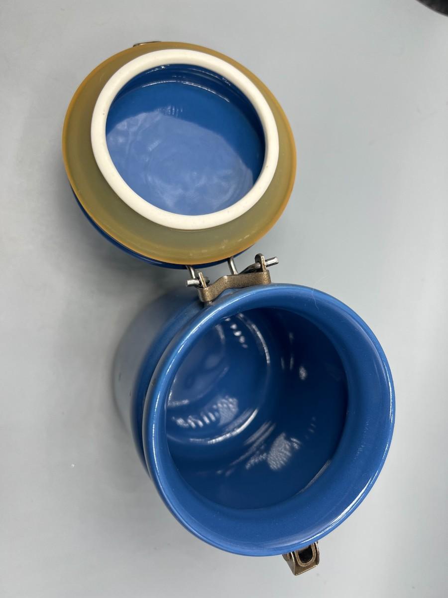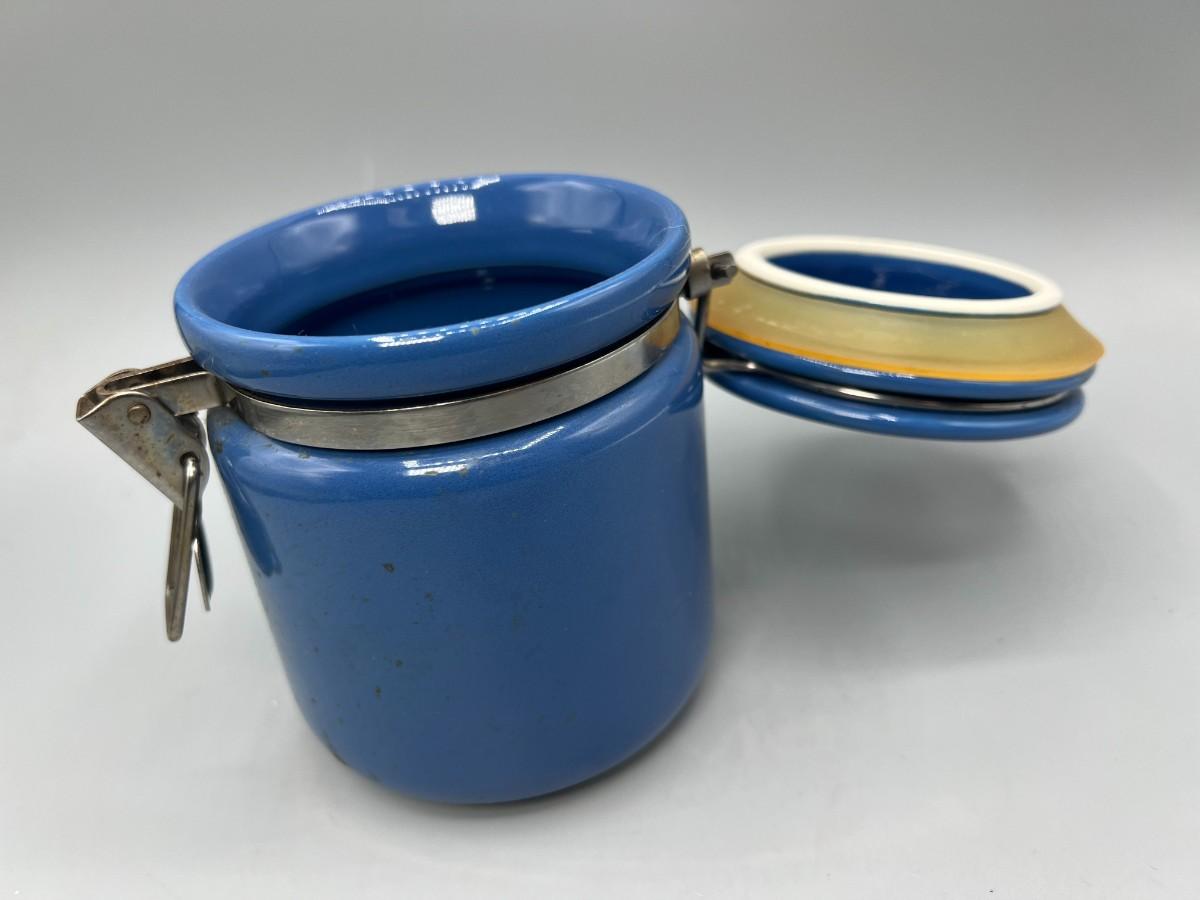 Small Blue Ceramic Canister Crock with Latching Sealing Lid