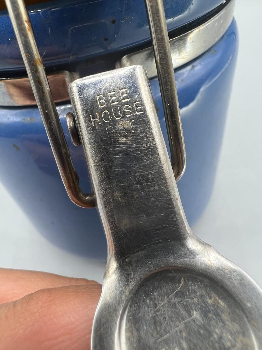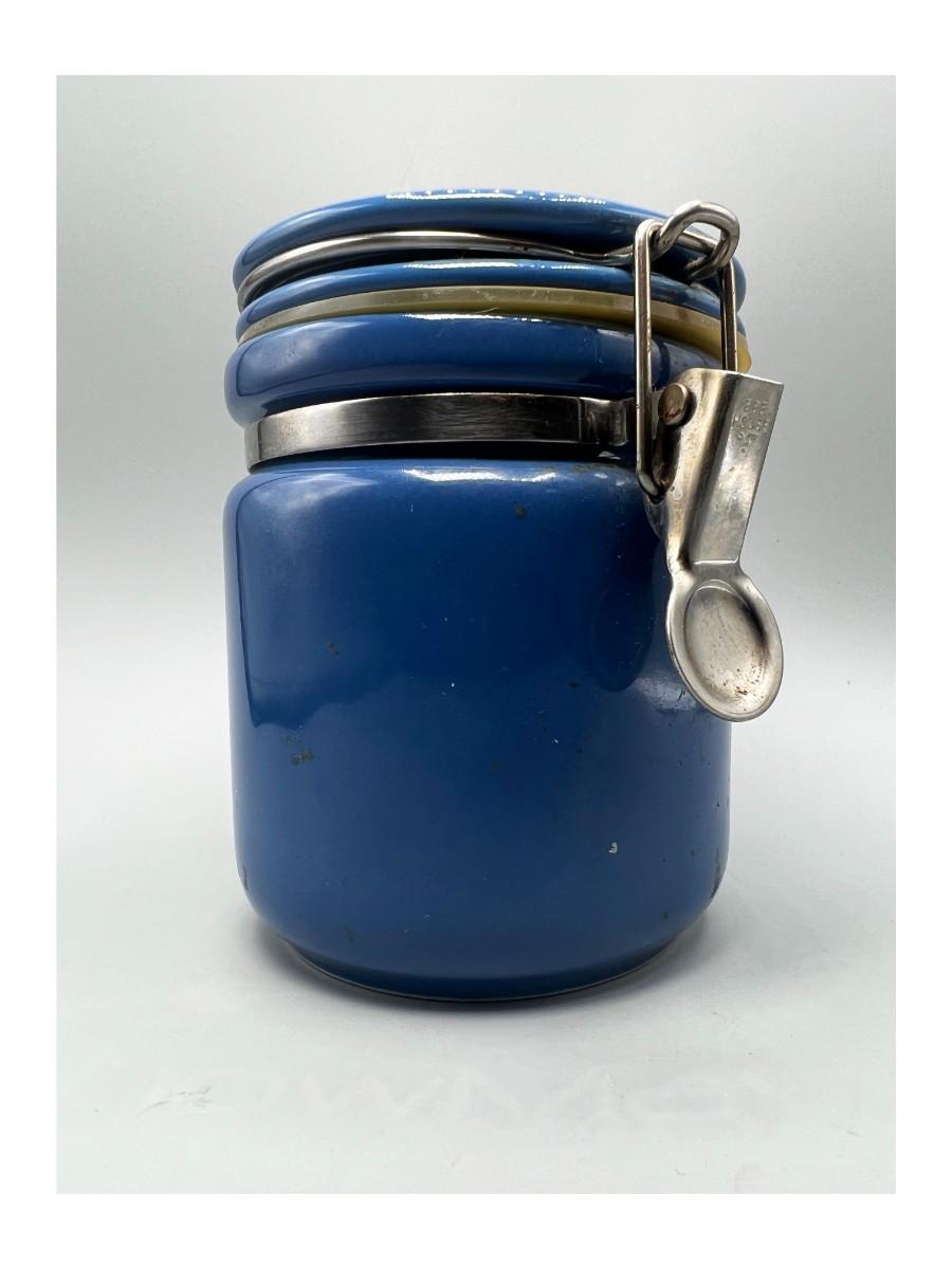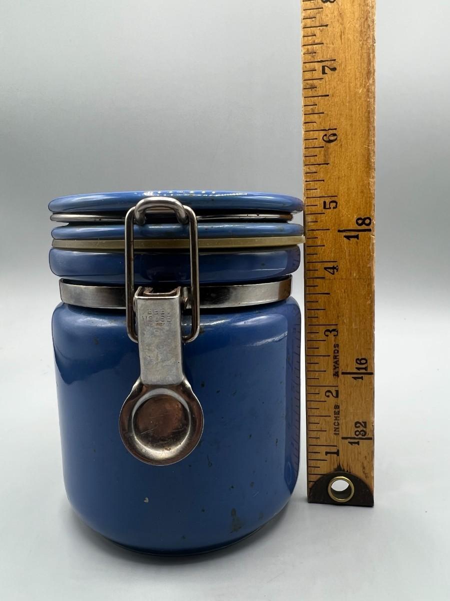 Small Blue Ceramic Canister Crock with Latching Sealing Lid