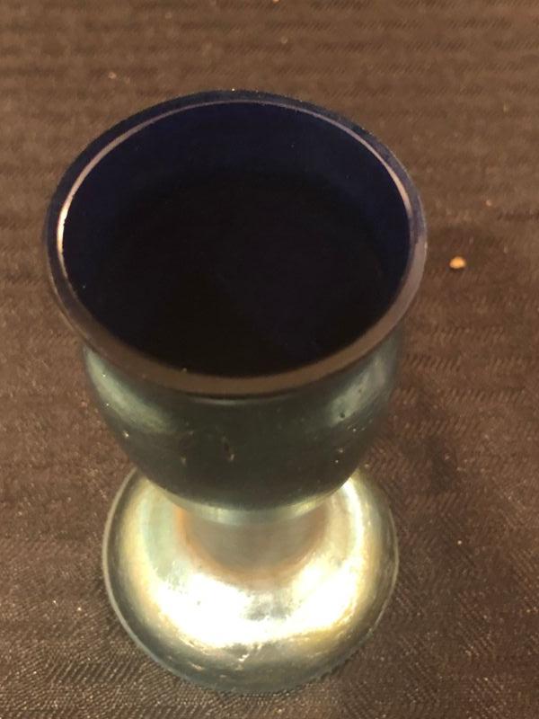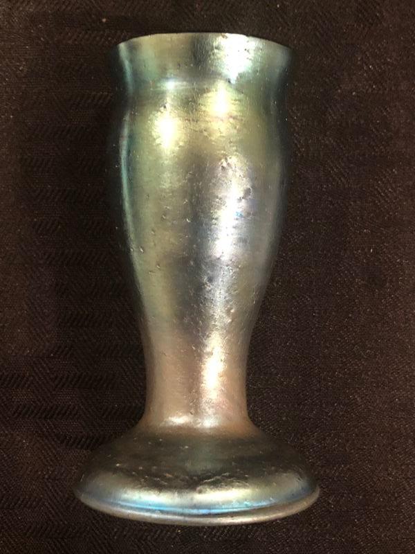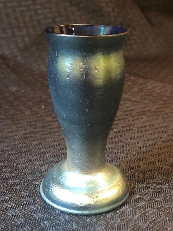 Small Unsigned Blue Iridescent Art Glass Vase.