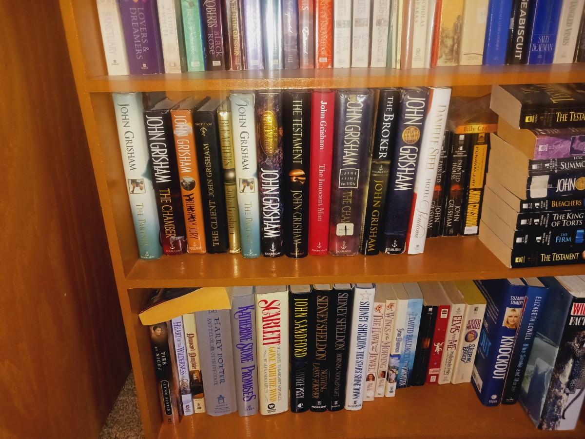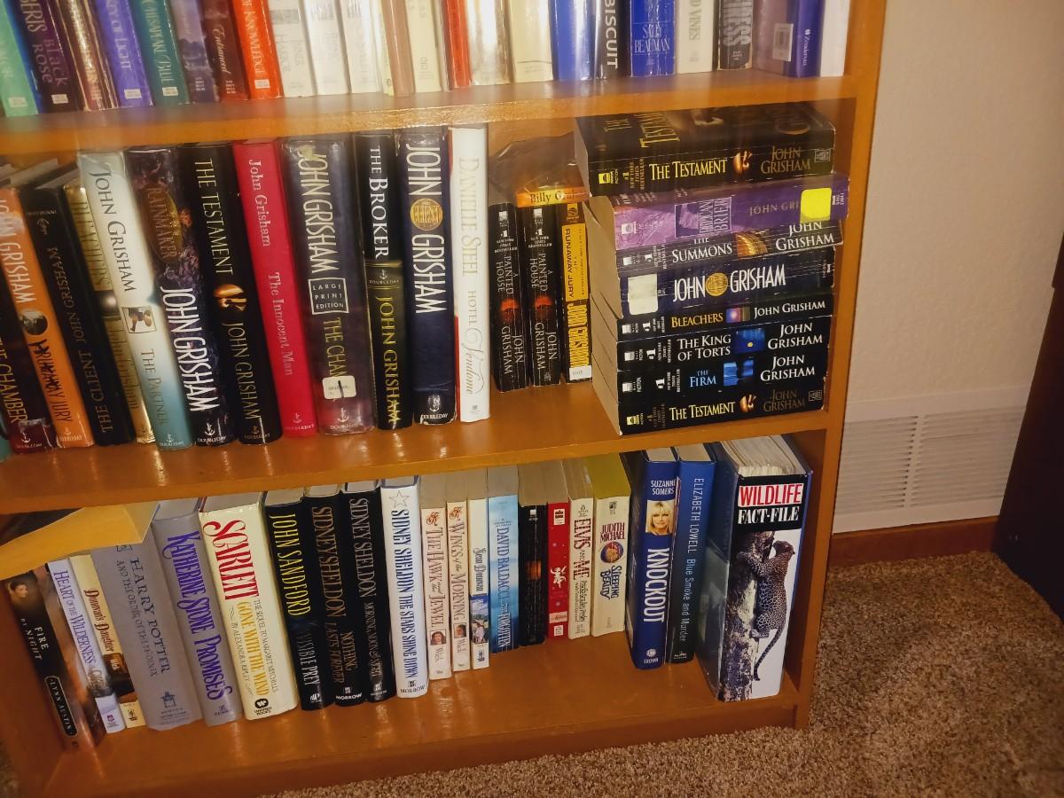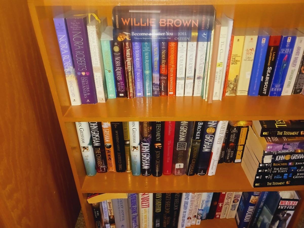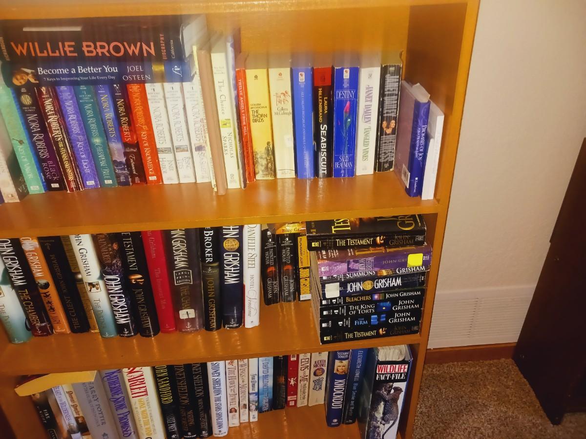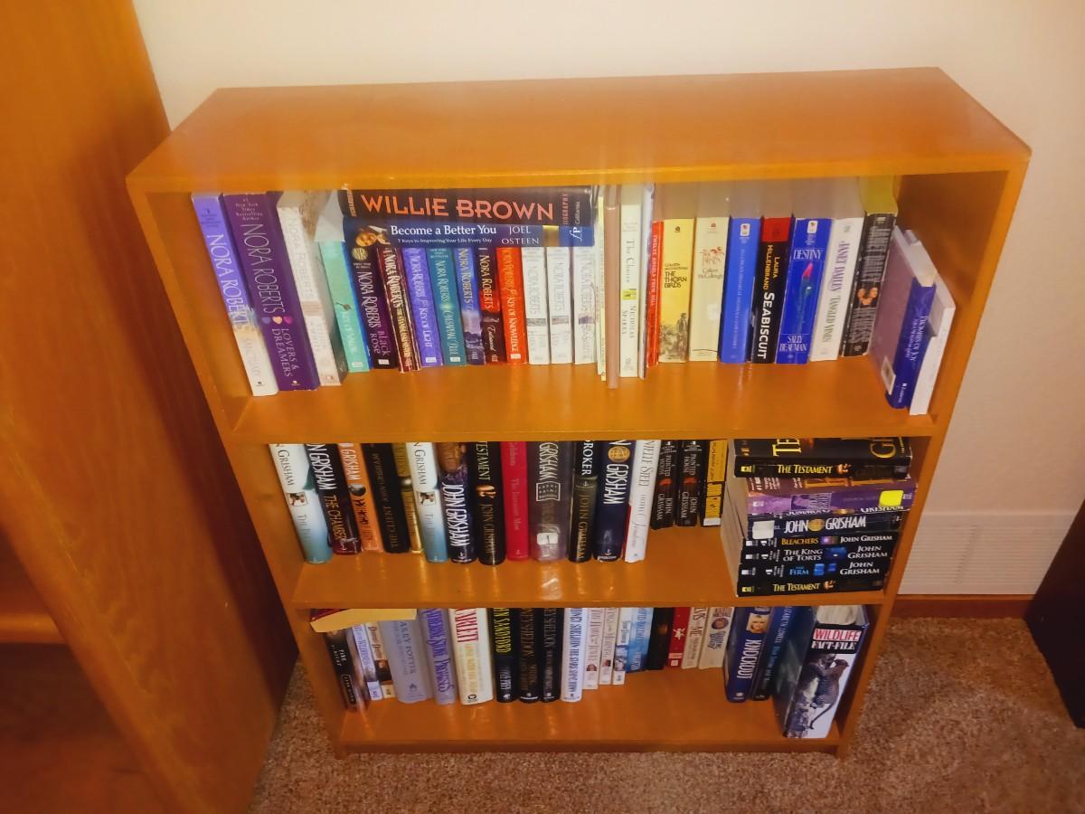 SMALL BOOK CASE FILLED WITH A VARIETY OF BOOKS