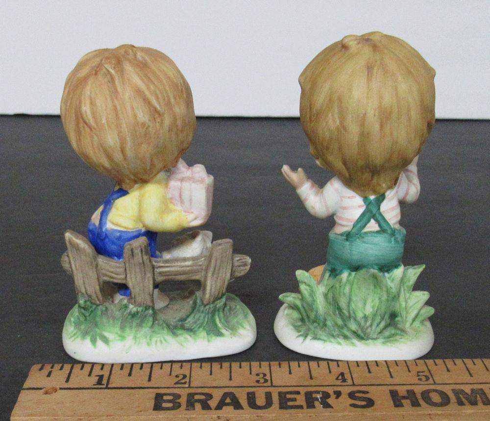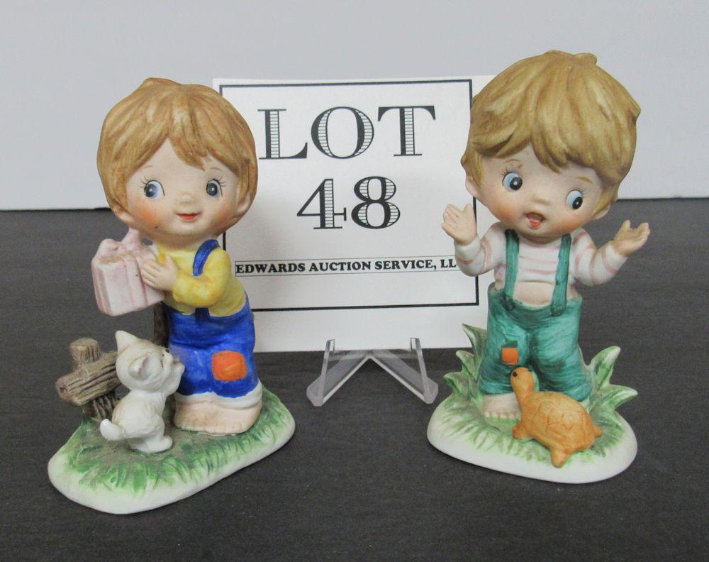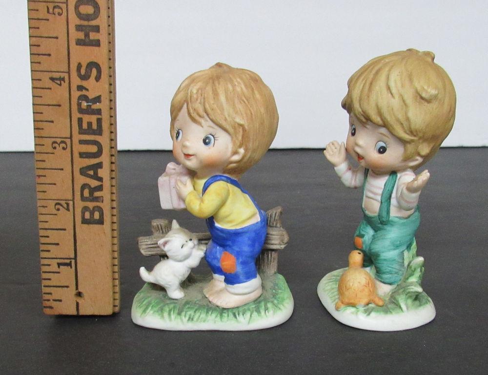 Small Boy Figurines, Bisque With Animals, Taiwan