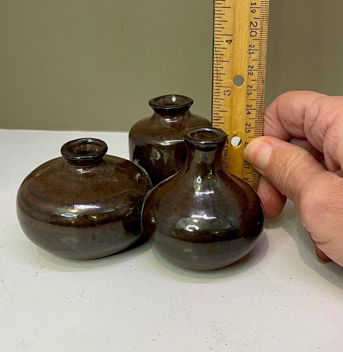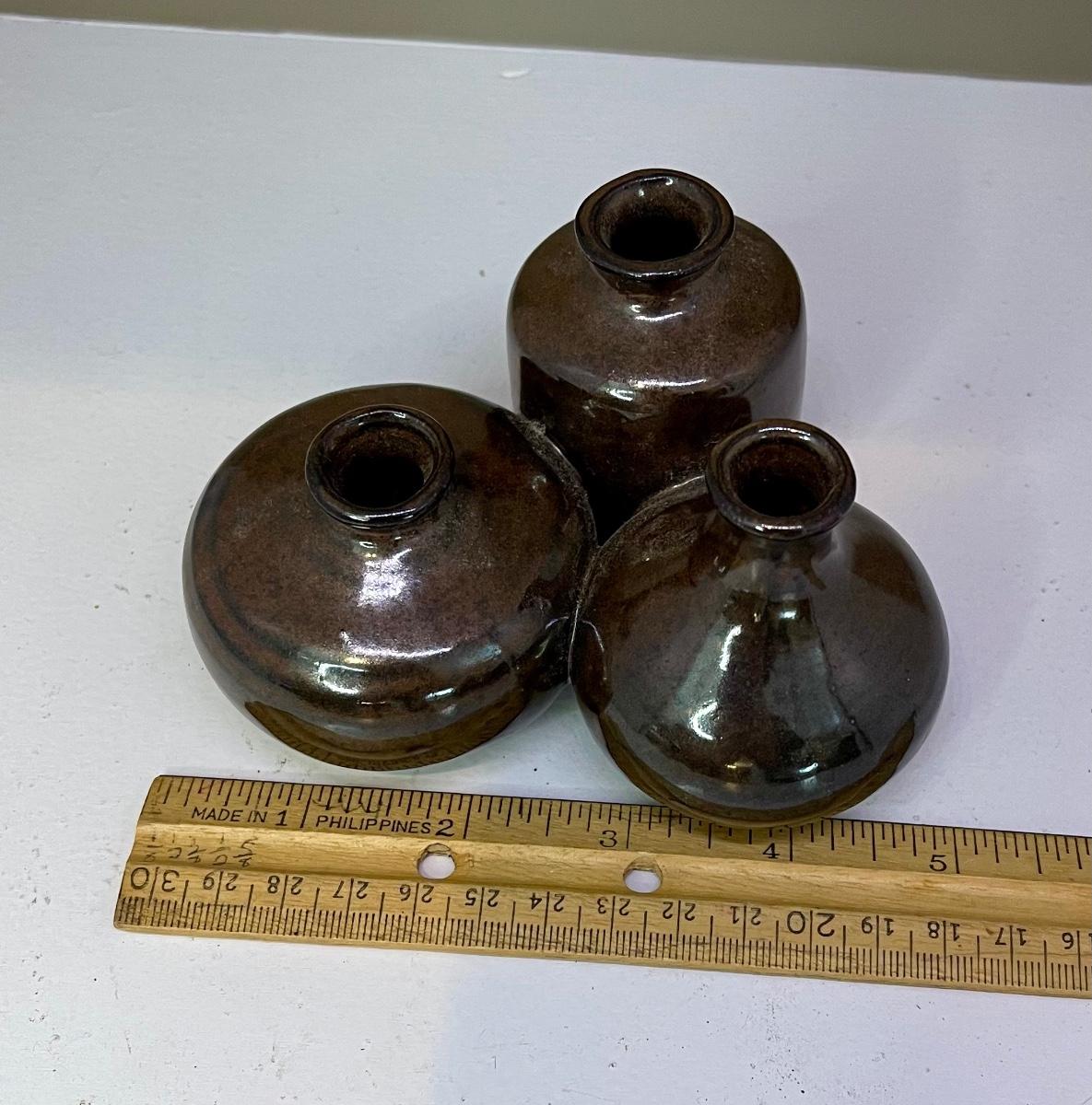 Small brown pottery vases