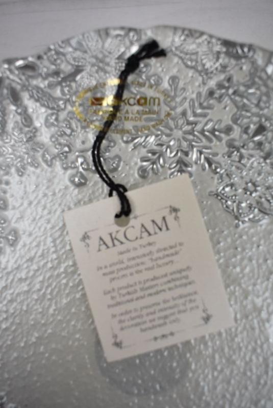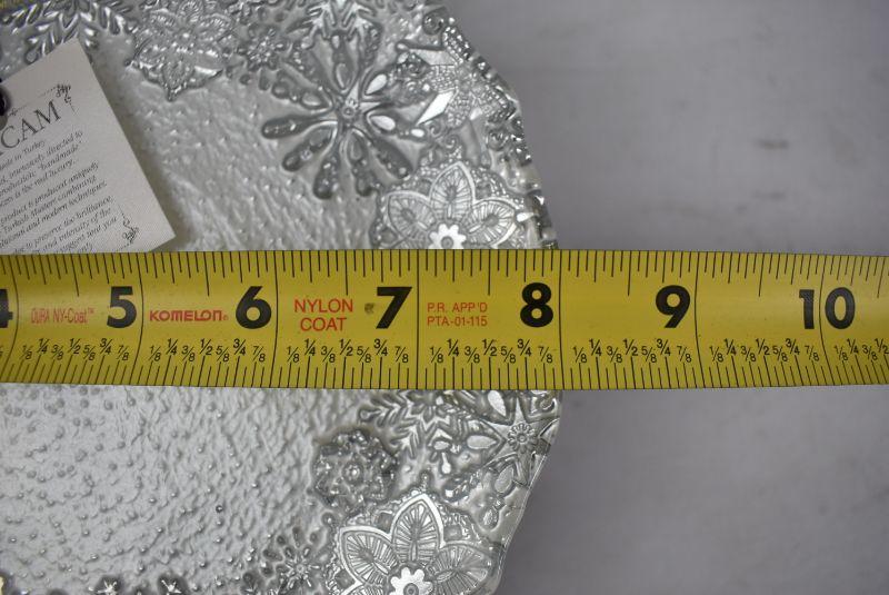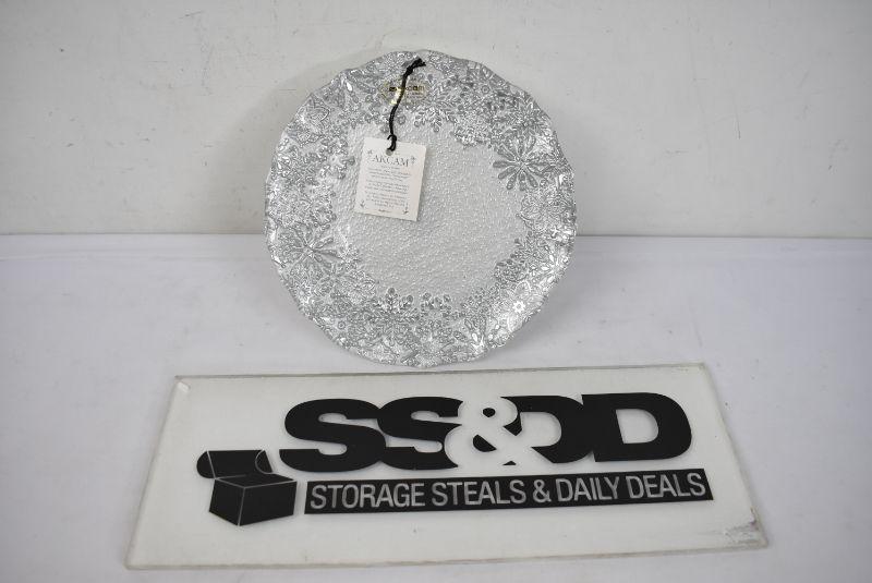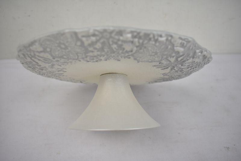 Small Cake Plate. Silver/Cream/Snowflakes - New
