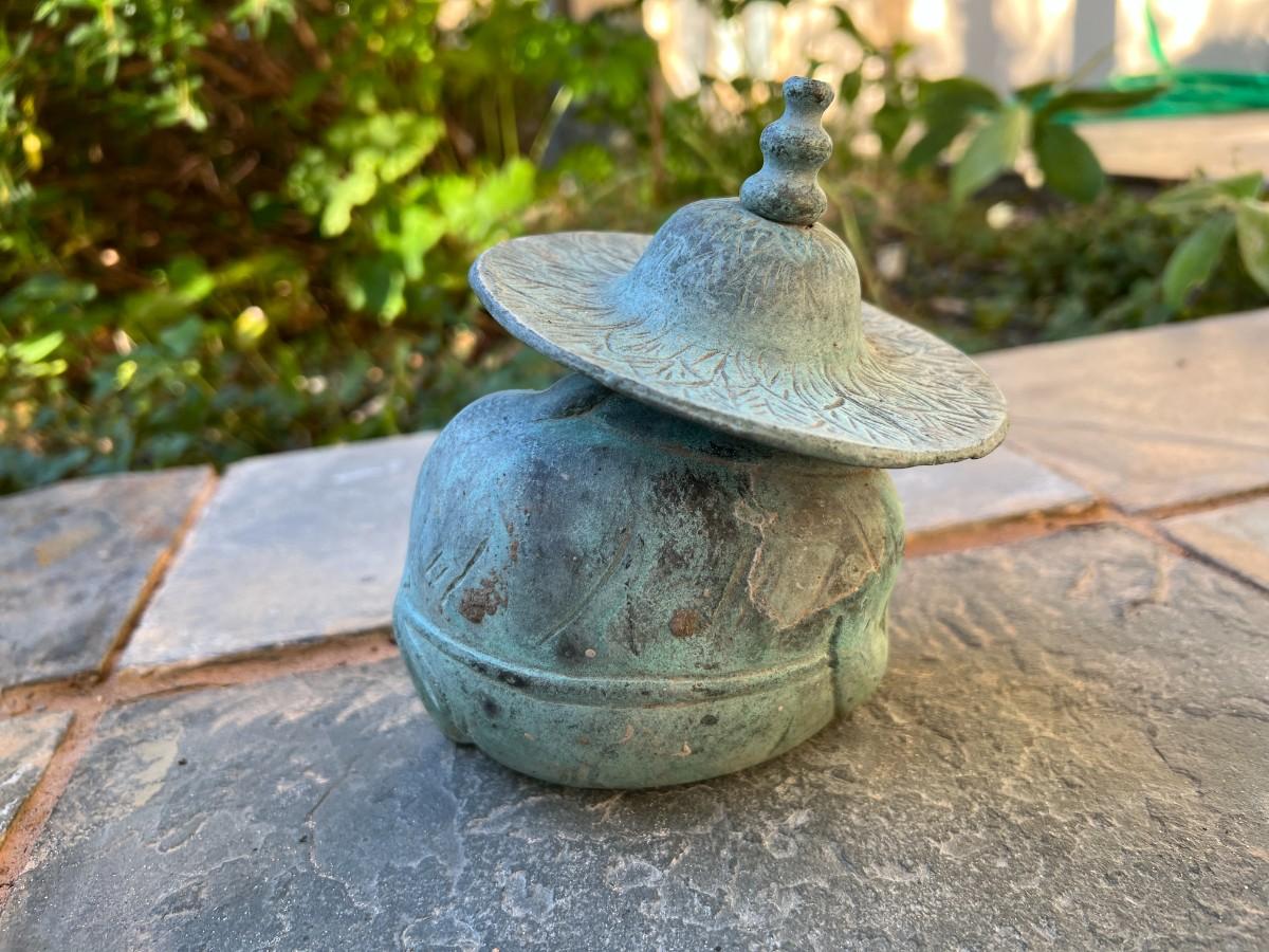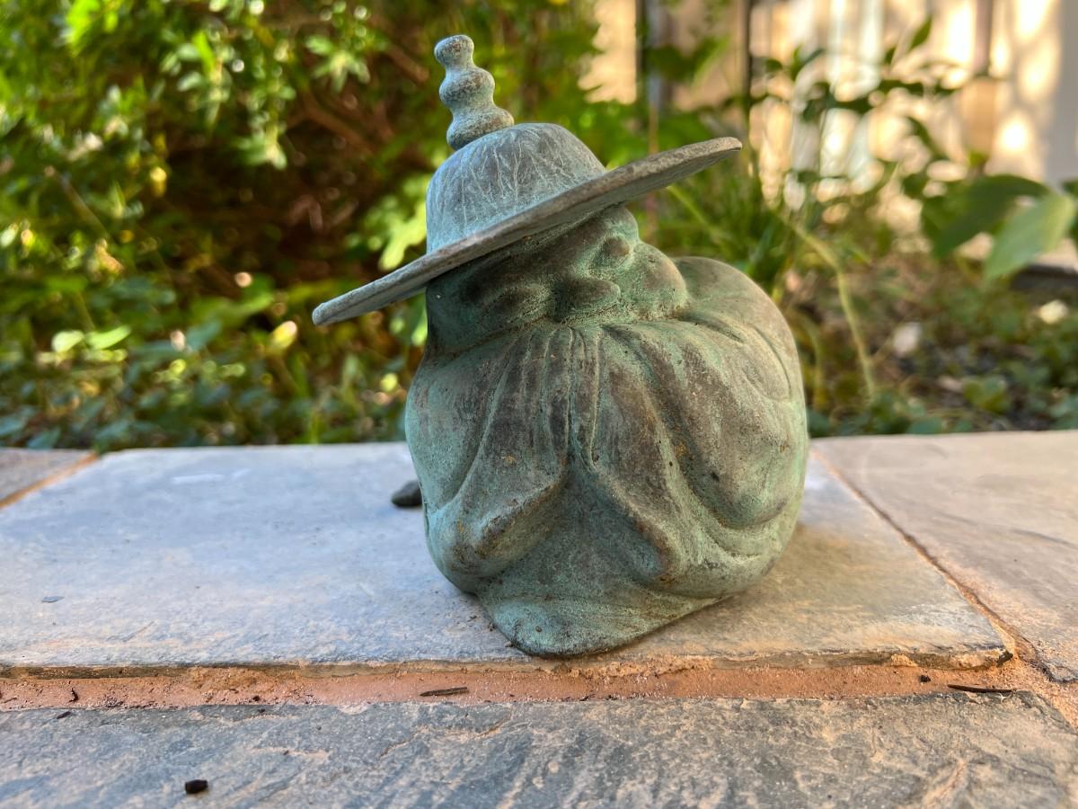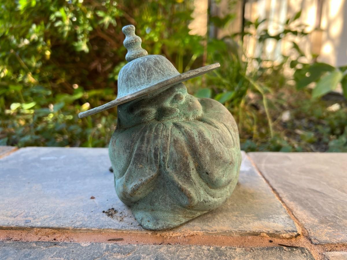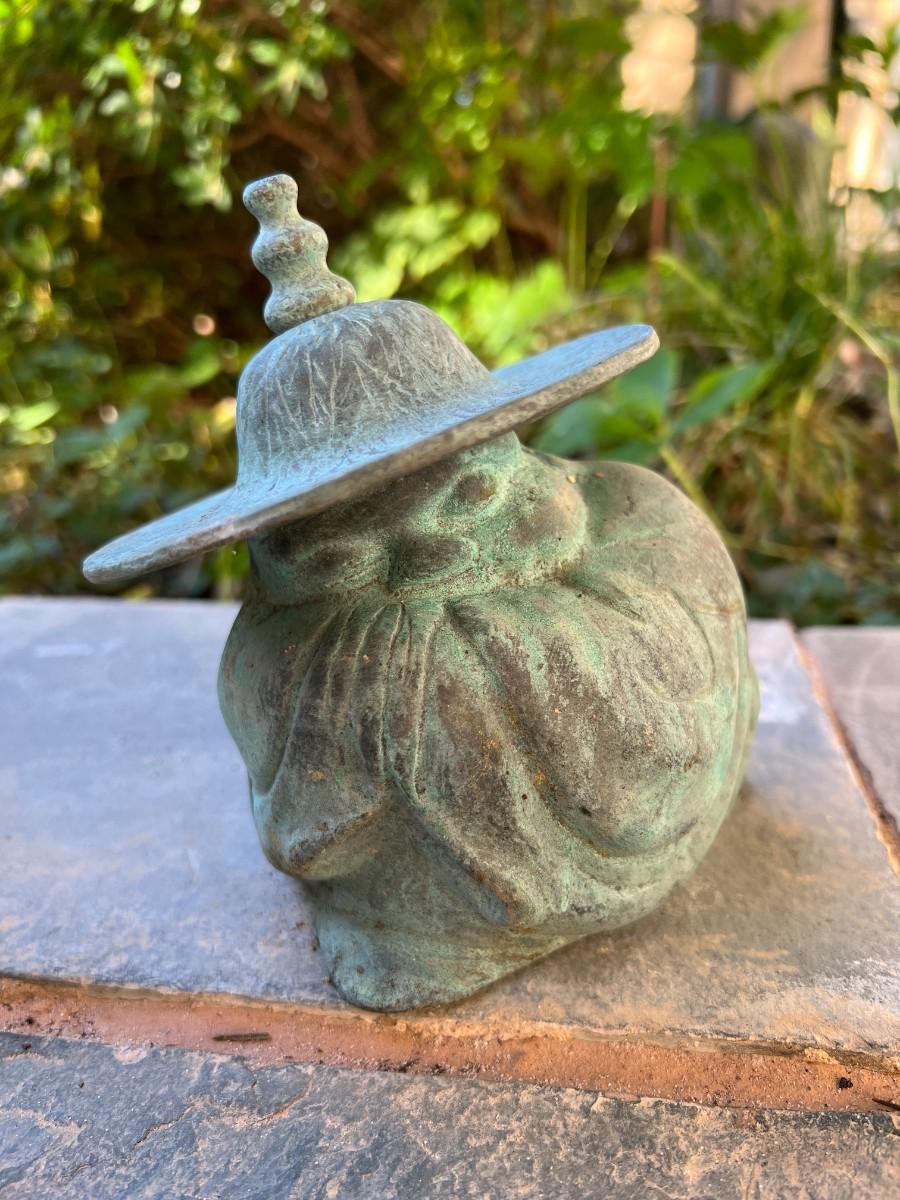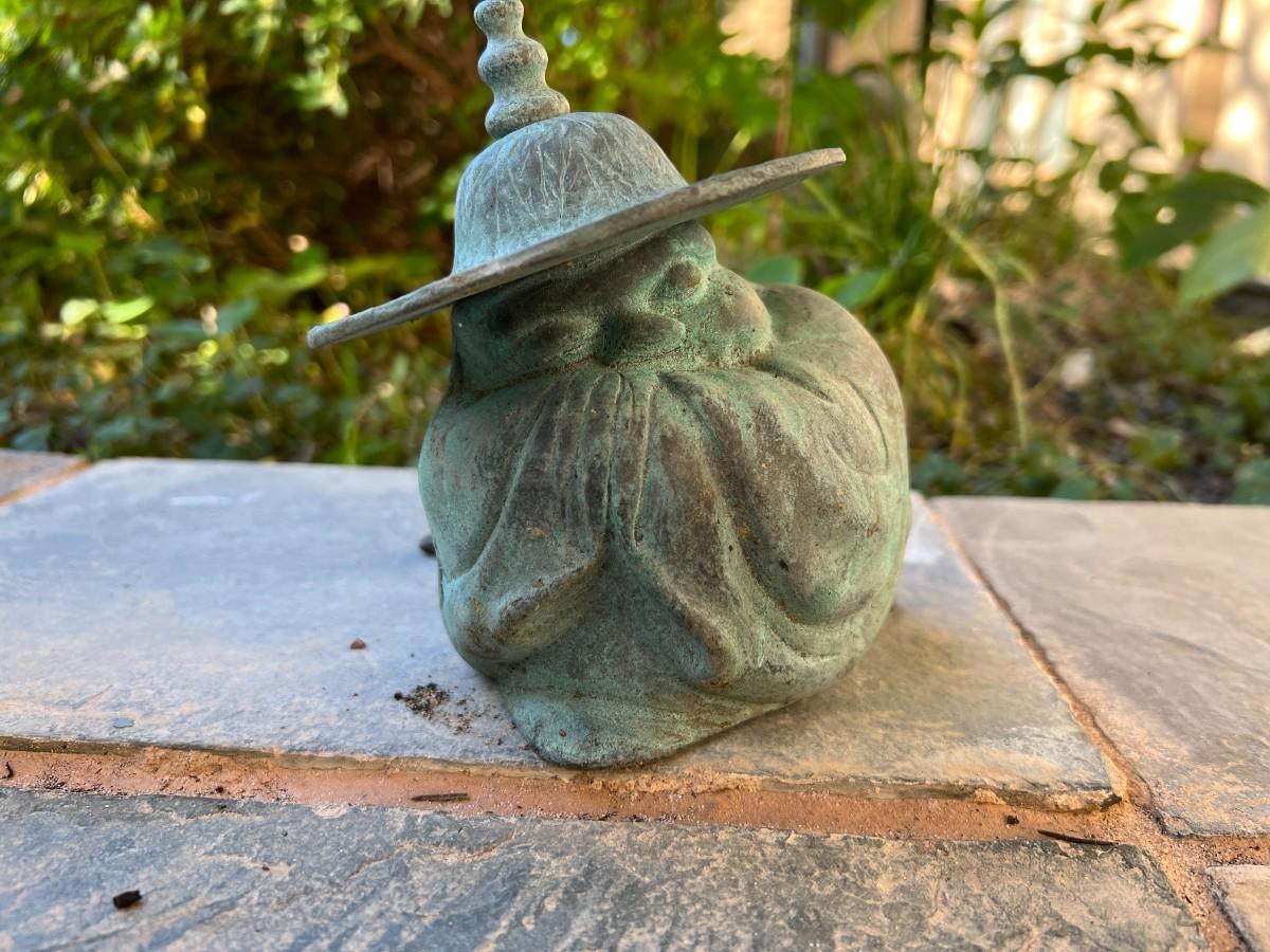 Small Cast Iron Asian Outdoor Garden Gnome Wiseman Statue