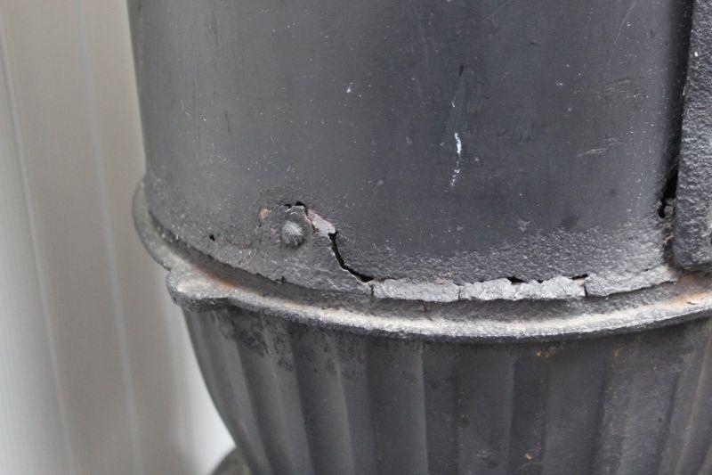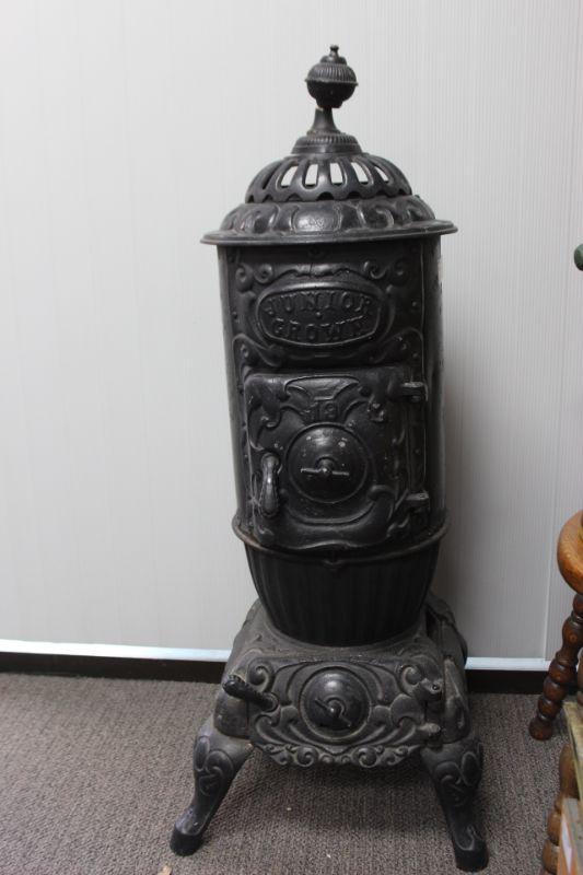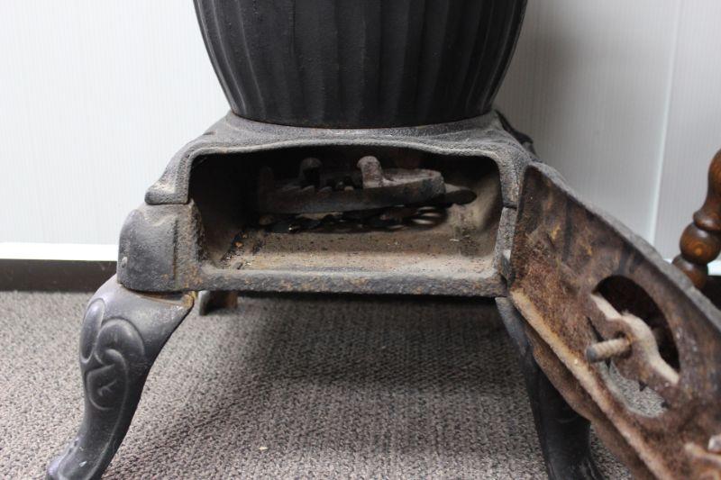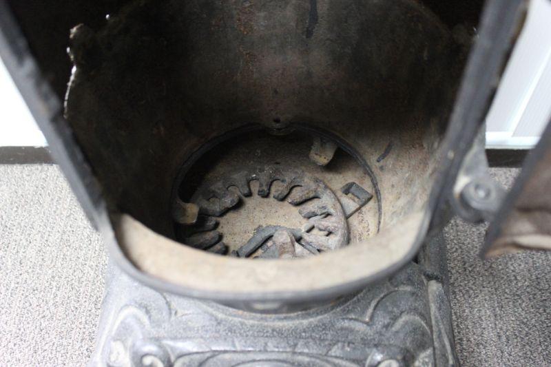 Cast Iron Stove. It has been used but is in good condition. There is signs of heat damage and age. Missing the smoke stack. Heavy. Local Pick Up Only.