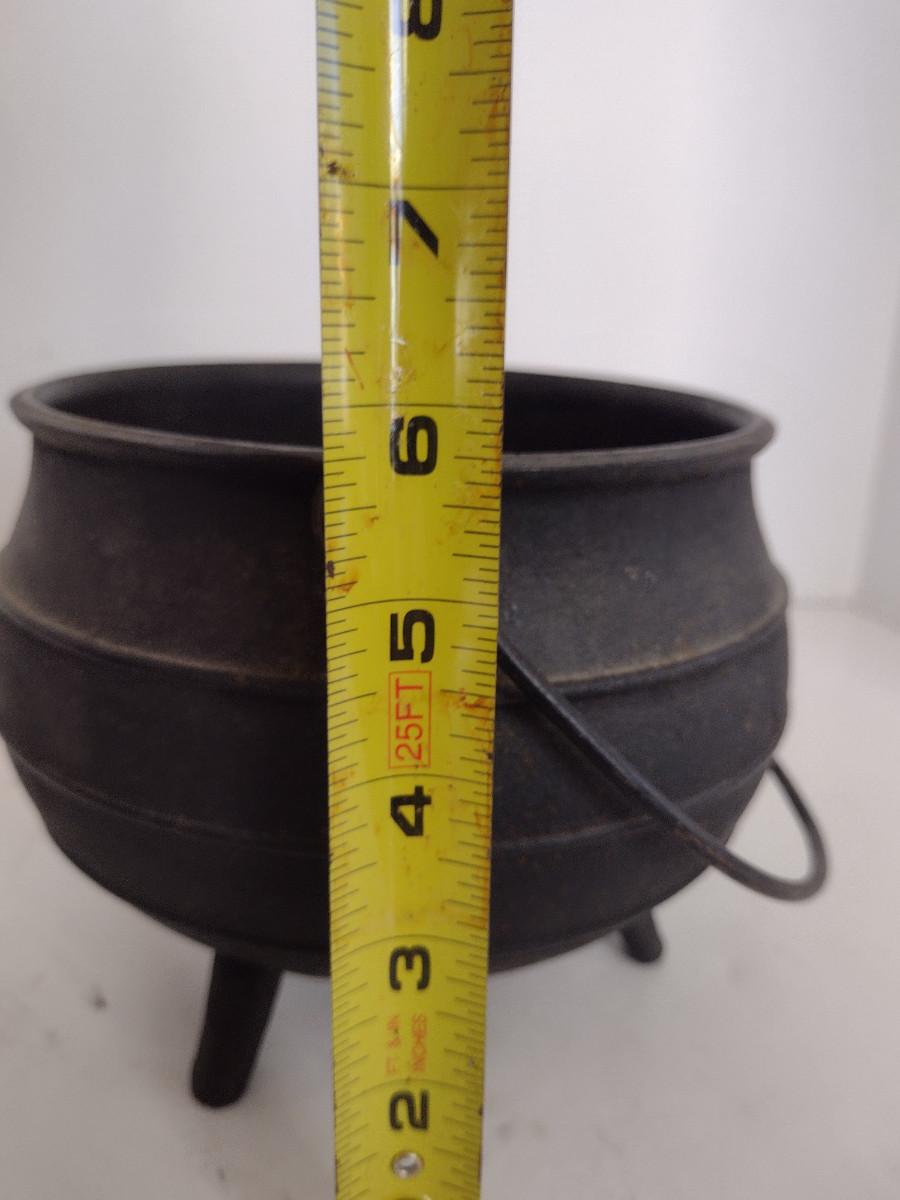 Small Cast Iron Tri-Footed Cauldron with Handle- Approx 6 1/2" in Diameter