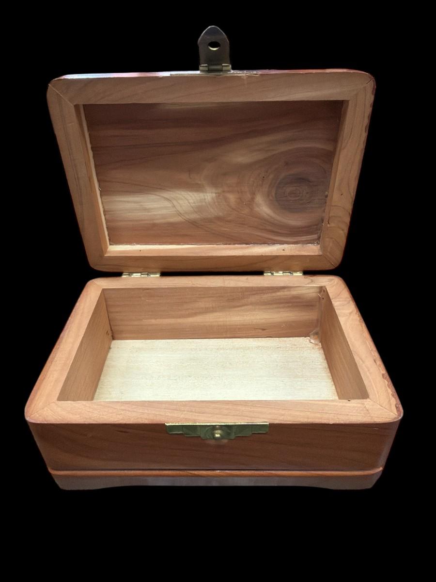 Small Cedar Wooden Jewelry Box Marked Cherokee Indian Reservation on lid