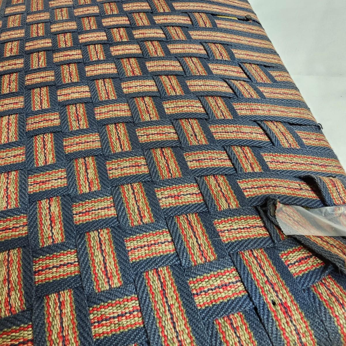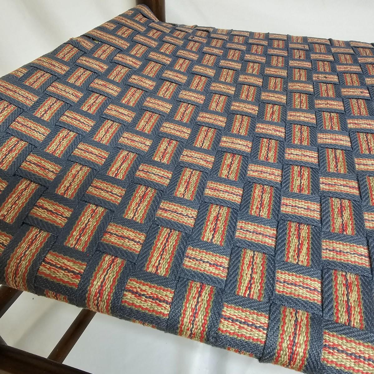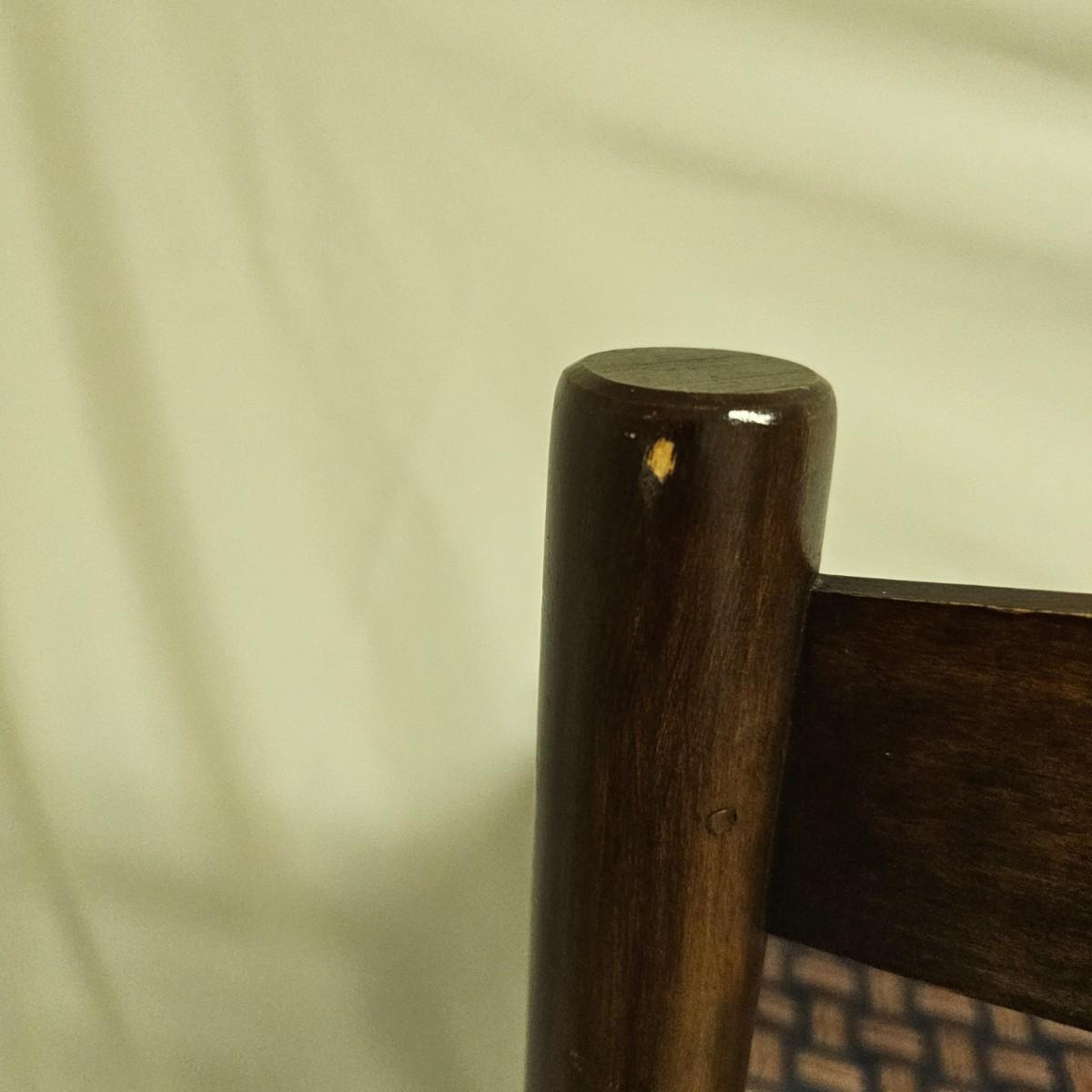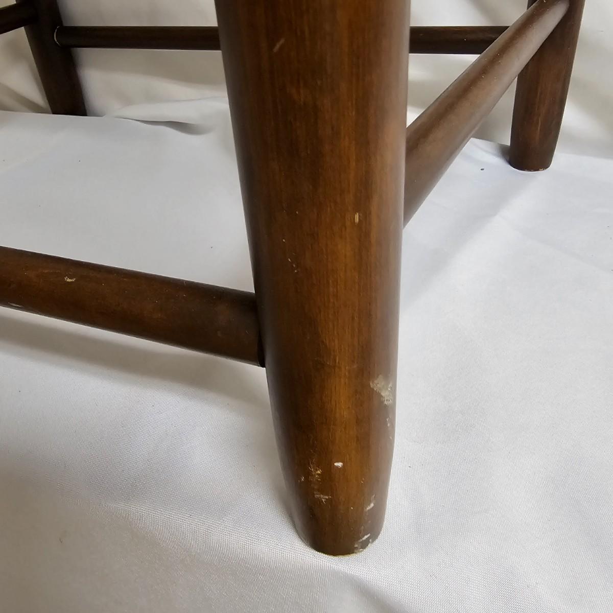 A low, ladder back solid wood chair with a webbed, criss-cross seat. Chair measures 18.5" x 15" x 27"H with a seat height of 17.5”. Dark finish, has small nicks and rubs on back and legs. See photos for details. Local pickup only.