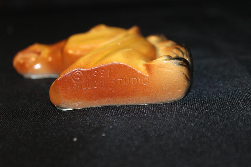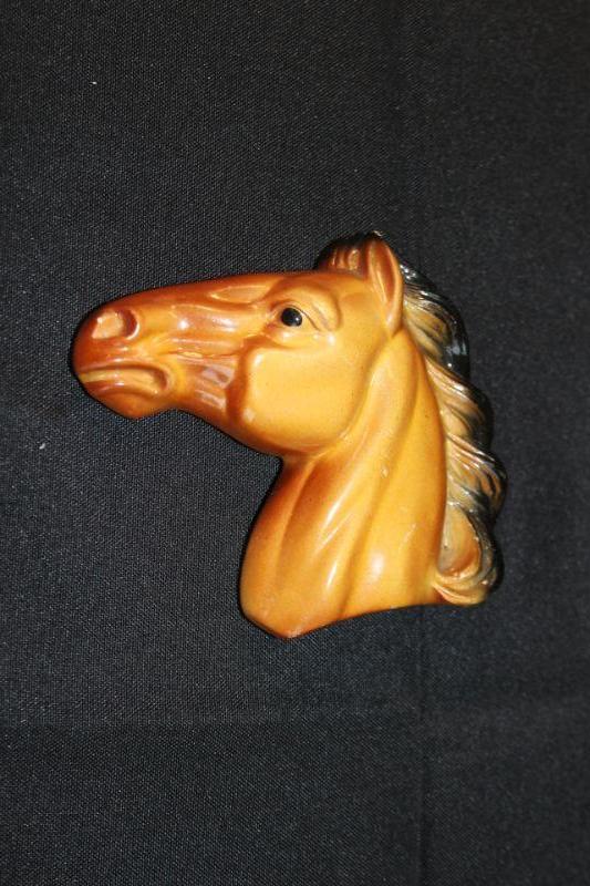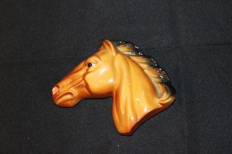 Vintage chalkware horse head. In good condition, does have a couple small chips in the paint. Signed Miller Studio 1951.
