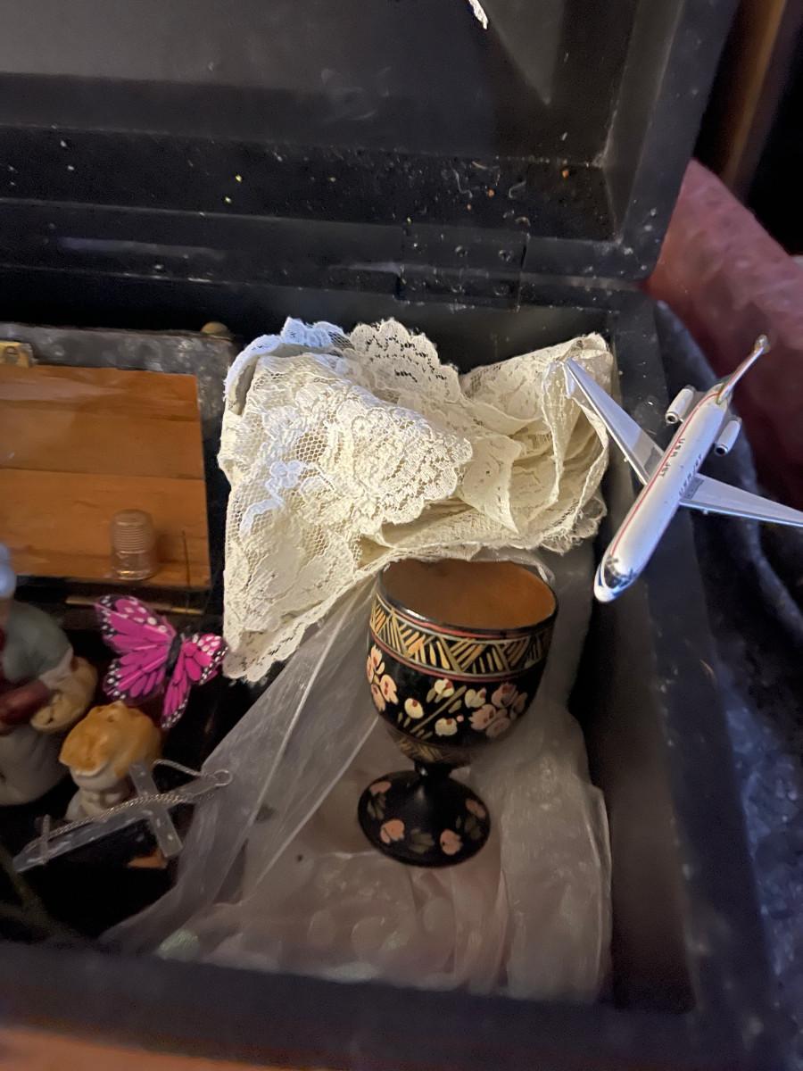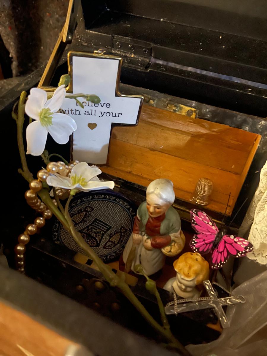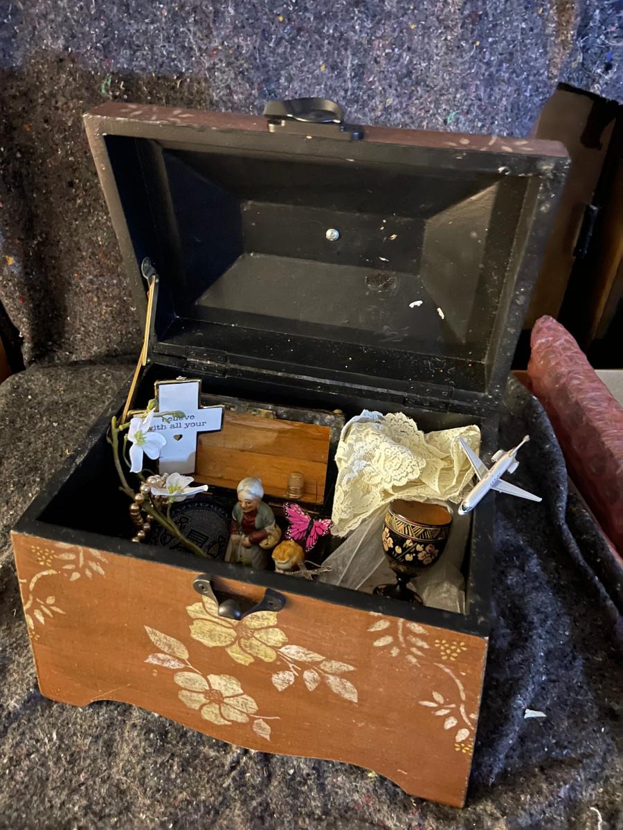 Small decorated Nostalgic Chest with mementos inside.