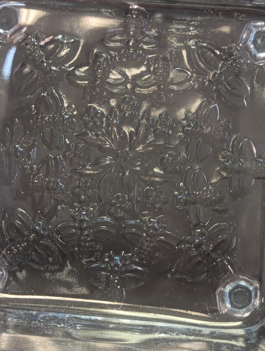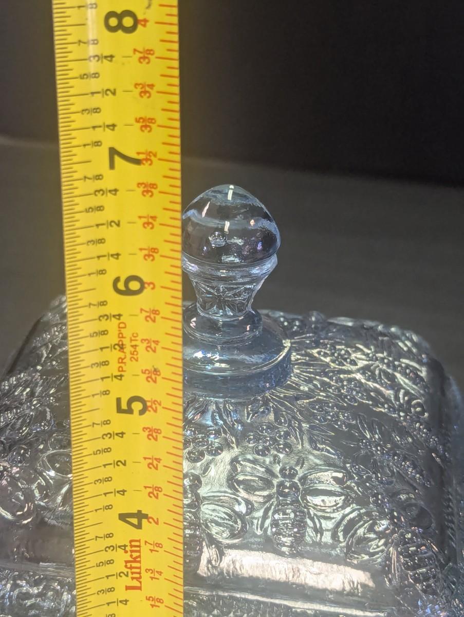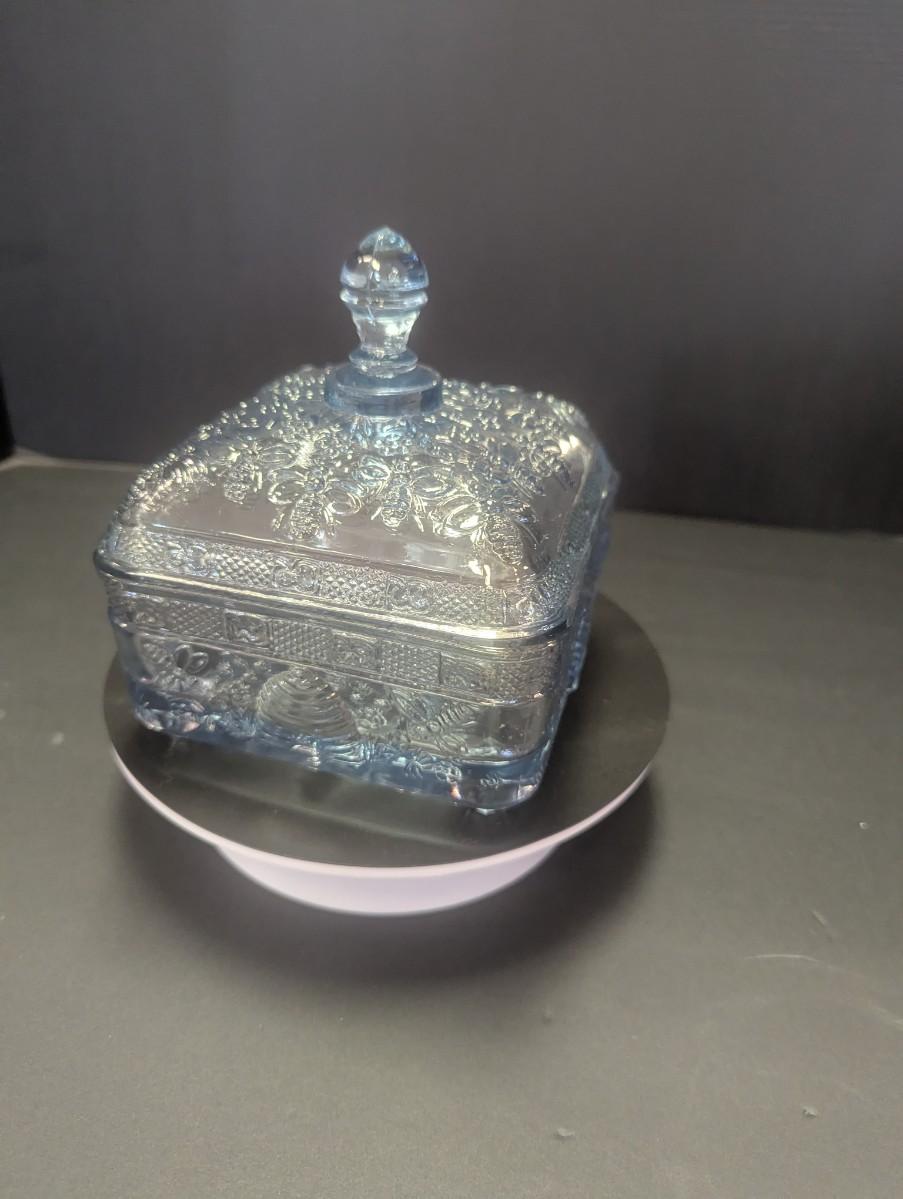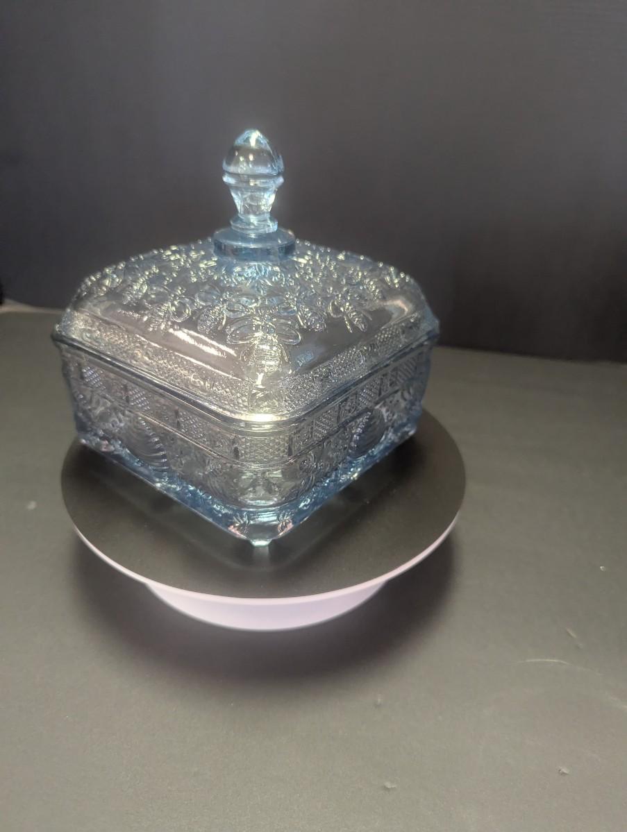Vintage Tiara Indiana Glass Honey Bee & Beehives Candy Dish Light Blue