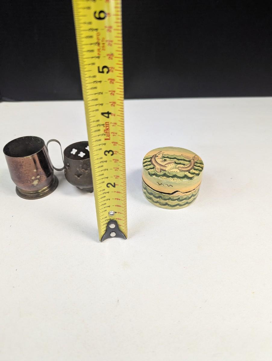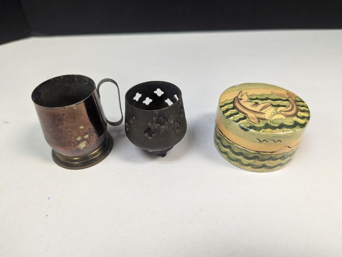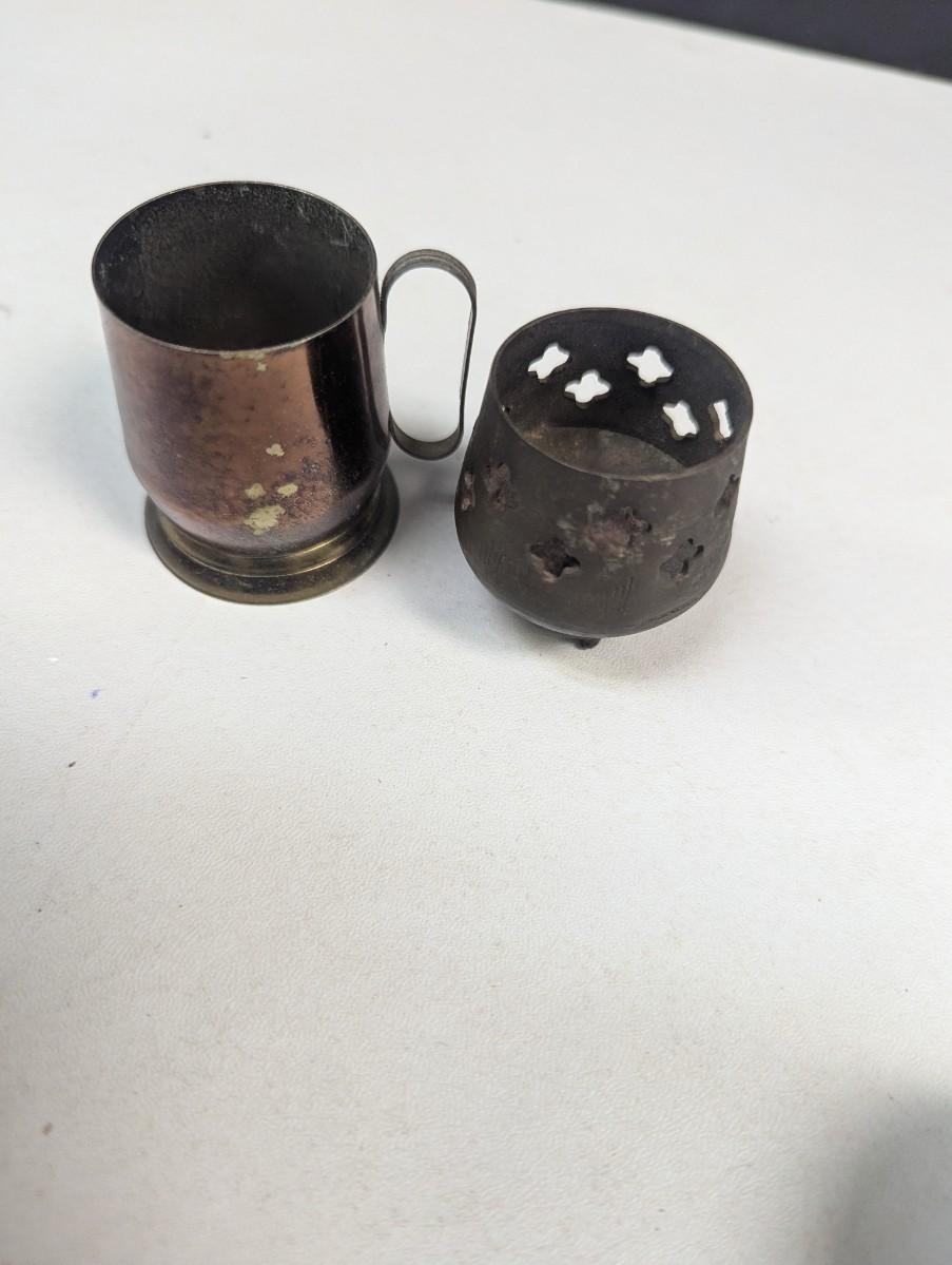 Small Copper Mug - Brass Candle Holder - Small Vintage Kashmir India Trinket Box Jewelry Hand Made Original