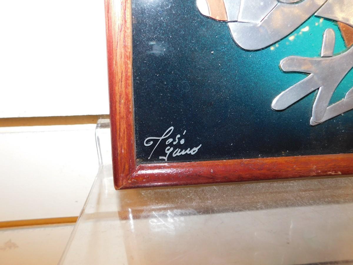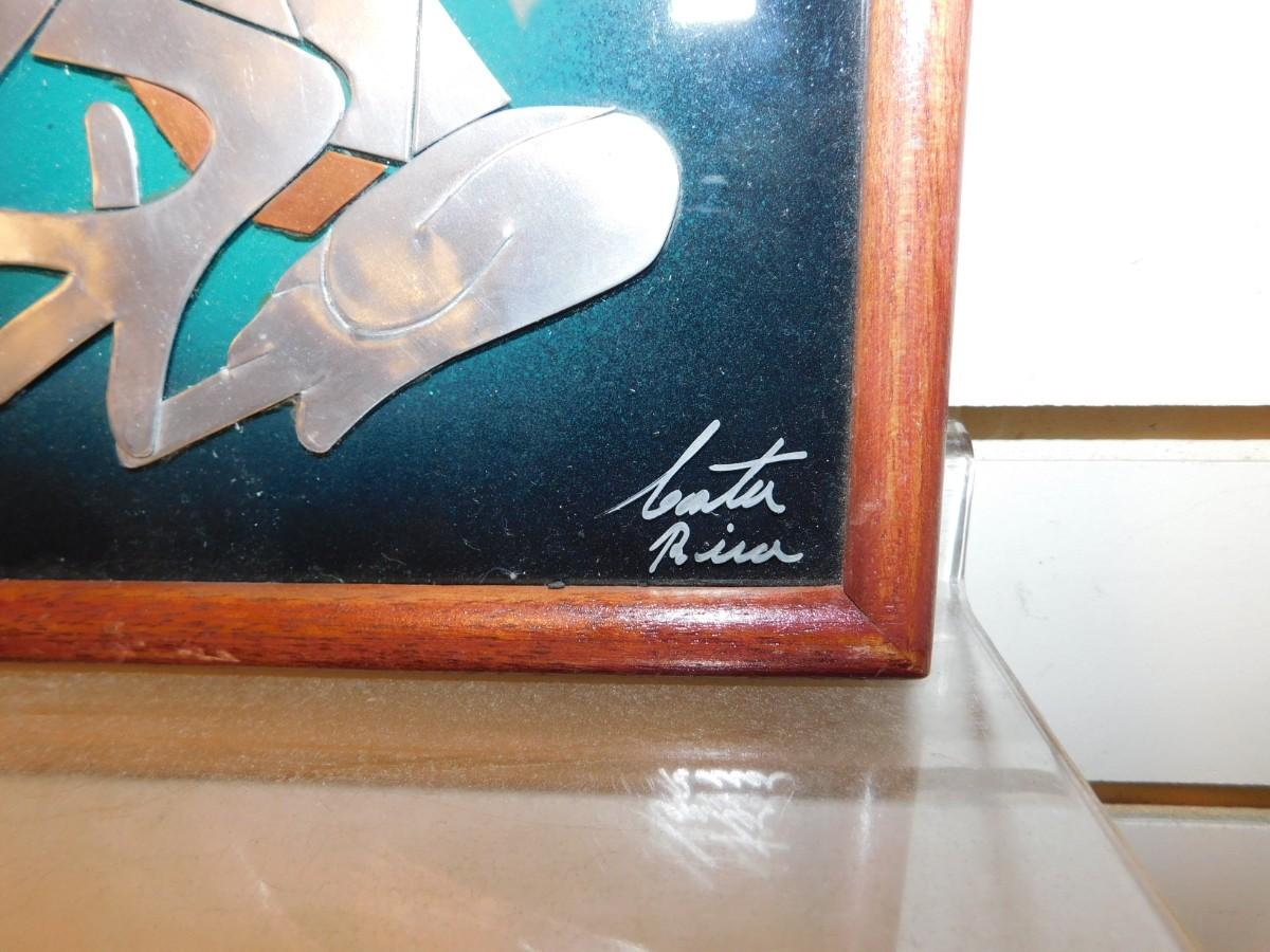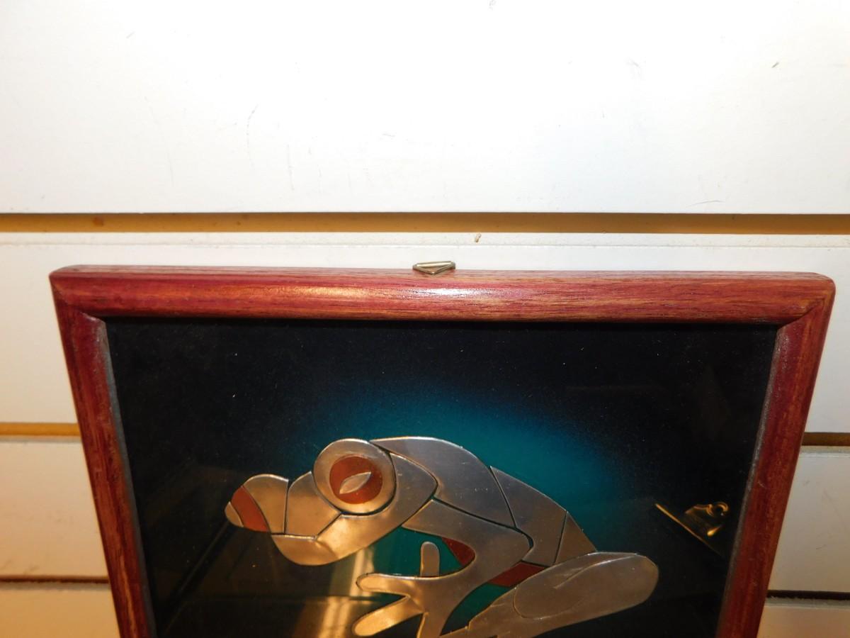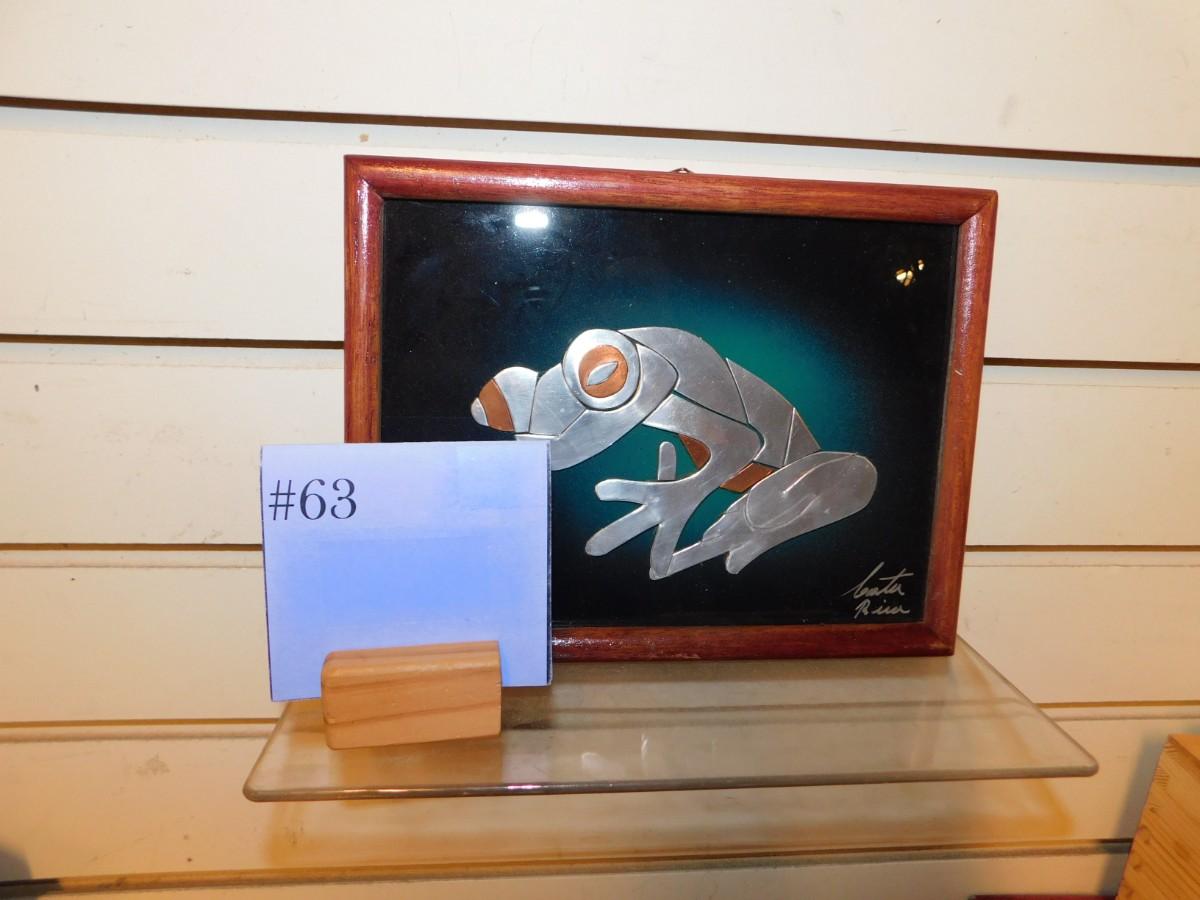 Small Costa Rican Framed & Matted Metal Frog Signed by Artist 8.75”x6.75”