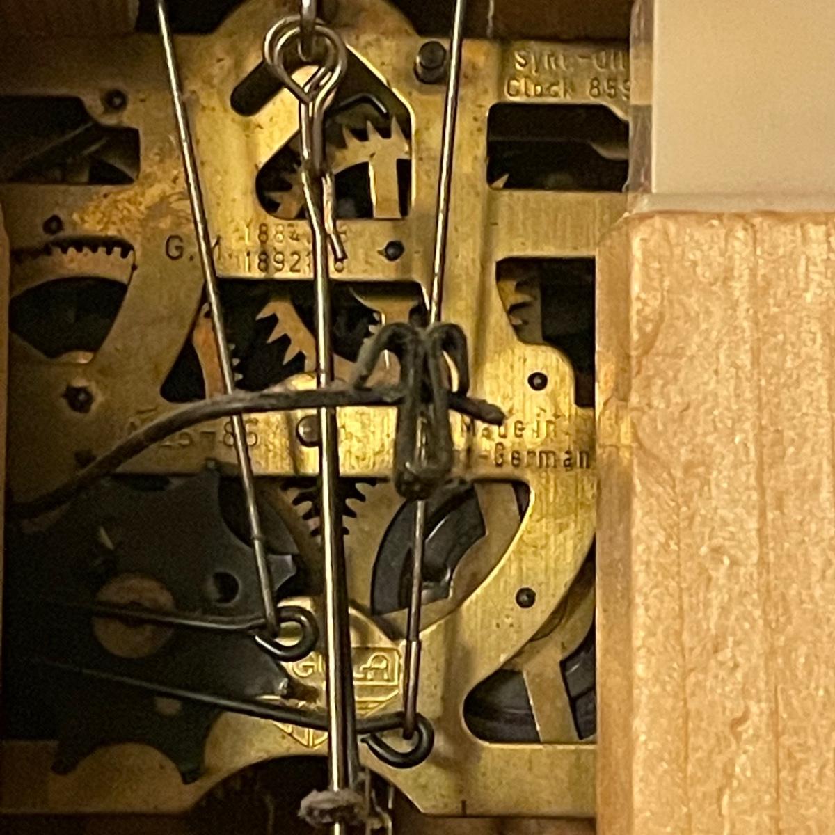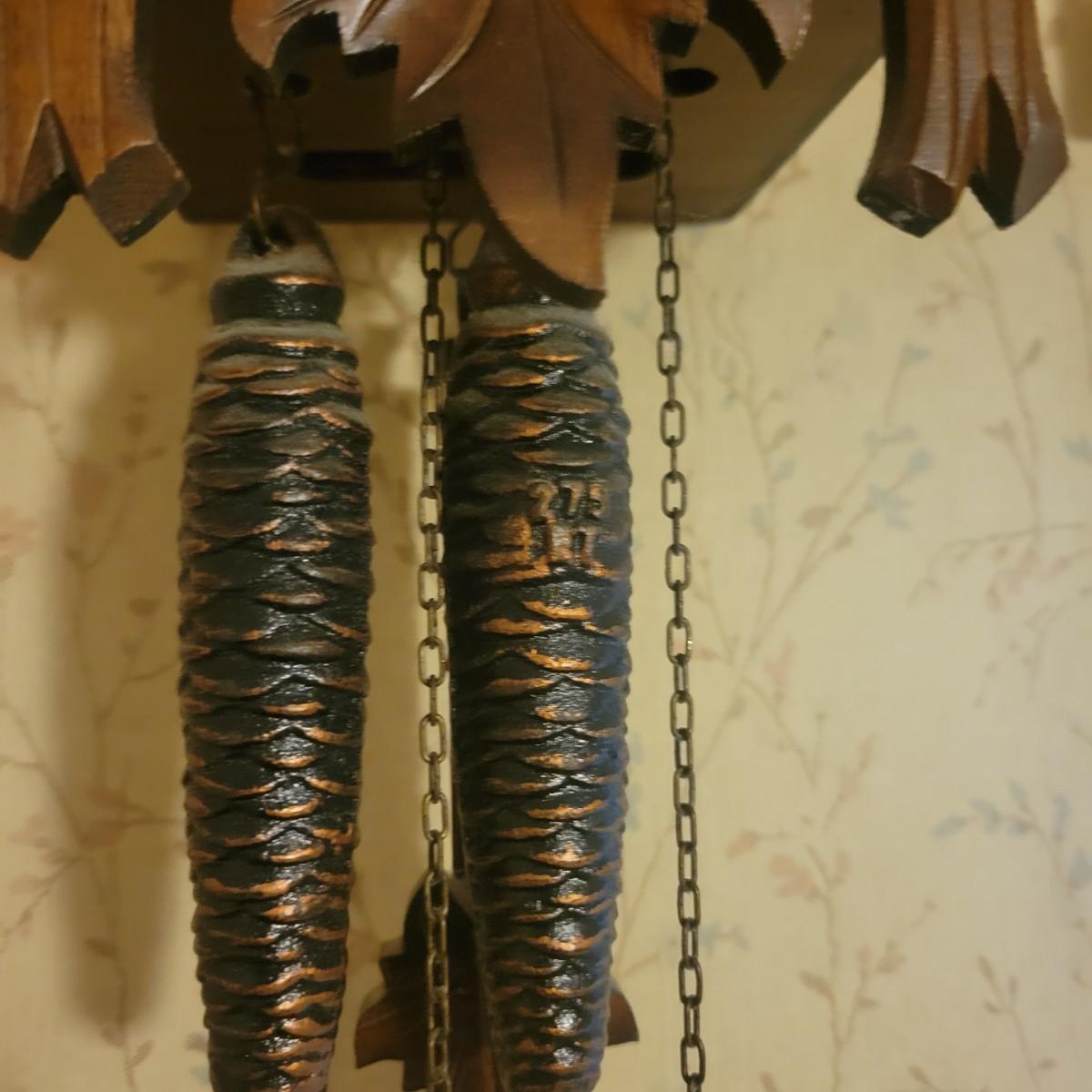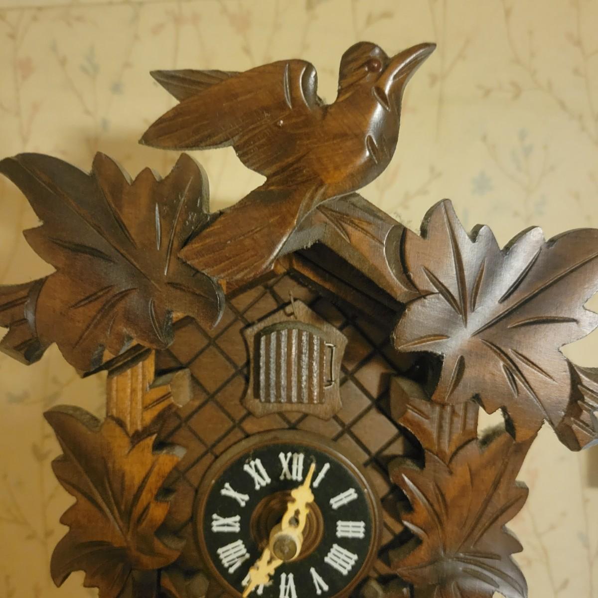 This Regula wooden, hand carved cuckoo clock was made in West Germany and is in good condition, but did not work when the cords were pulled. Measures approximately 7" x 5.5" x 13" Shipping available