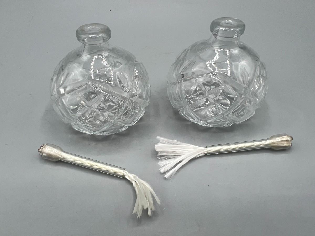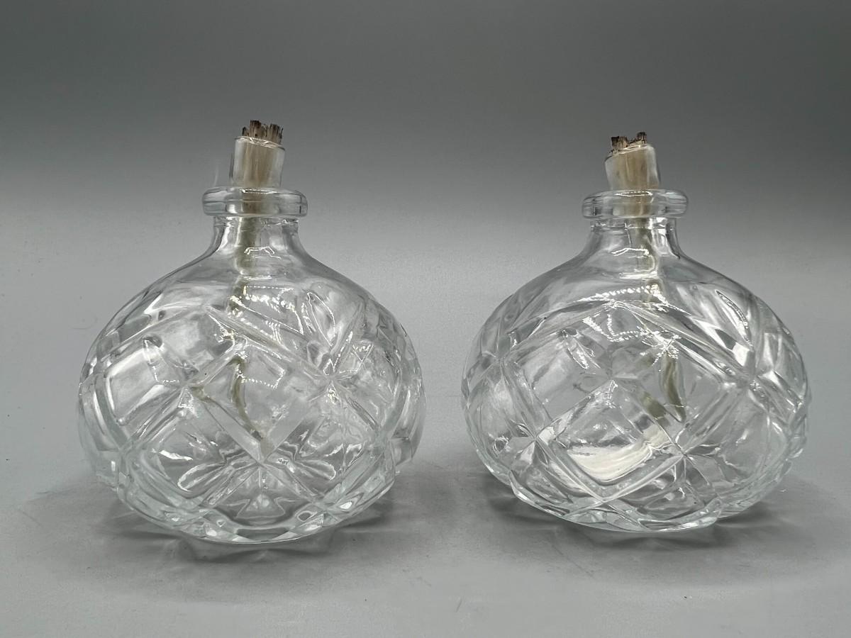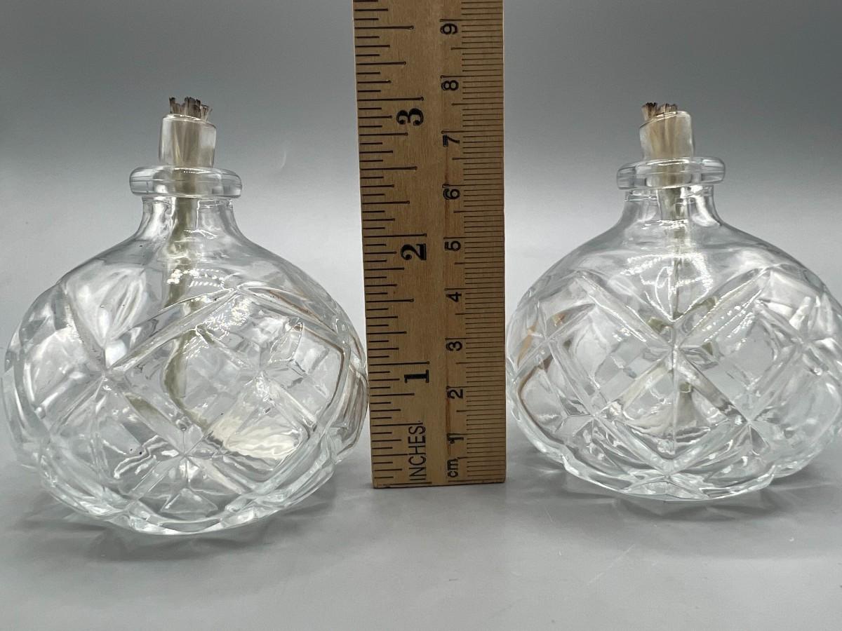 Small Cut Crystal Glass Oil Lamps Burners. Good condition. About 3" size.