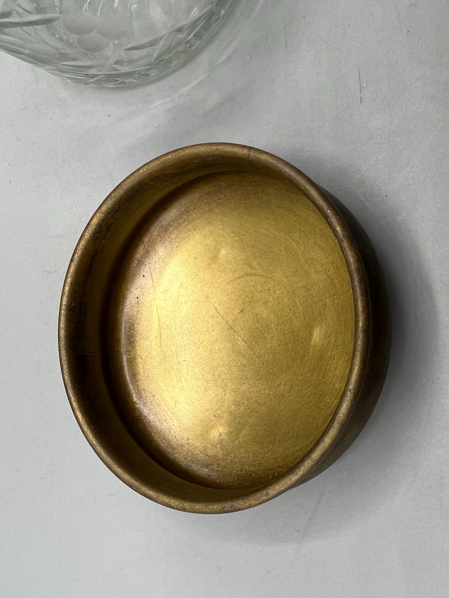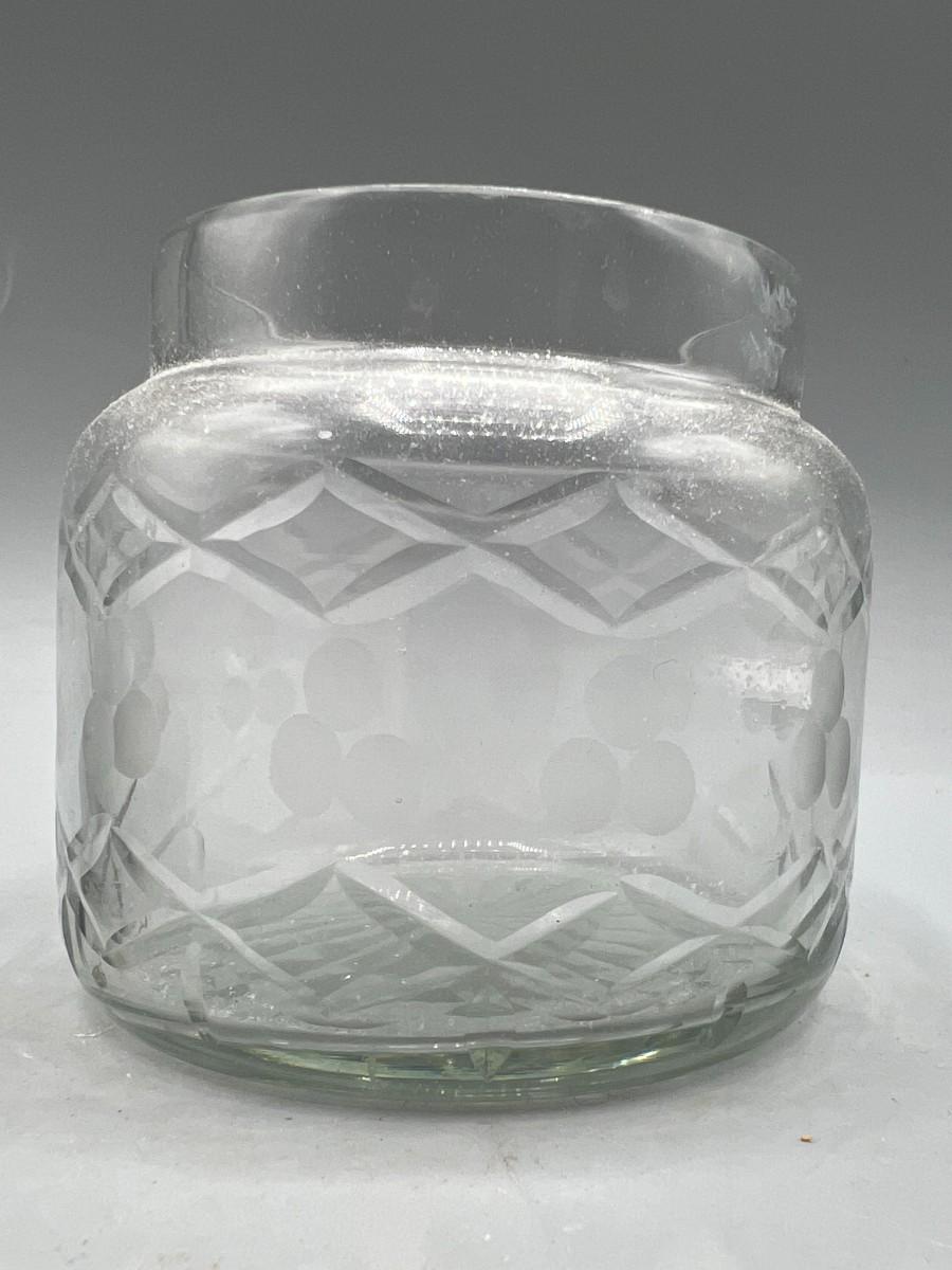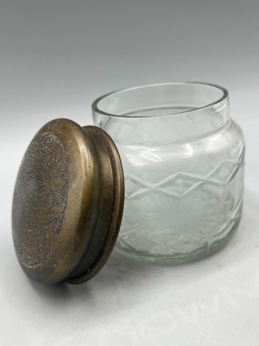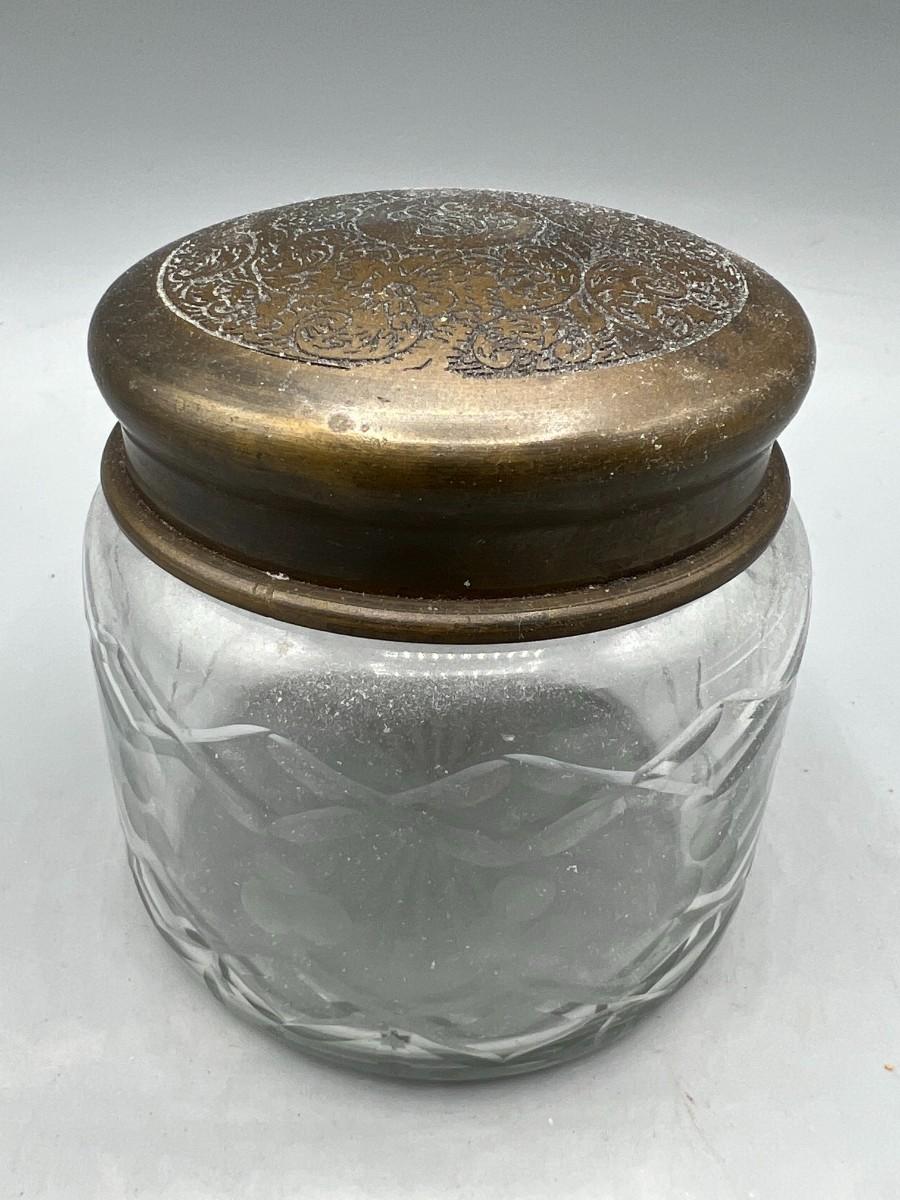 Small Cut Glass Crystal Jar with Etched Metal Lid Trinket Powder Apothecary