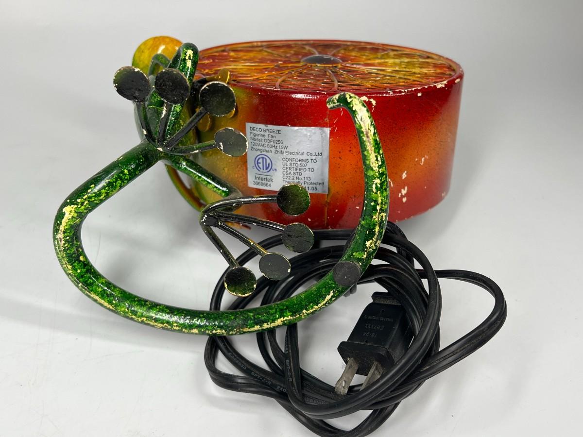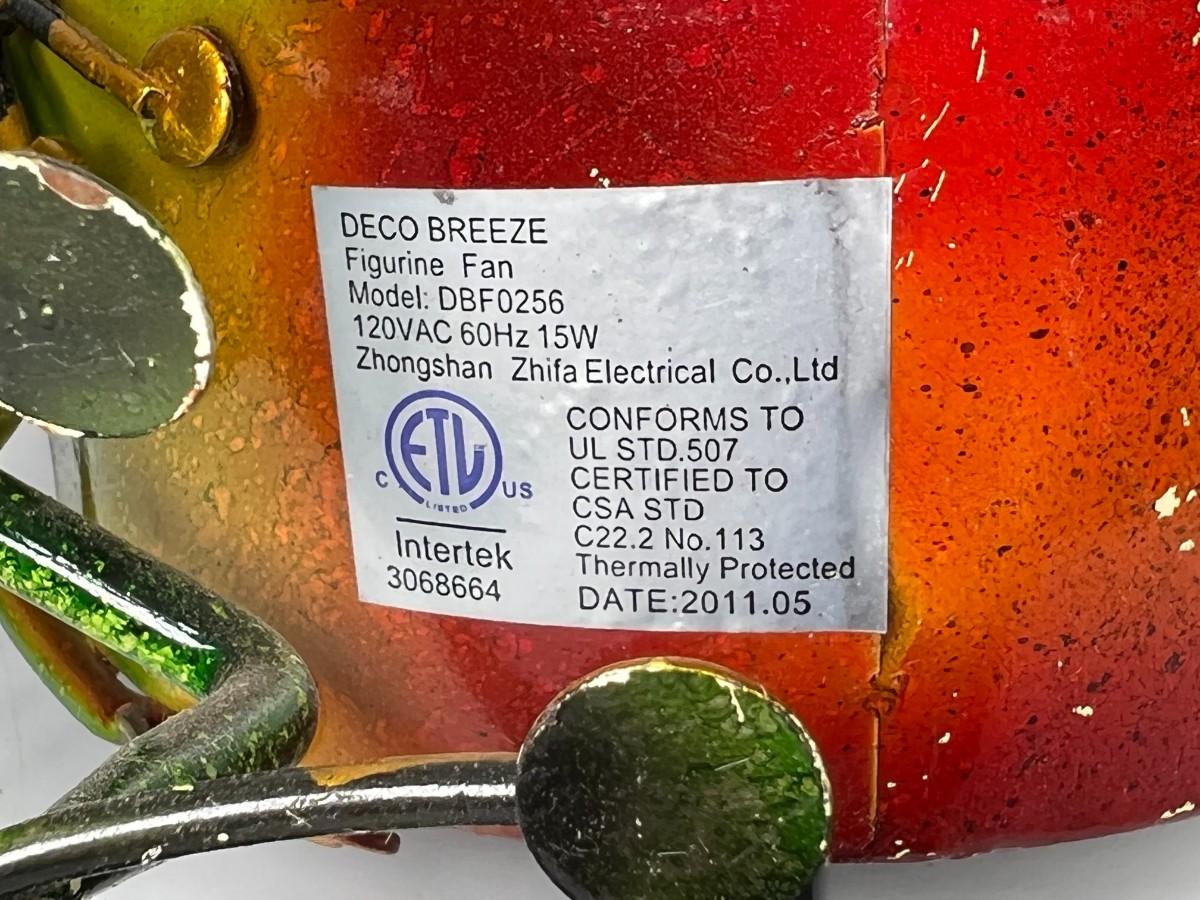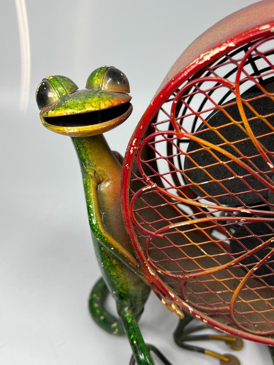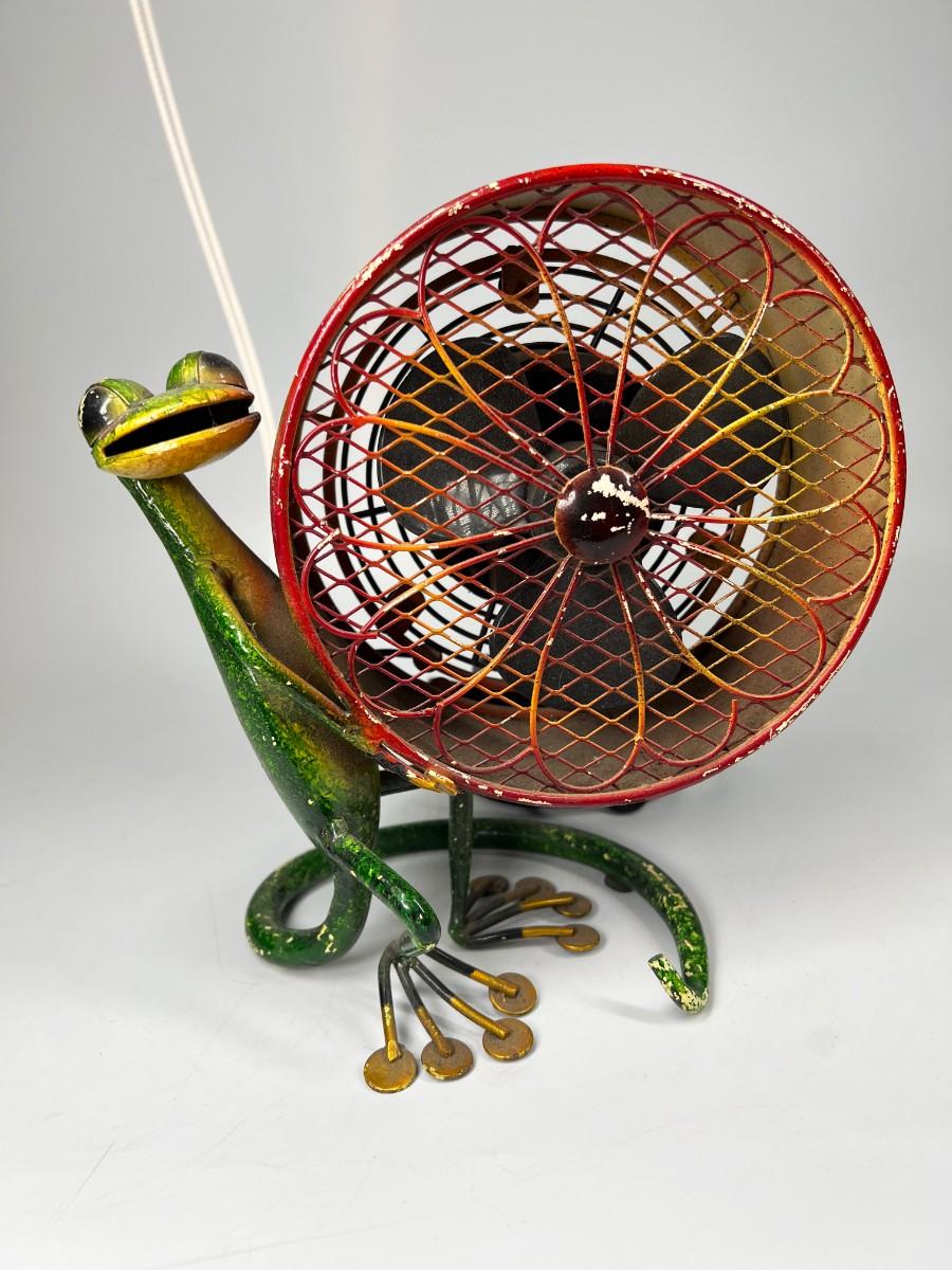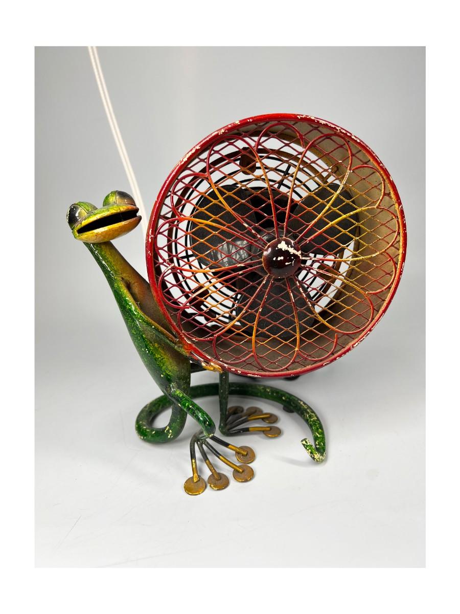 Small Deco Breeze Metal Tropical Gecko Desktop Fan, there is some light wear to the fan, but there is no significant damage and is in overall good useable condition. Has been tested and works perfectly, check pictures for more details and for sizing.