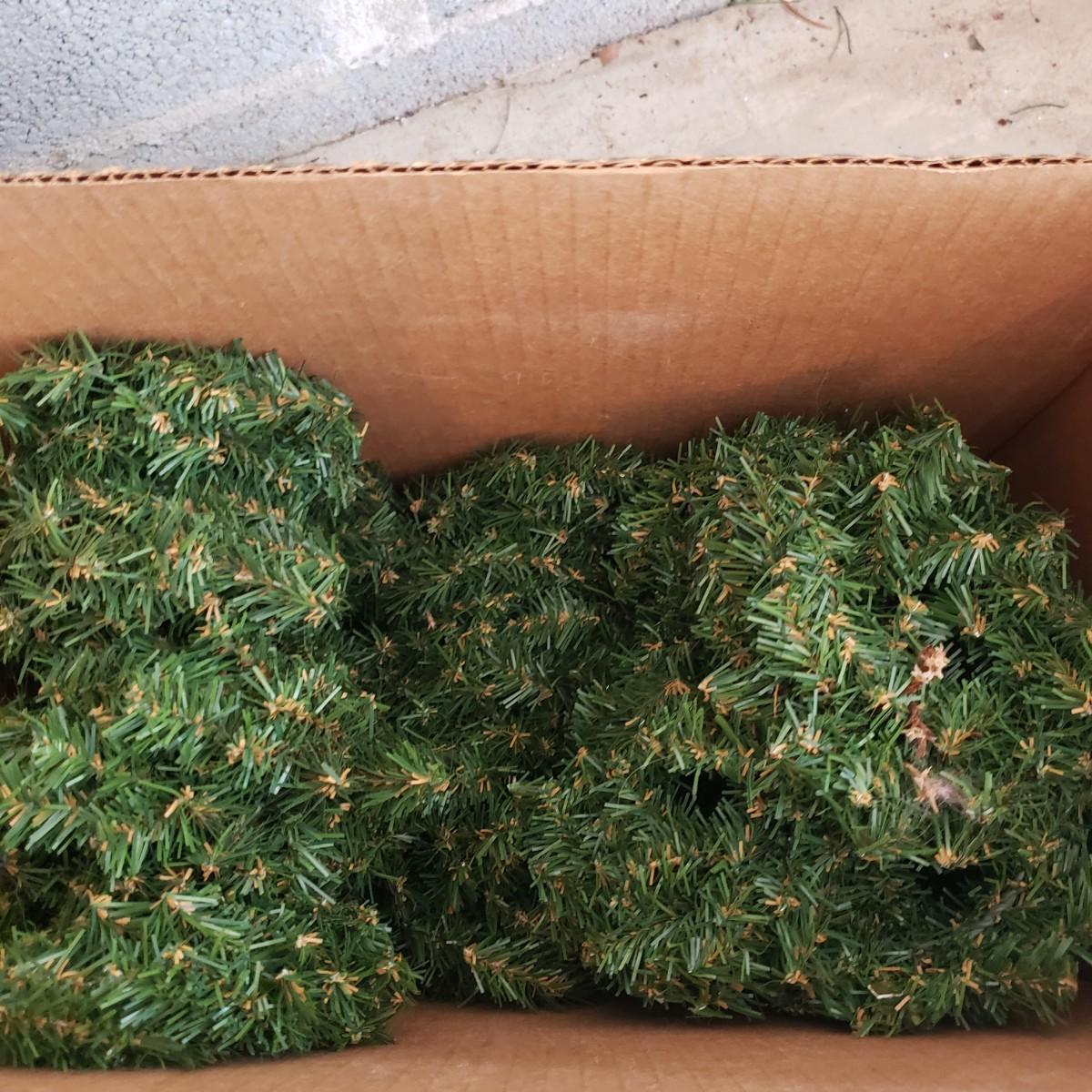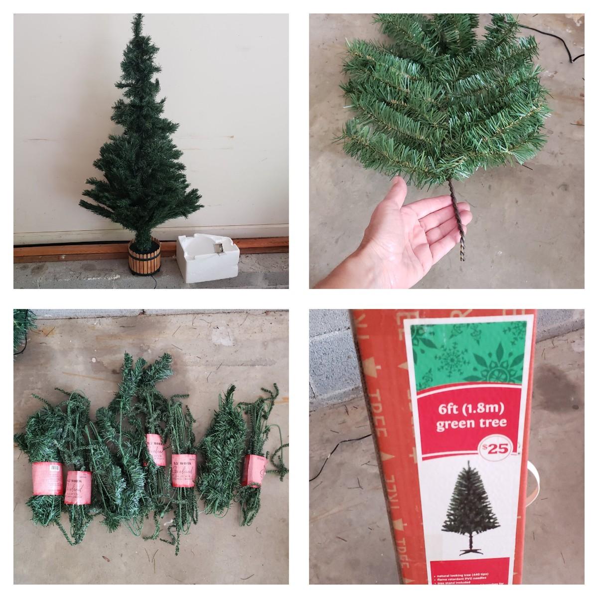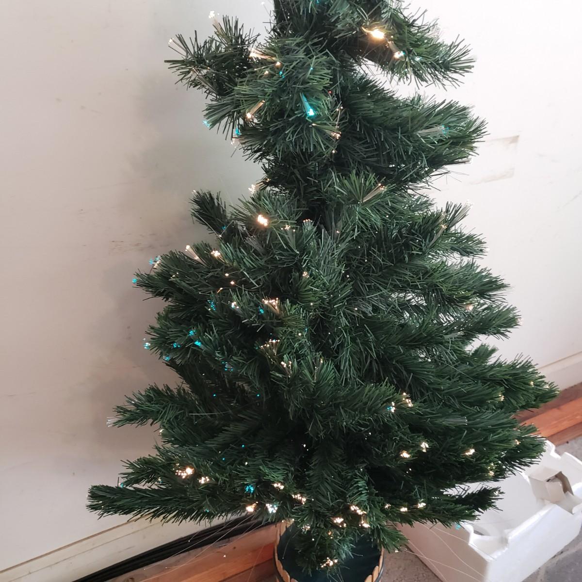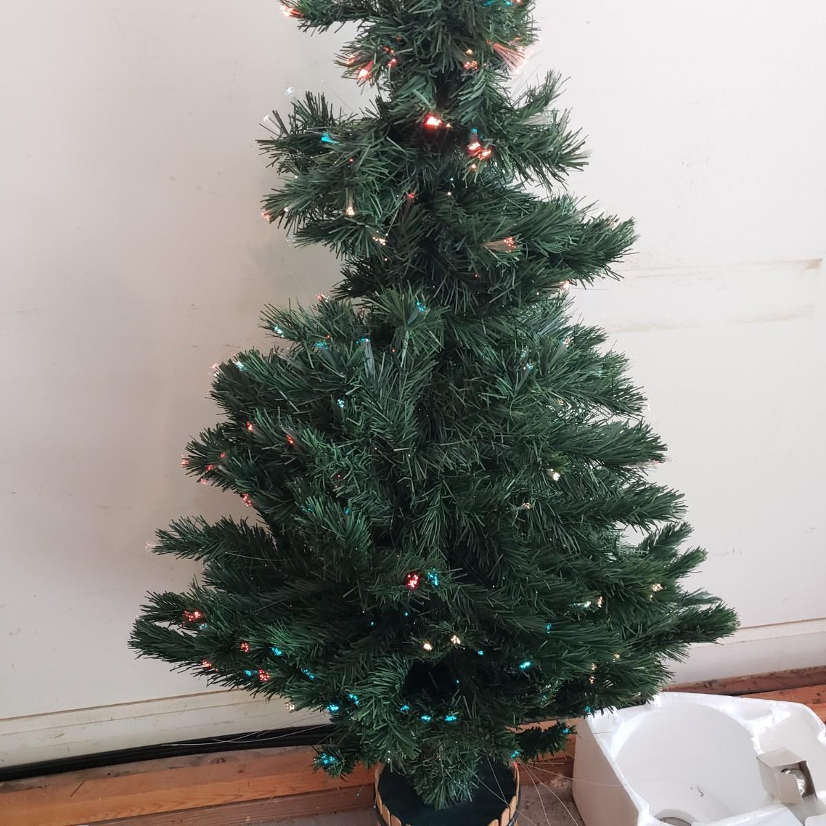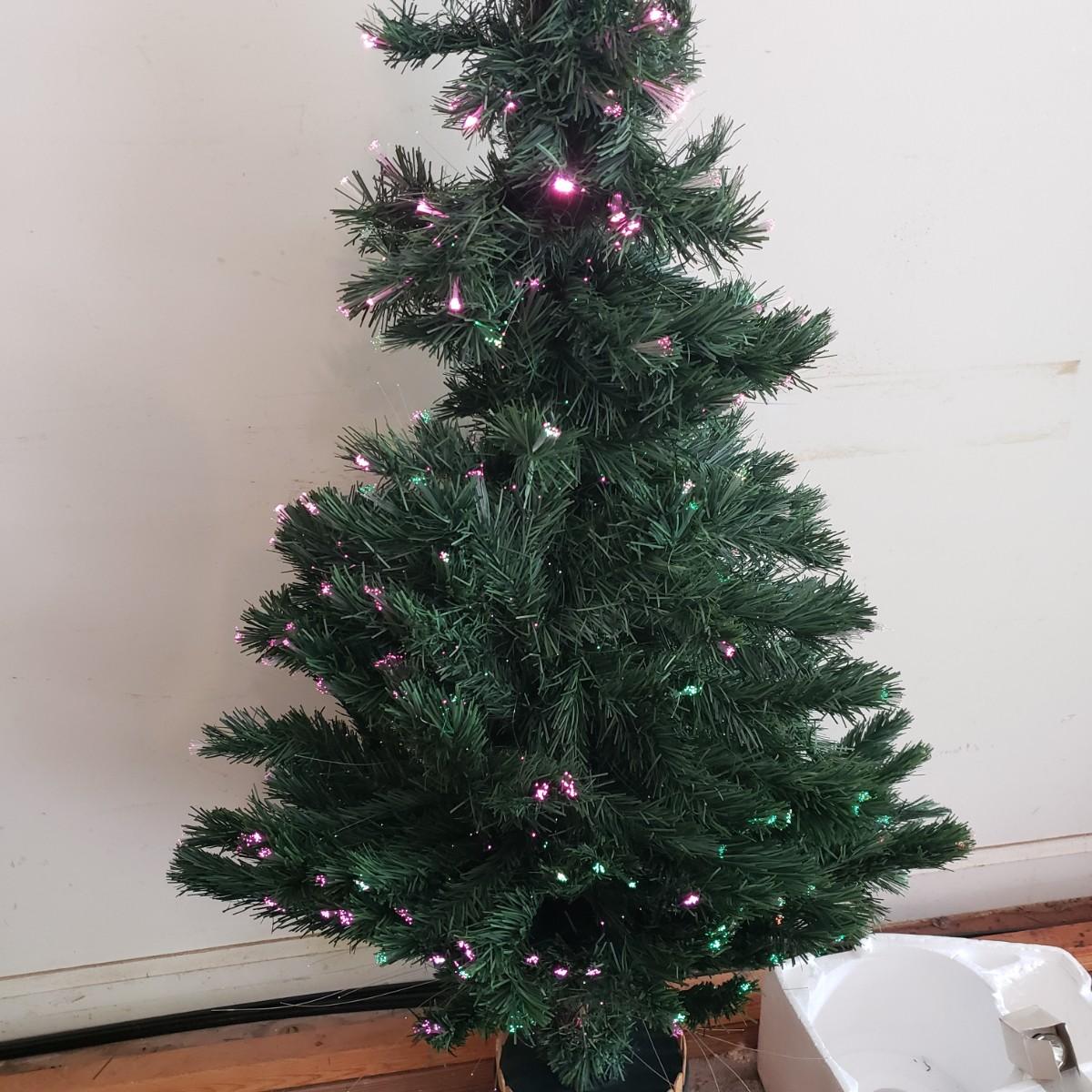 This faux small Christmas tree and various garland lot will add that special Christmas touch to your decor this year! The largest fiber optic is 58" and lights up when plugged in., photos don’t do this little gem justice as it has the prettiest twinkling light display. There are 10 flat tree shaped trees with thick wires. See pictures for the various garlands. There is also a tree still in the box, appears unused. See picture for details.