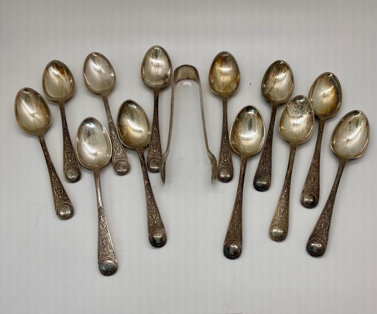 Small Dessert Spoons and Tongs Silver Plate