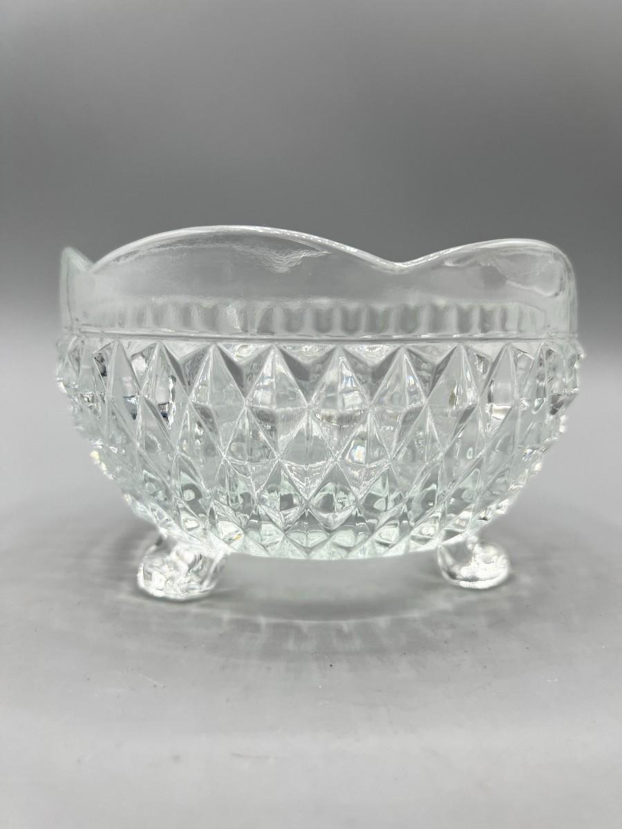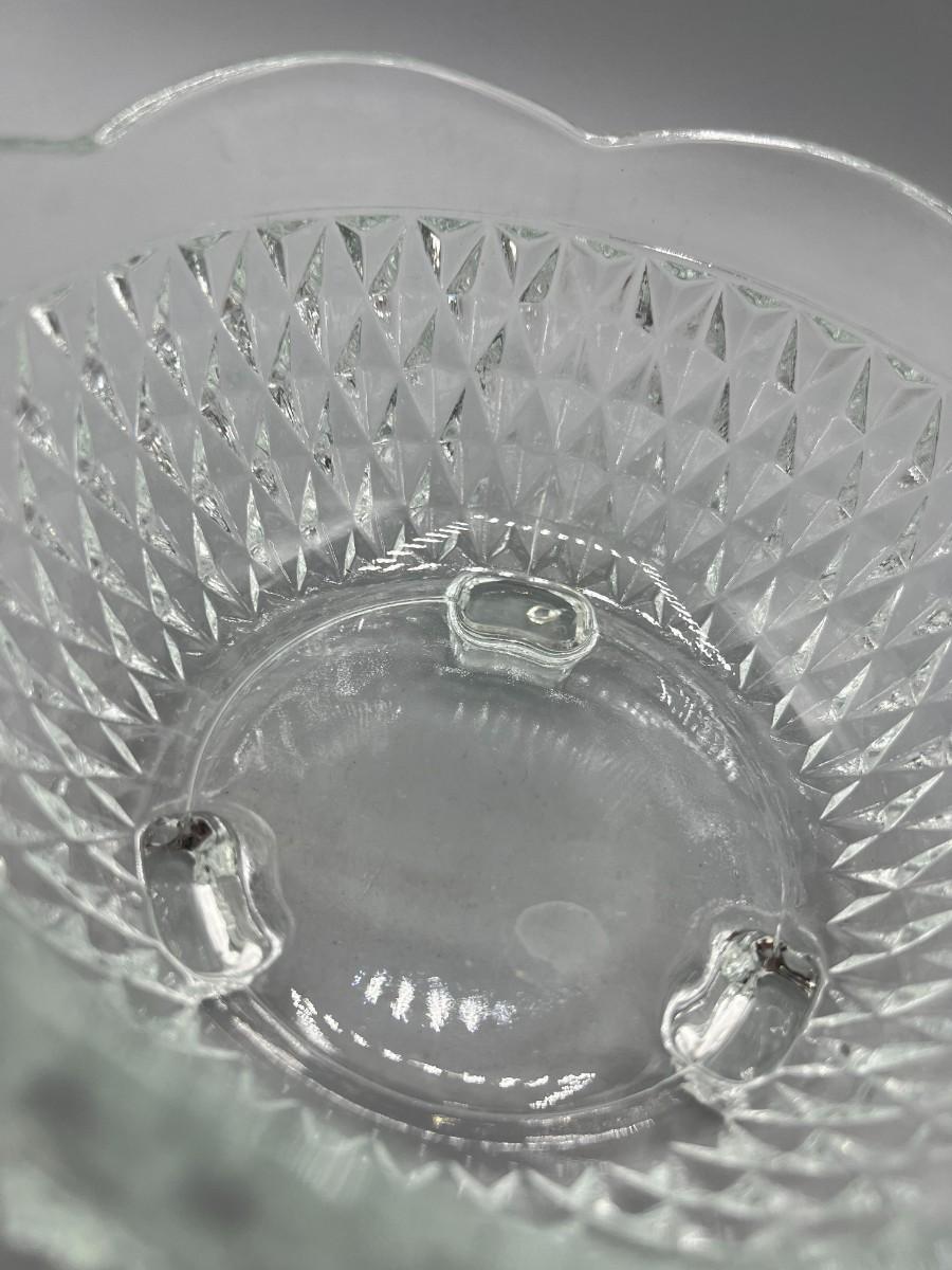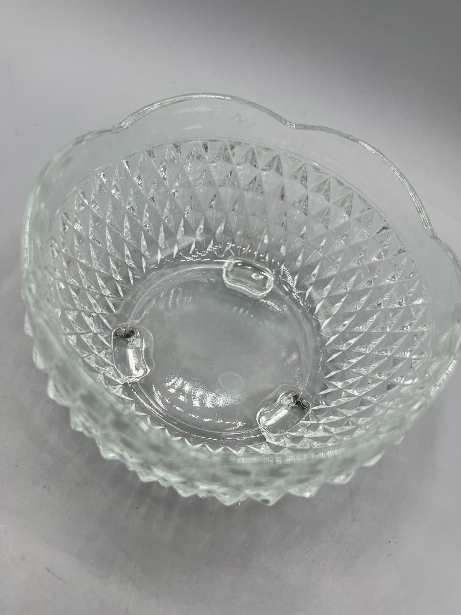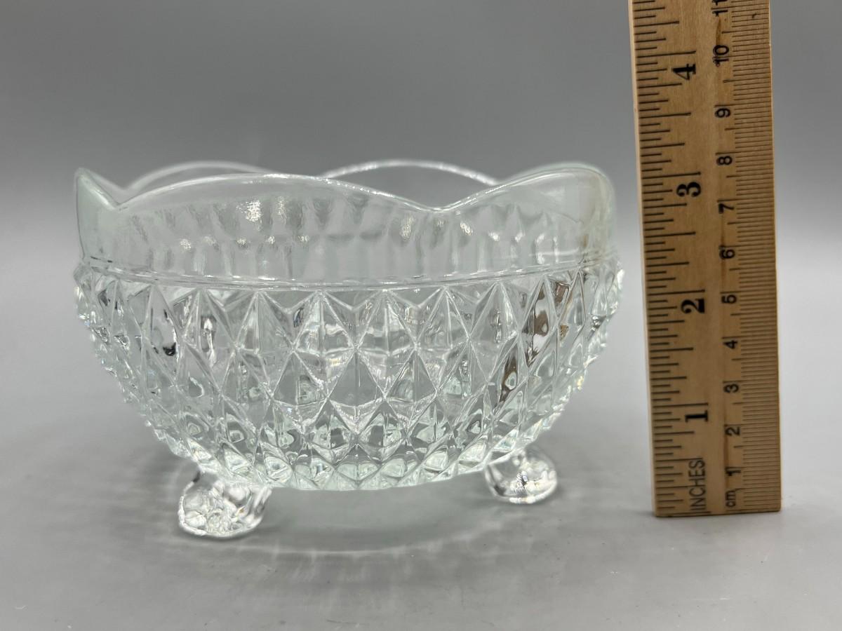 Small Diamond Pattern Scalloped Edge Footed Bowl Trinket Dish. In good condition. About 3" size.