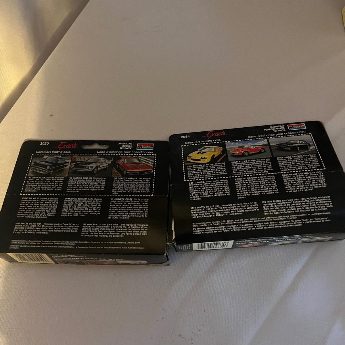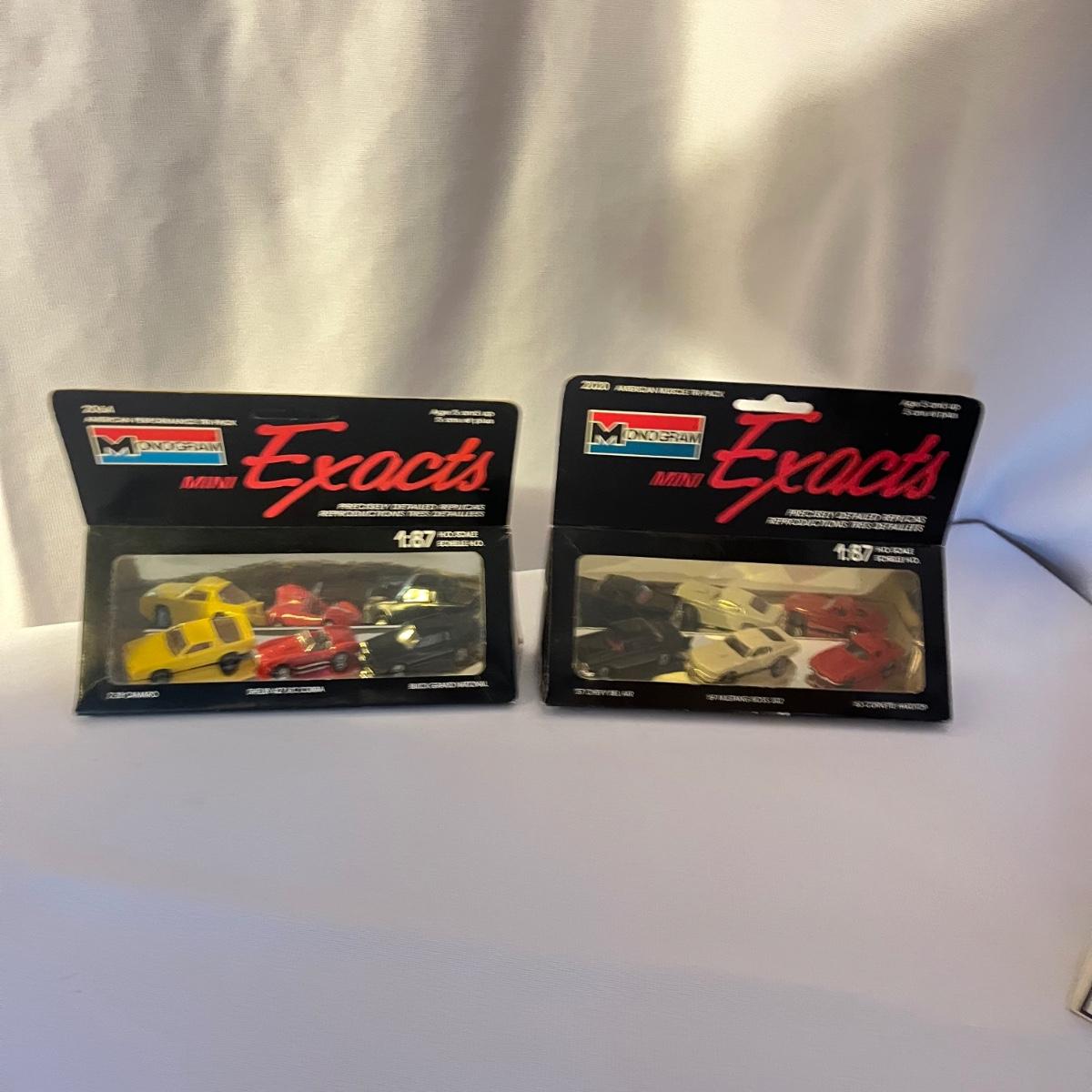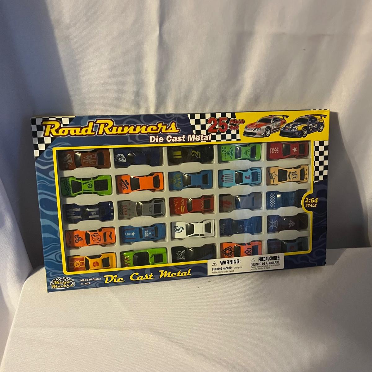 Lot includes a set of twenty five Road Runners die cast metal cars in 1:64 scale, two packs of Monogram Mini Exacts 1:87 scale cars, Road Champs 1:43 scale Chevrolet truck and Charger America, Fire Heroes die cast van, Pearl Oil die cast van and a Johnny Lightning 51 Hudson Hornet.