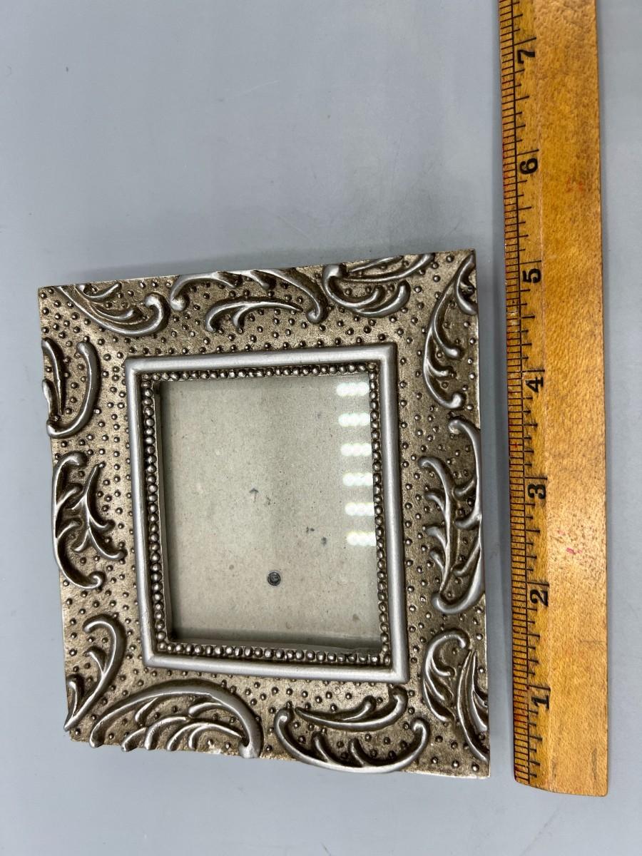 Small Displayable Silver Gray Photo Frame, there is no significant damage to the frame and is in good displayable condition. Check pictures for more details and for sizing.