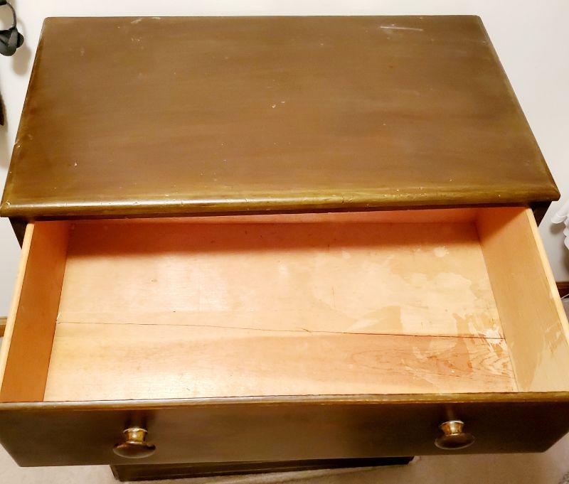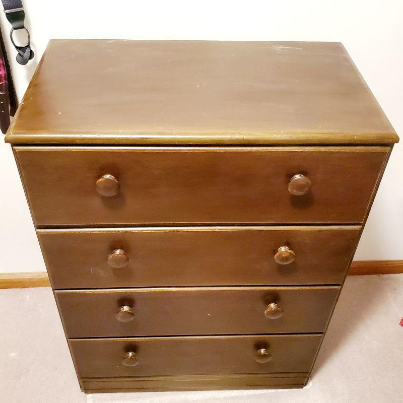 Dresser is in overall decent condition, sturdy but could use a paint touch up in a few spots approx measurements 26.25 x 14.75 x 35.5
