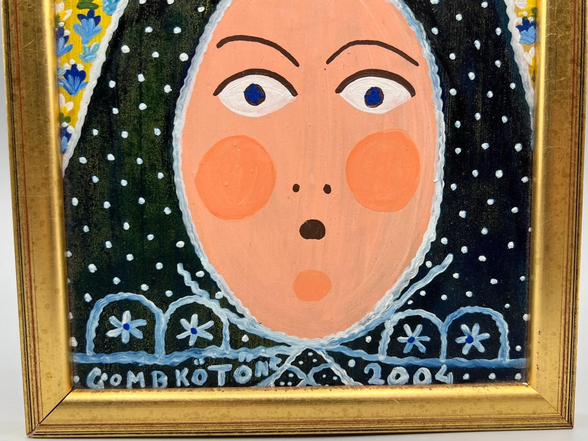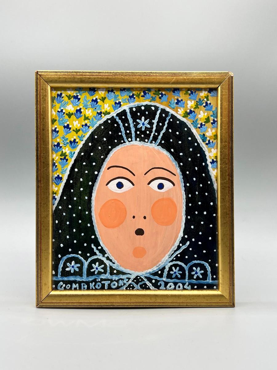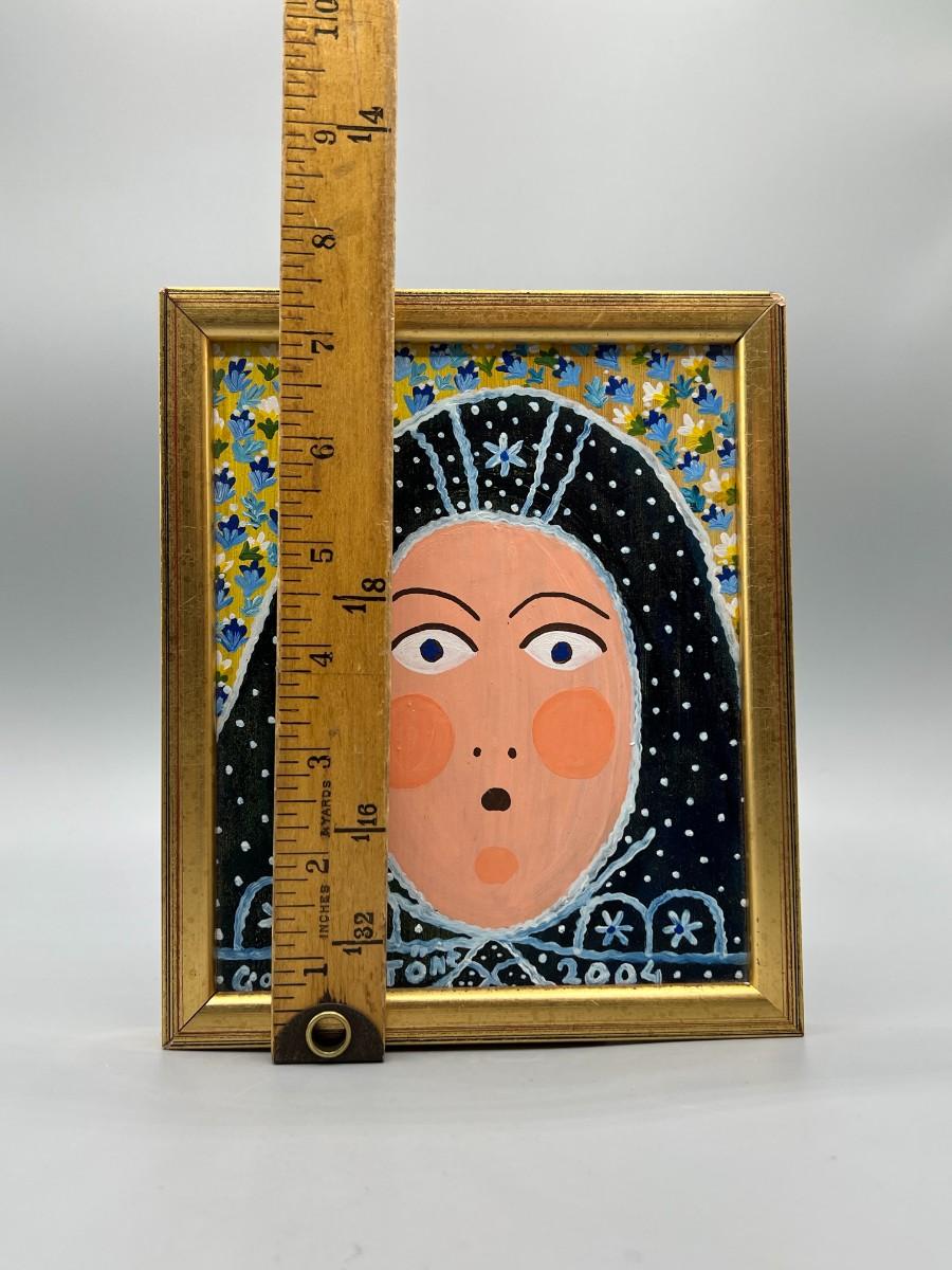 Small Eastern European Folk Art Painting of Woman in Headdress