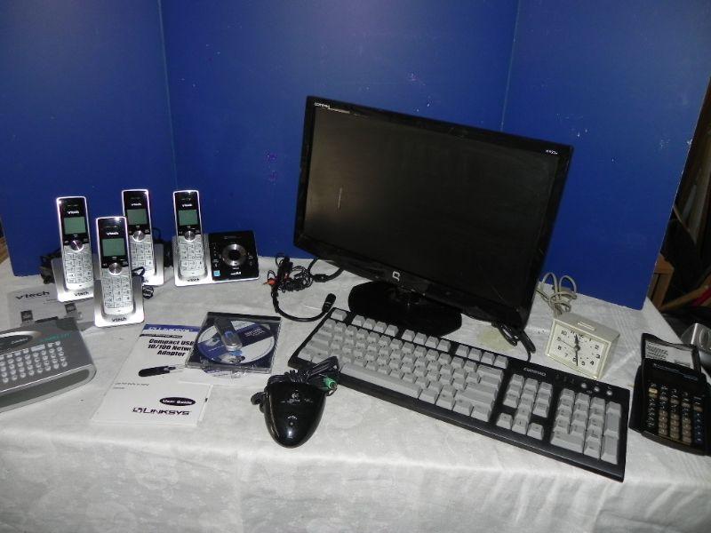 COMPUTER MONITOR-KEYBOARD-MOUSE, SET OF CORDLESS PHONES