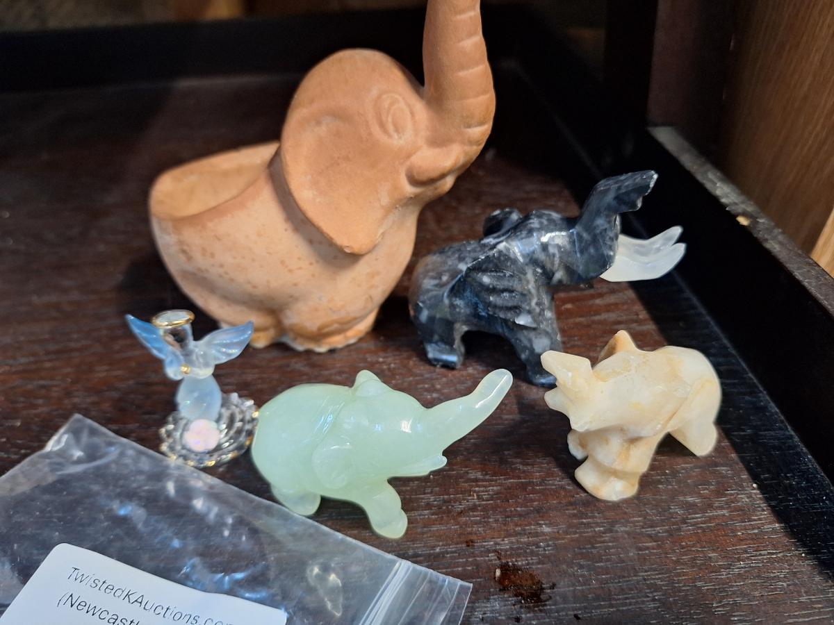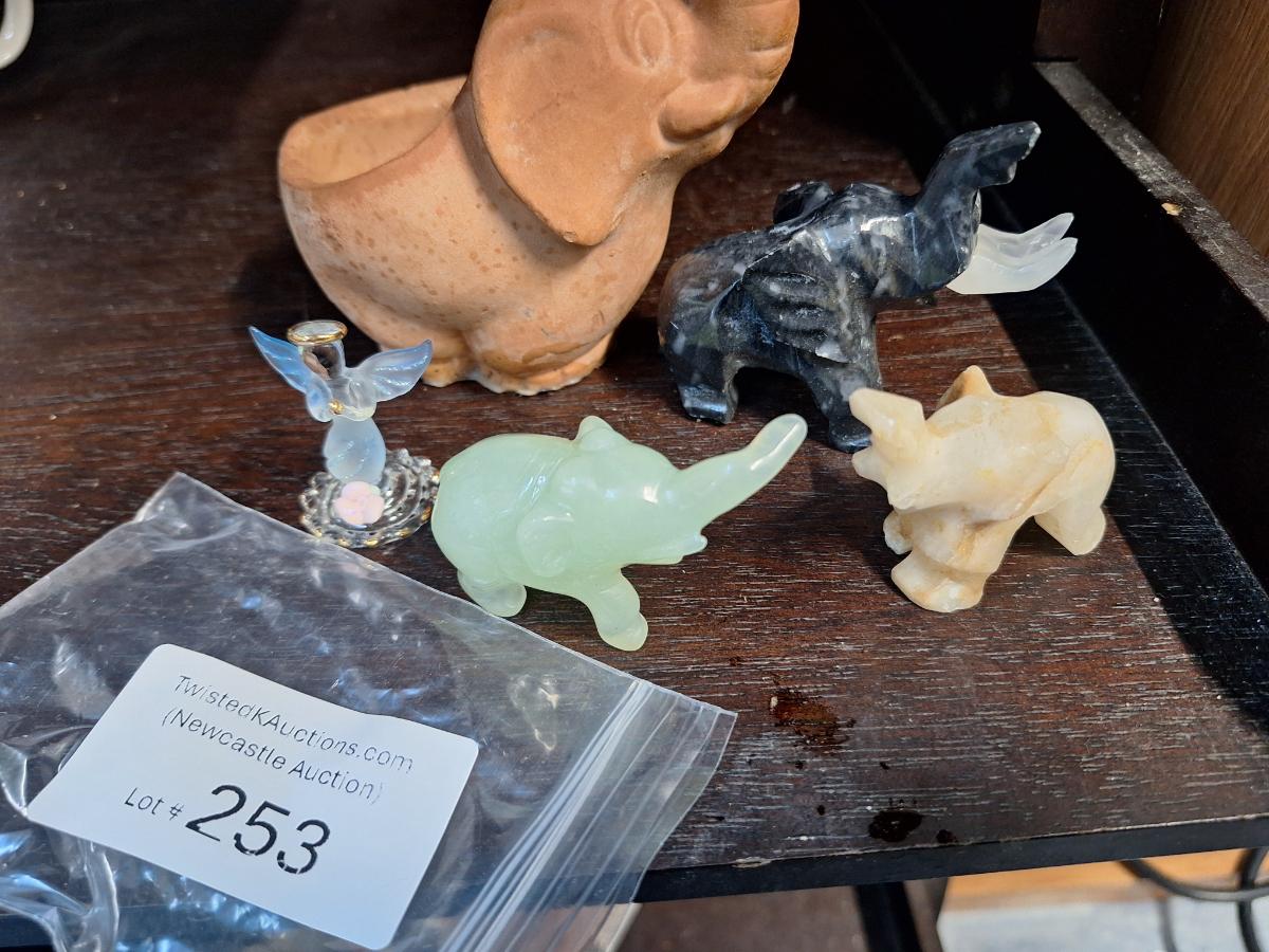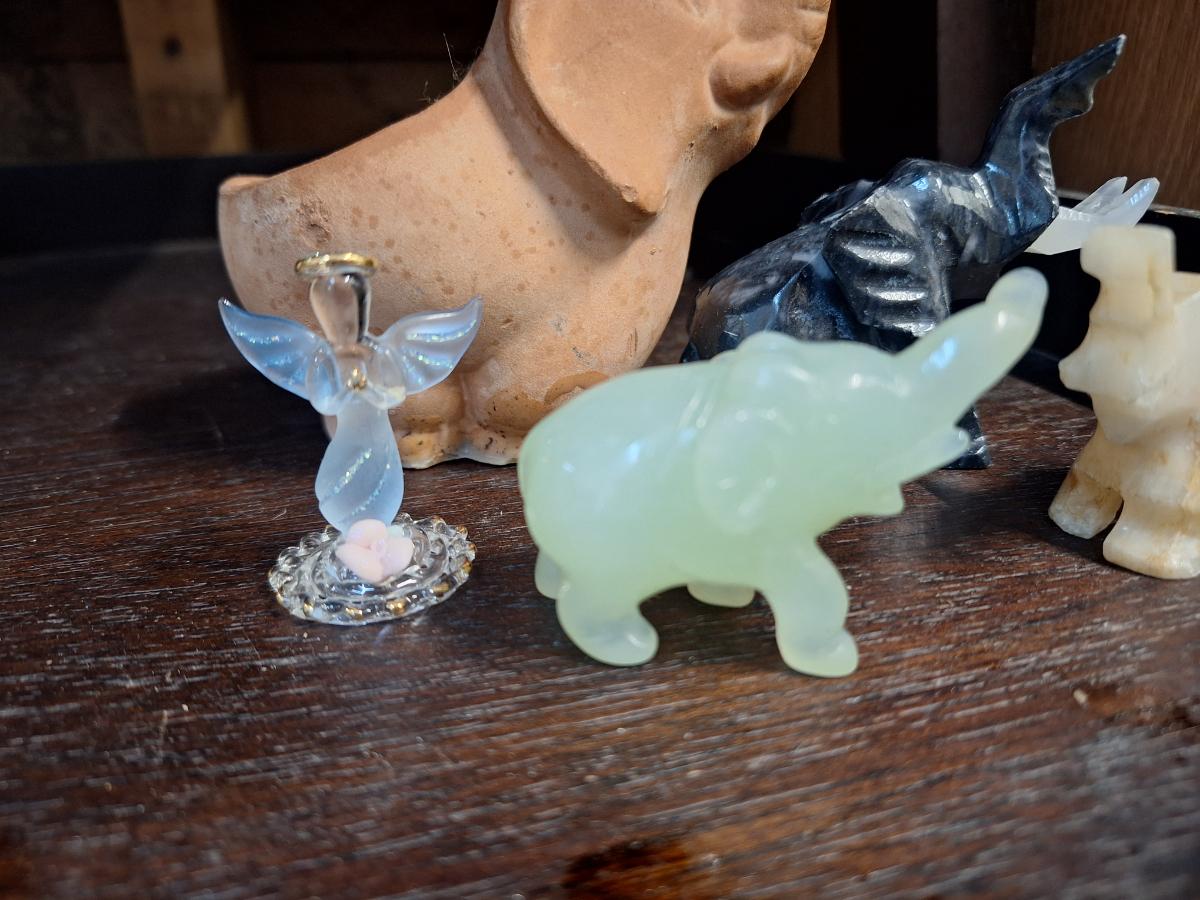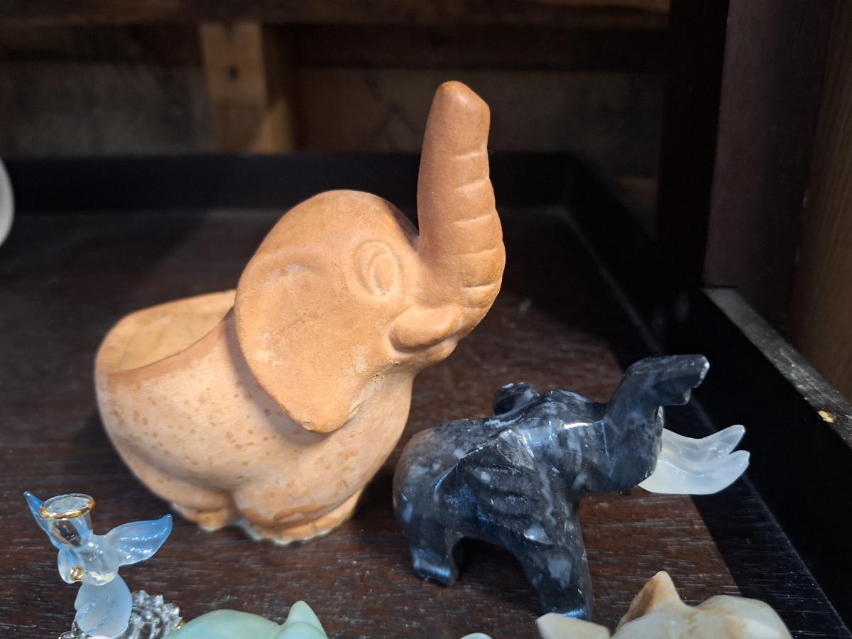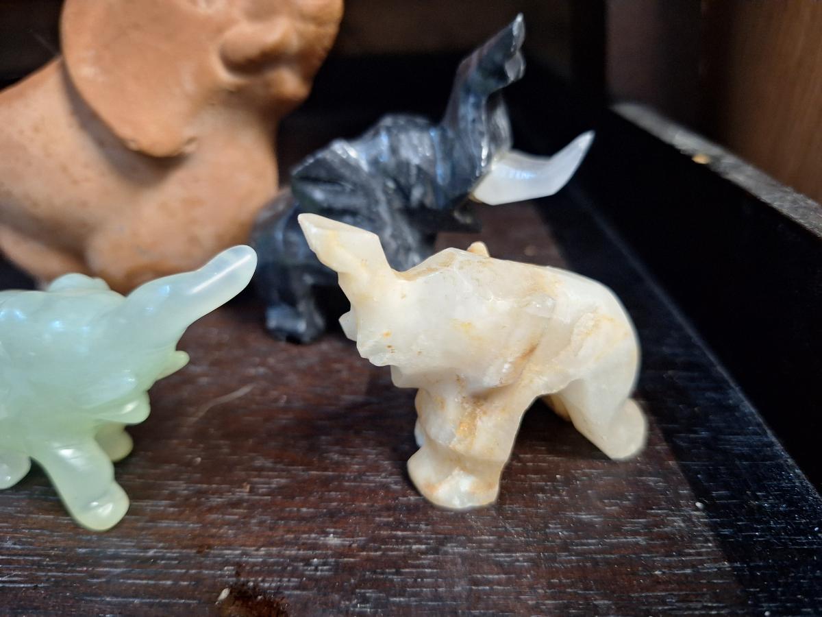 small elephant- stone carved and pottery.