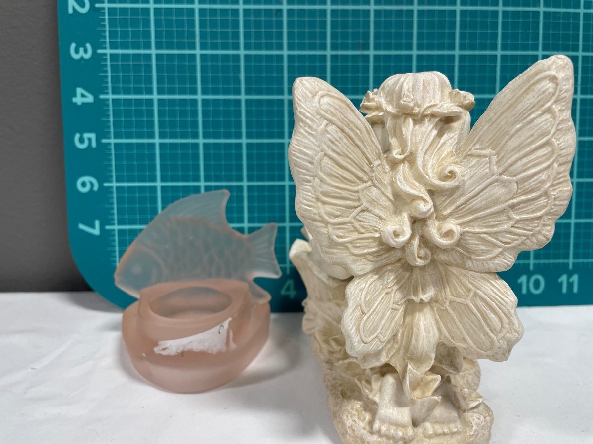 Small fairy decor and pink fish candle holder