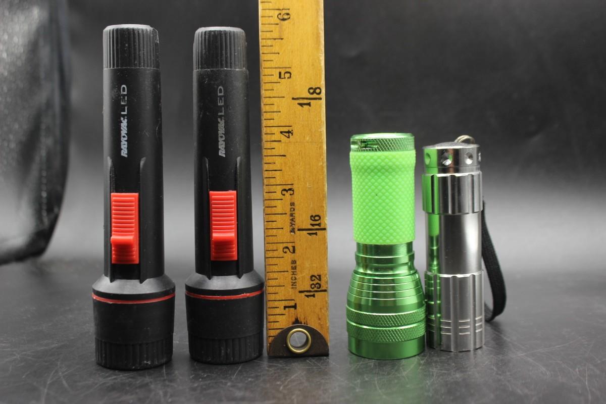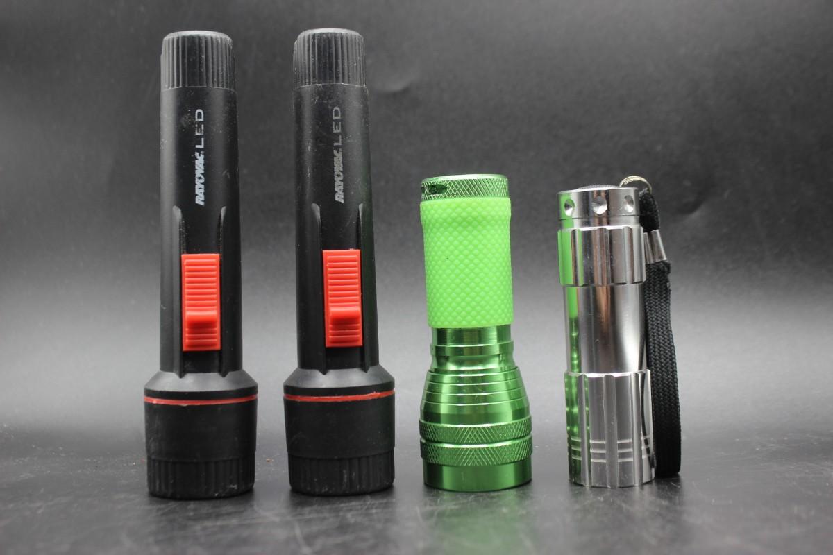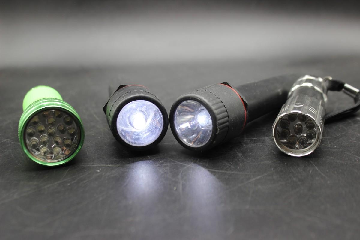 Small flashlight lot. Great for in the car or in a household drawer. Working except the silver one was not tested with new batteries.