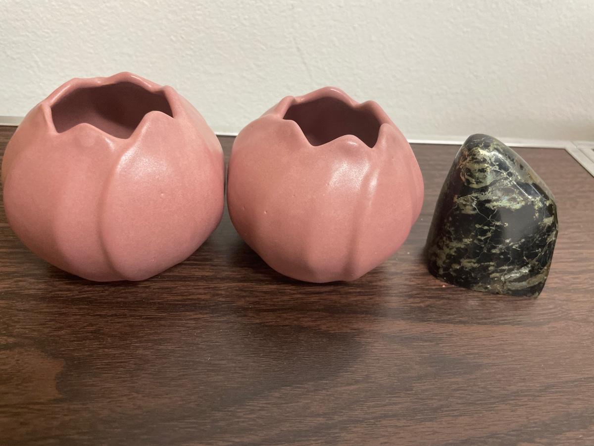 Small flower votives and decorative rock