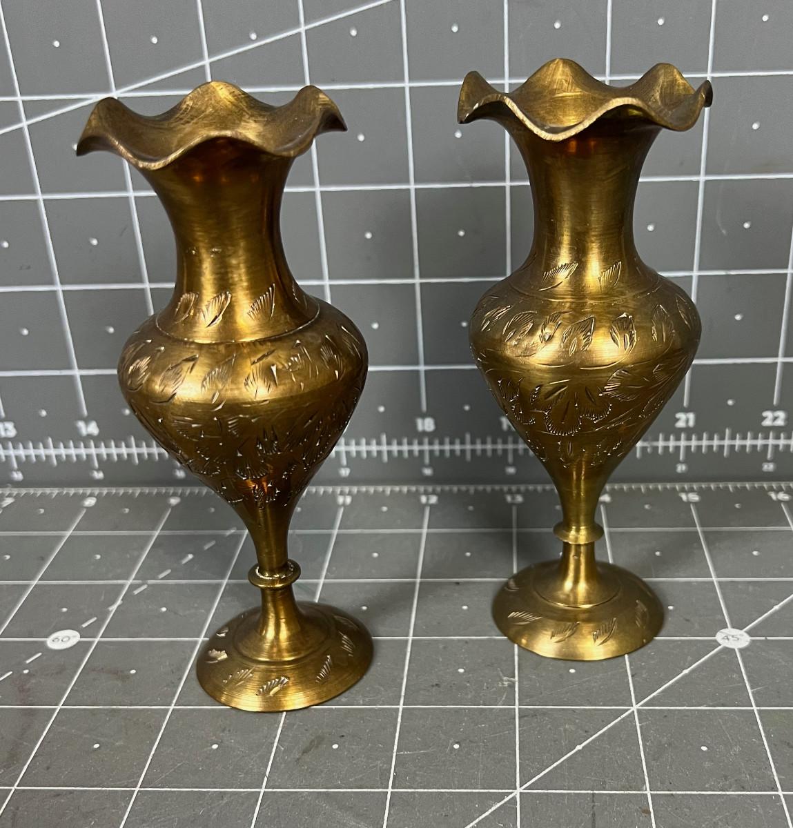 Small Fluted Brass Bud Vases 4"