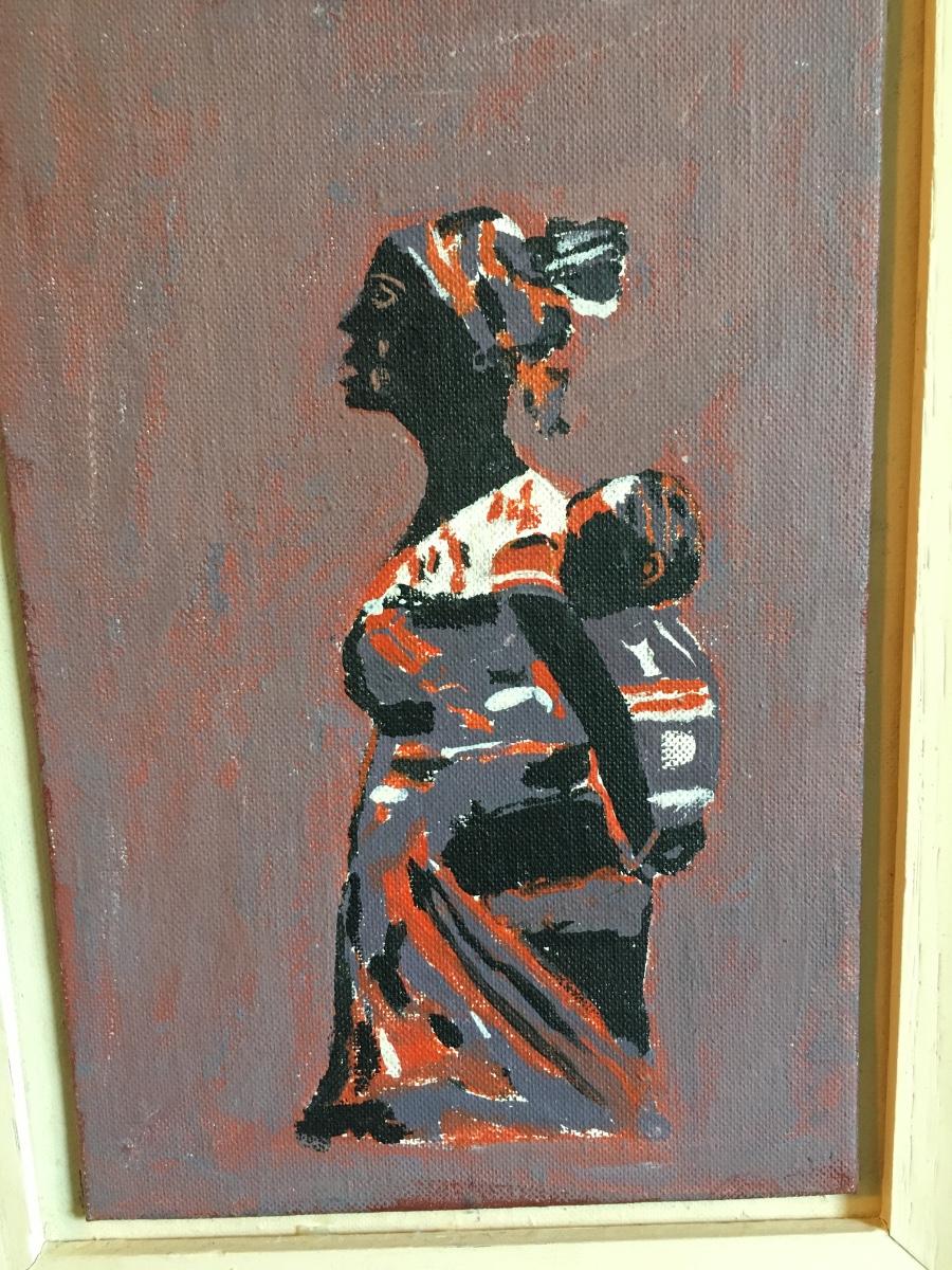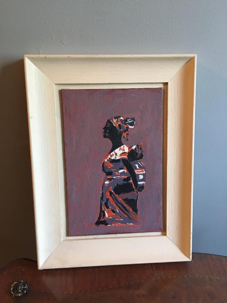 Framed painting of African woman and child.