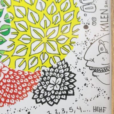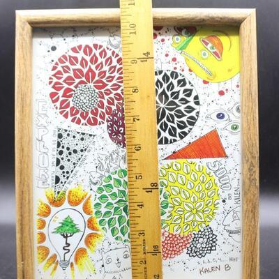 Small Framed Colorful Geometrical Pop Art Print by Kalen B, there are no cracks or chips to the frame or protective glass and is in good condition. Check pictures for more details and for sizing.