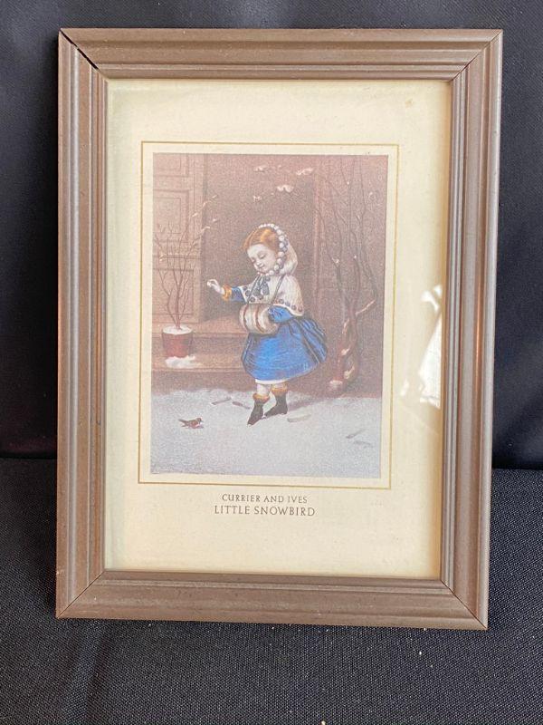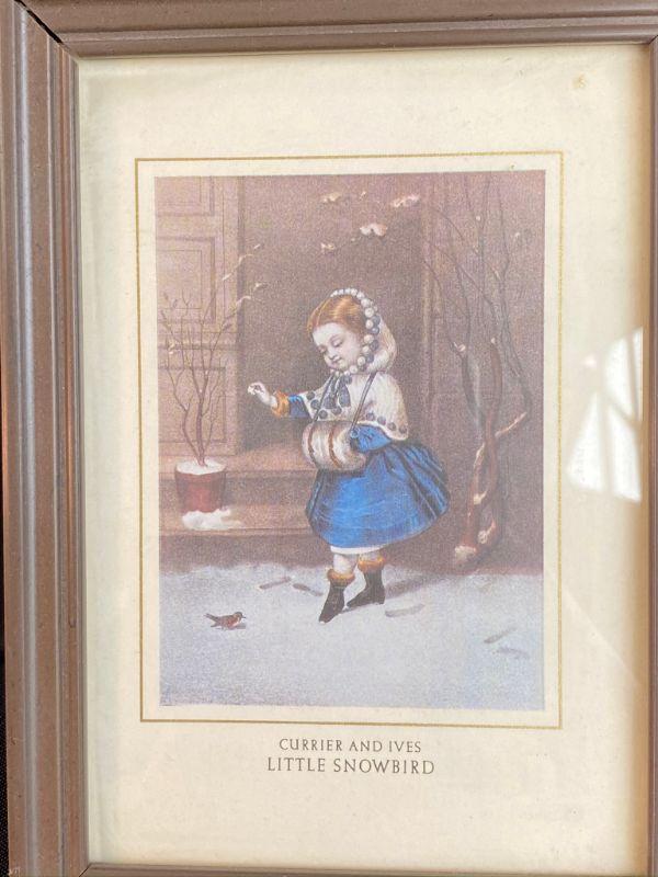 Currier & Ives "Little Snowbird" print. Small, 5x7 size frame.
