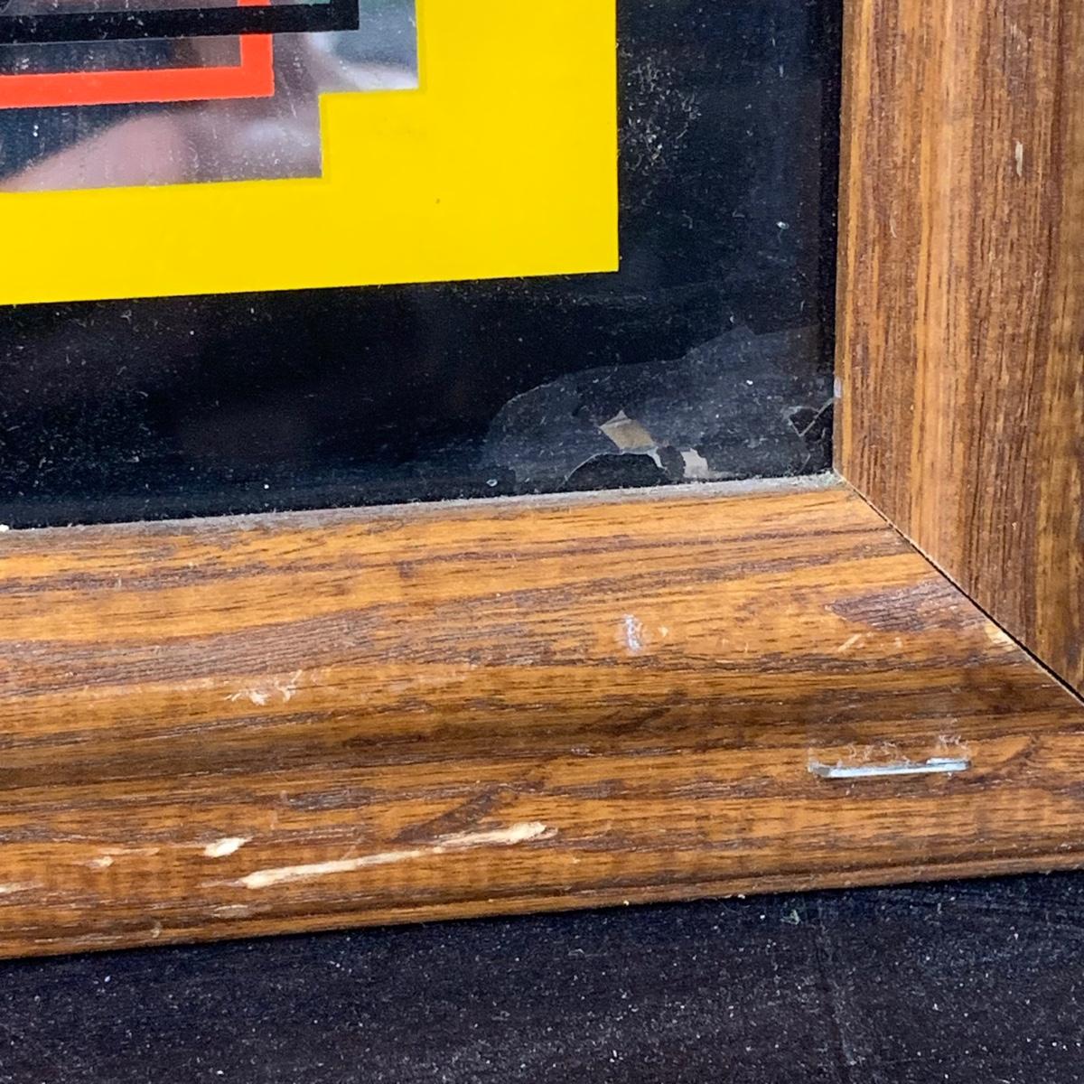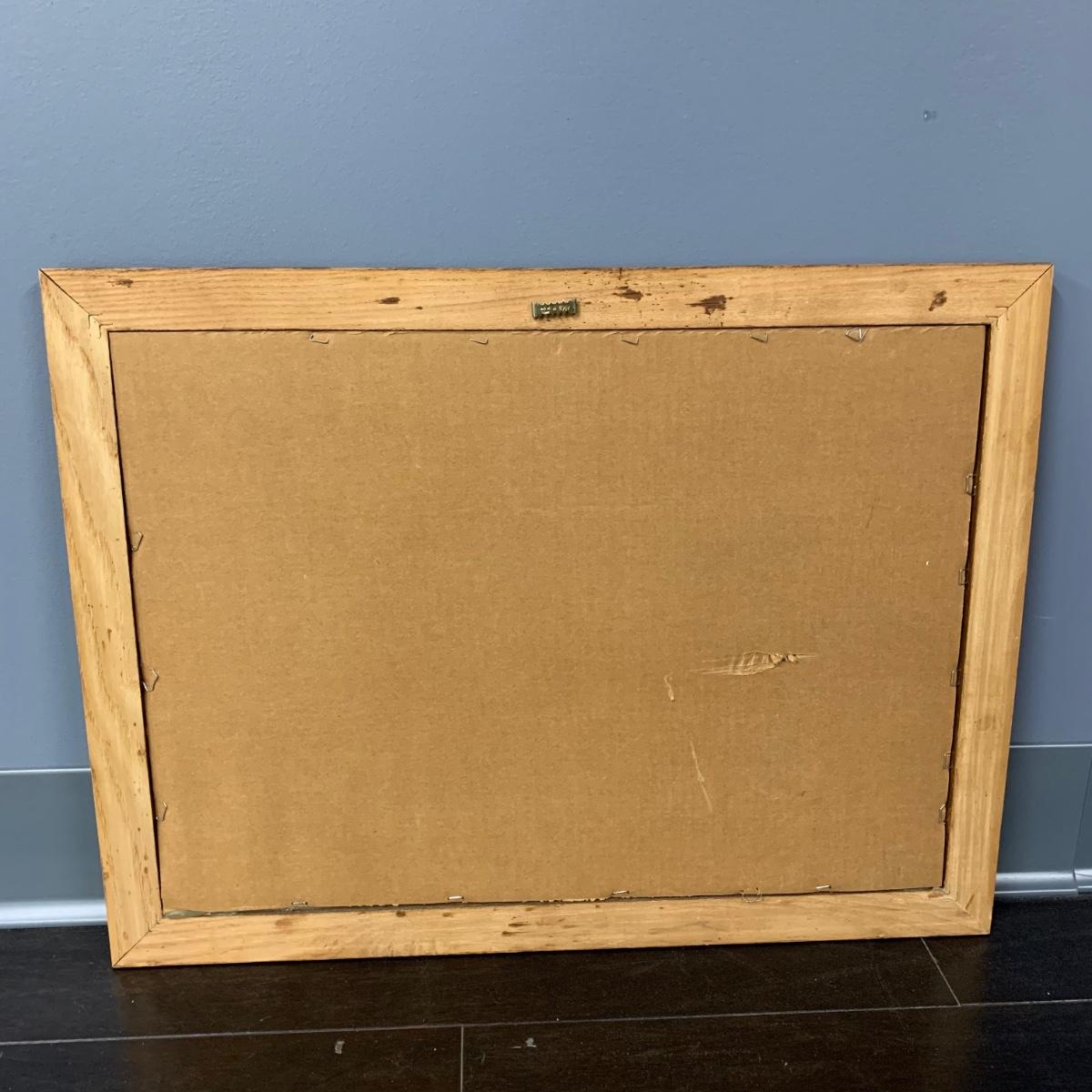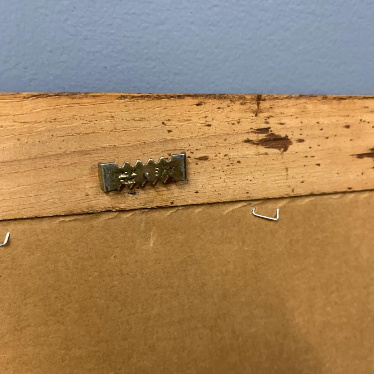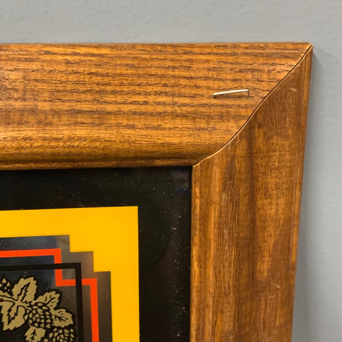 This small Newcastle Brown Ale mirror sign comes in a nice wood frame that measures 20.75” x 15.75”. There are some staples stuck in the frame that could likely be removed with the right tool. There is a small scratch on one corner of the frame. The mirror has some marks/blemishes that feel like they can be cleaned. There is a small area on the bottom right corner of the mirror that is cracked. There is hardware on the back of the frame for hanging on the wall. Shipping available. Shipping art can be costly, we suggest calling our local UPS with dimensions and getting an estimate before bidding (828) 252-6930.