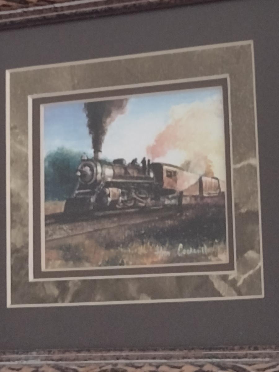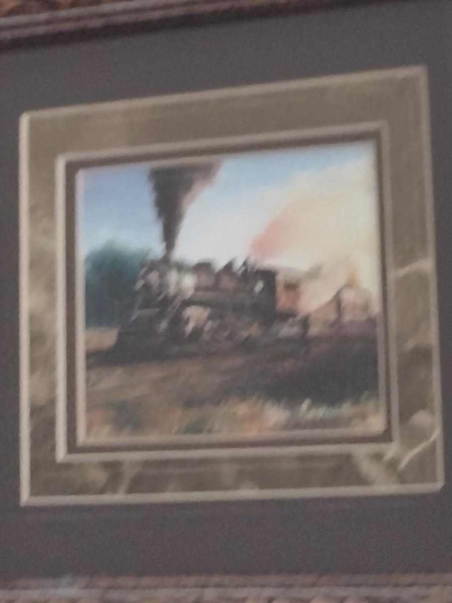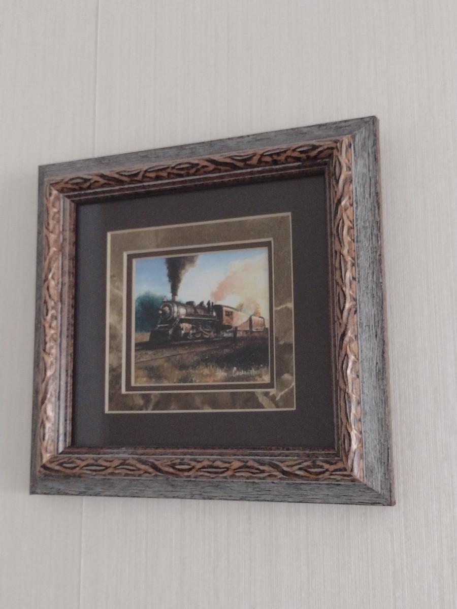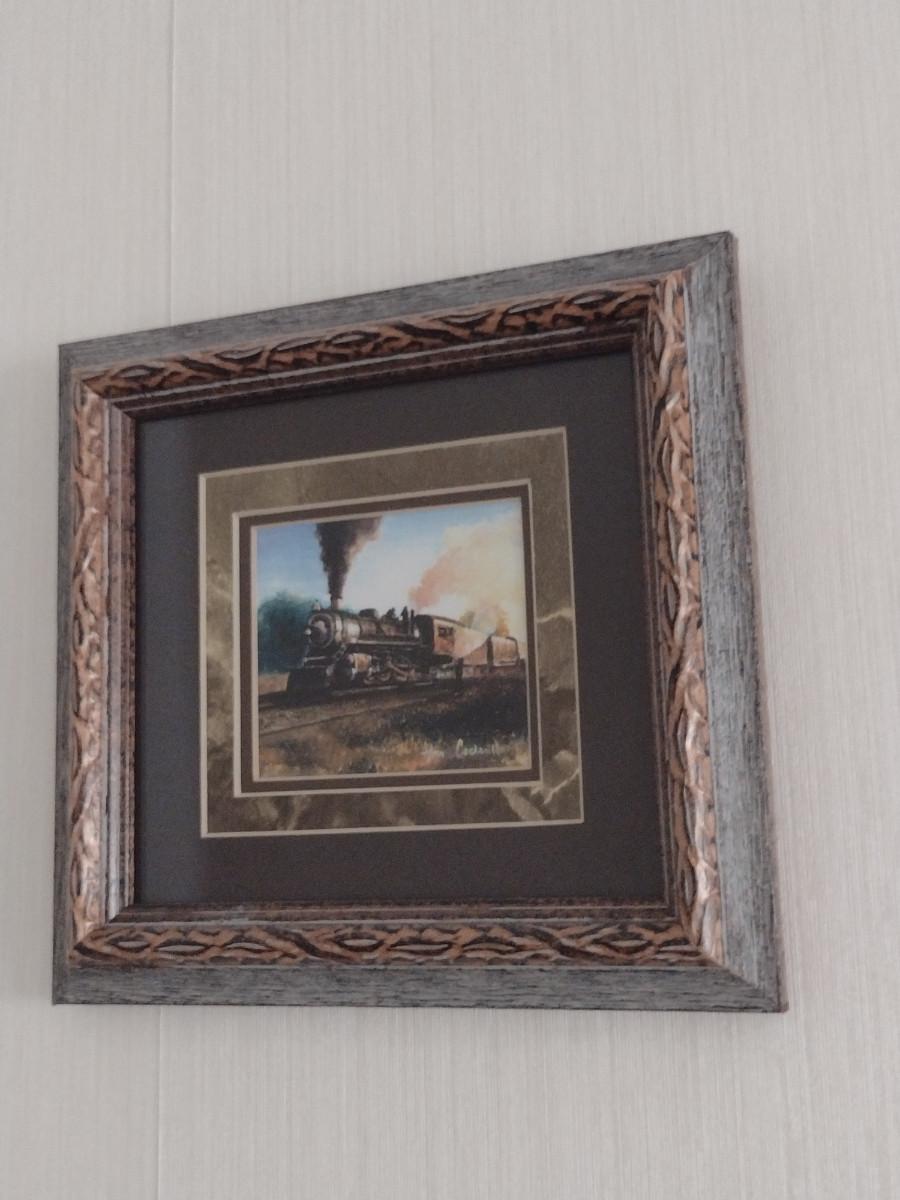 Small Framed Train Design Print- Approx 7 1/2" x 7 1/4"