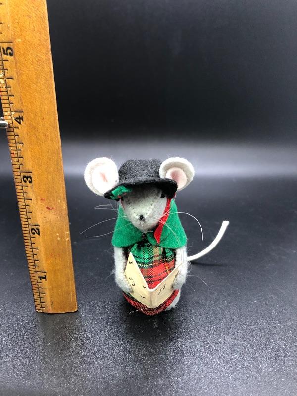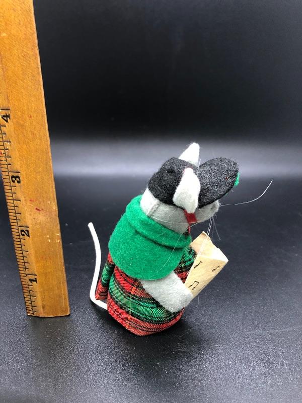 Caroling mouse figurine. Felt mouse only about 3" size. #499a56