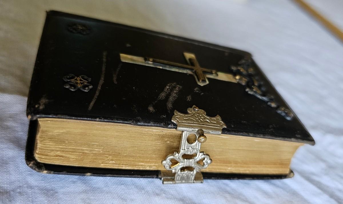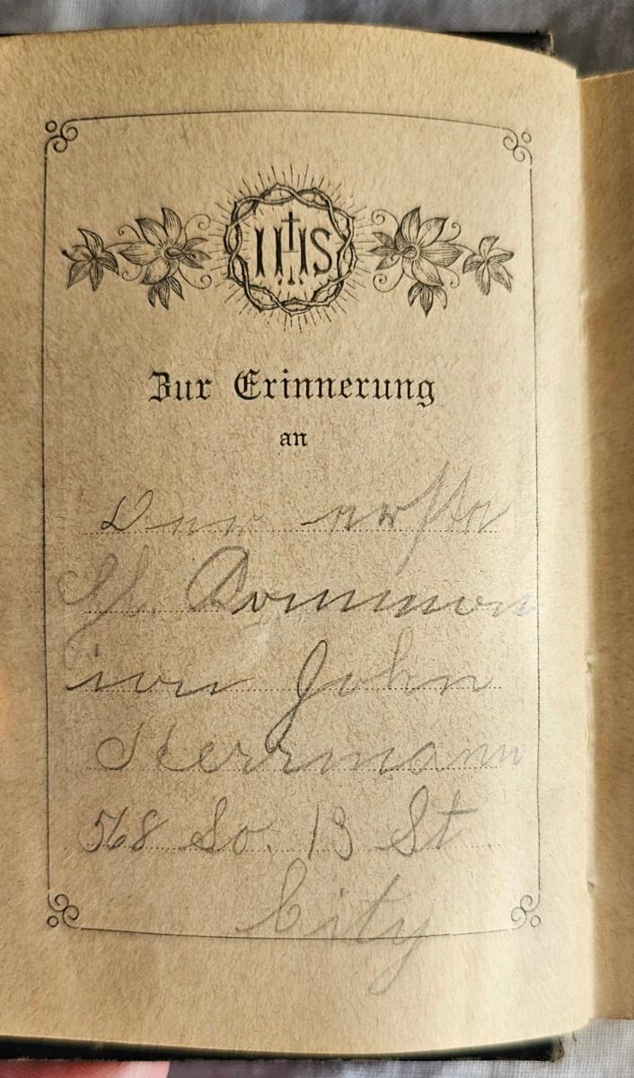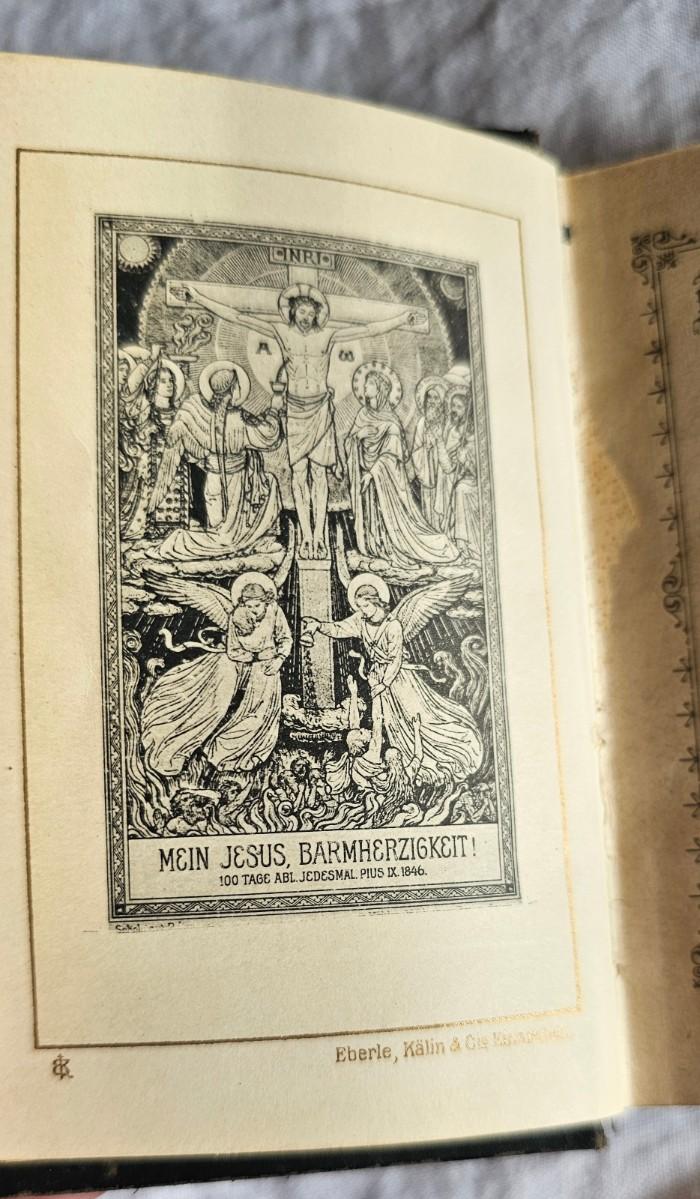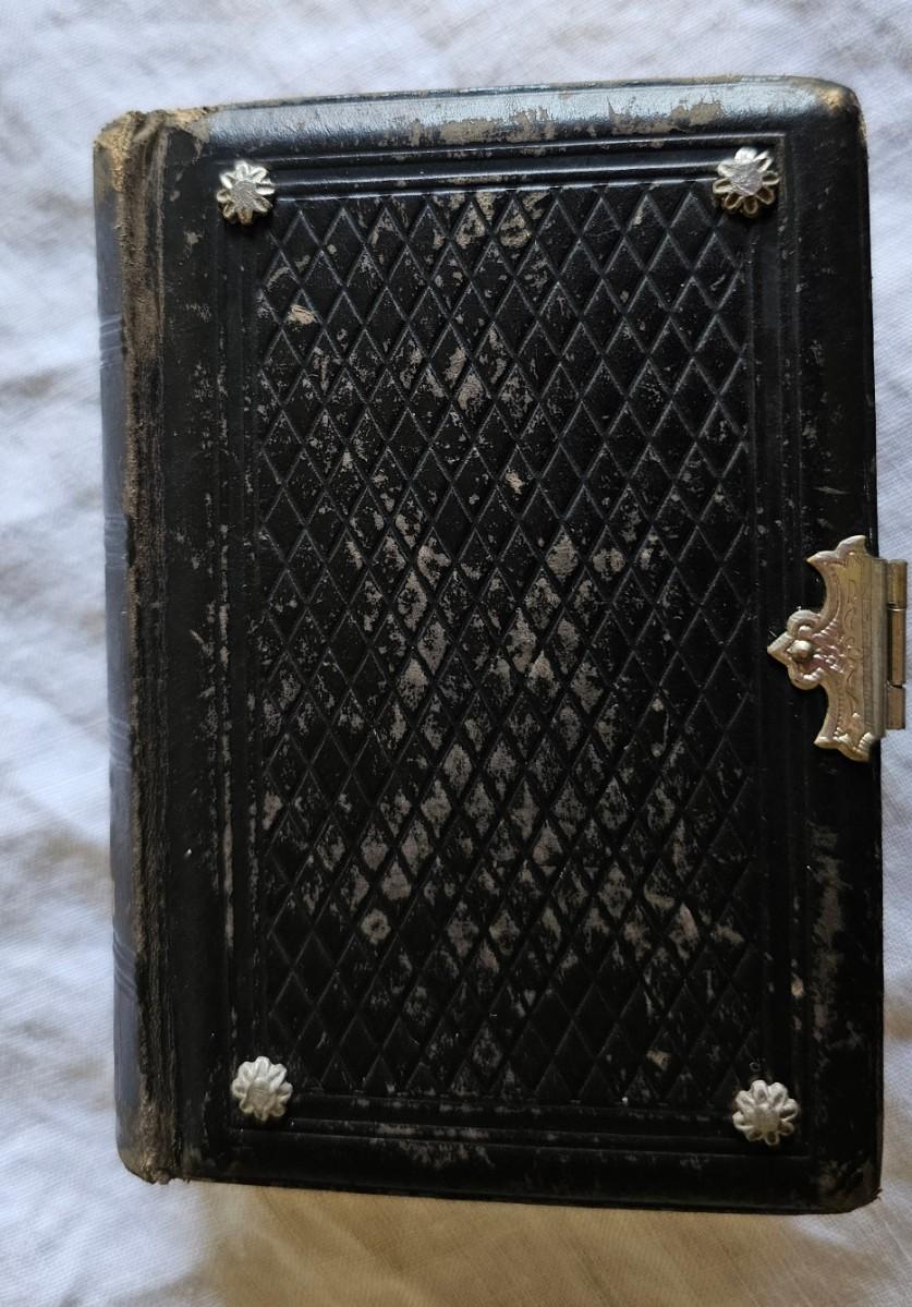 1800s German Prayer Book, Alles Fur Jesus. Leather bound with gold colored metal clasp.
