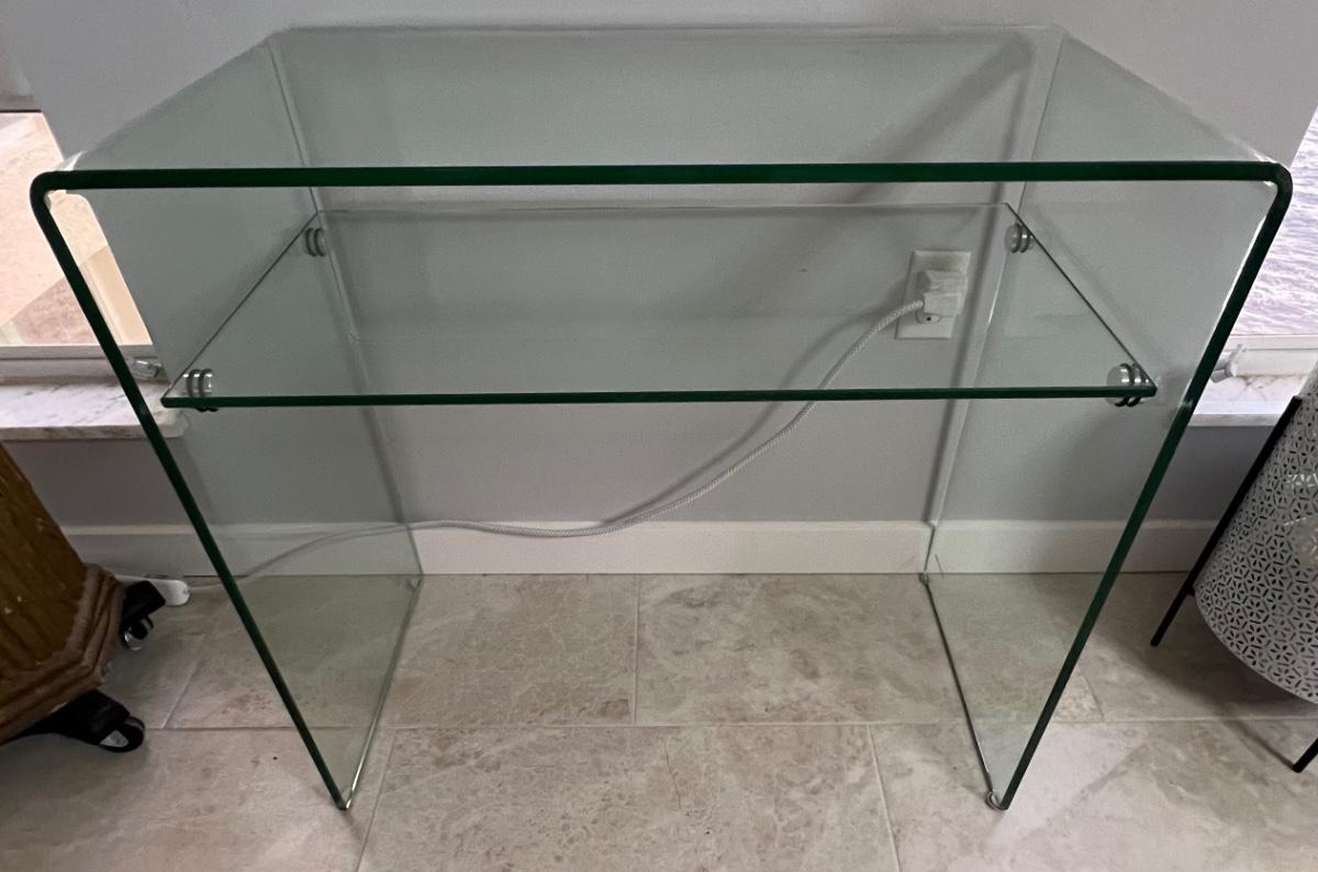 No signs of obvious wear. This desk does not come with a chair. 30" H x 32" W x 16" D. This item is at a different location. Arrangements will have to be made to pick up this item. [EW]